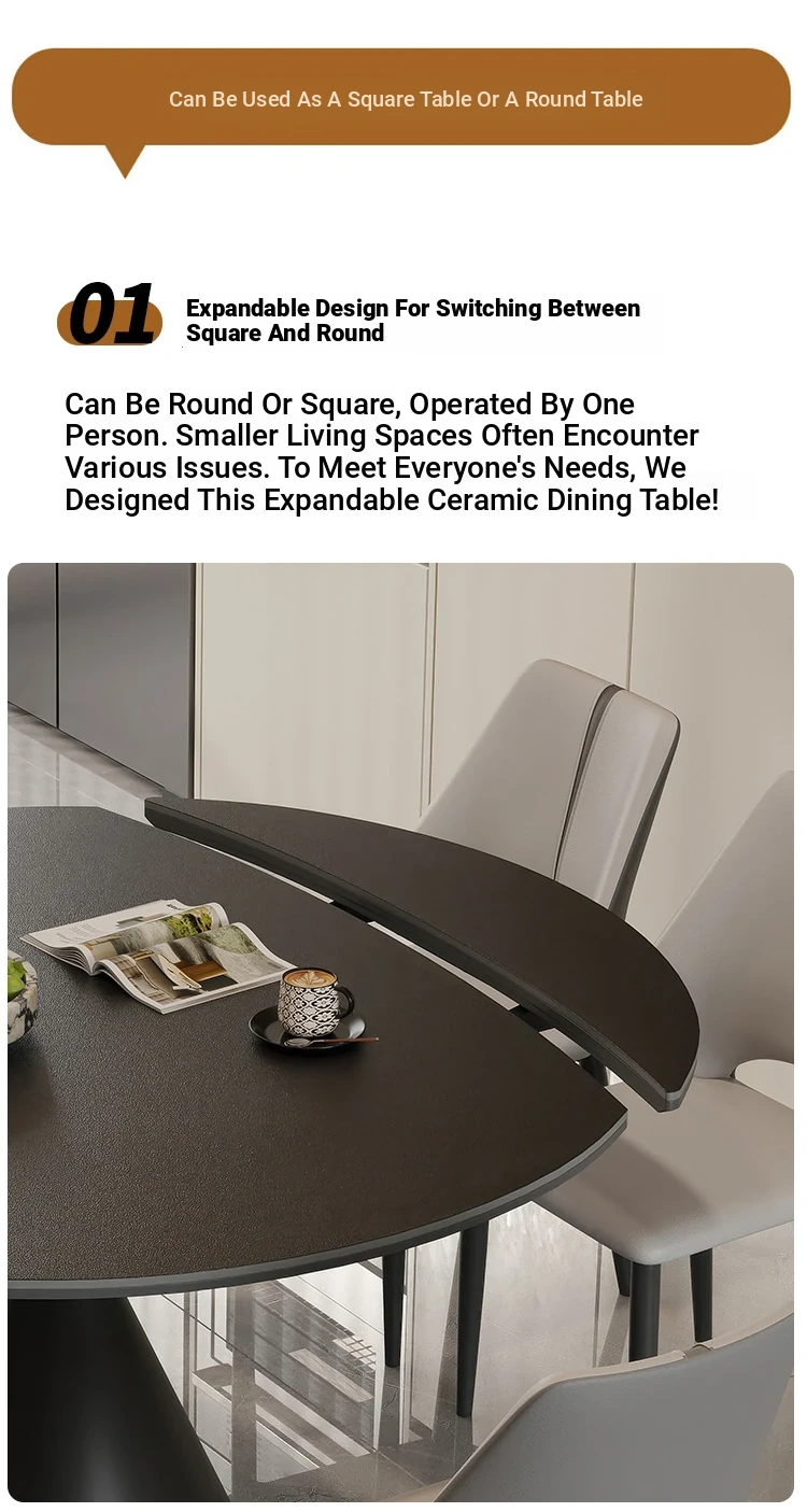 Adjustable Expandable Dining Table - Versatile Round and Square Design for Small Spaces, Modern Minimalist Style with a Touch of Luxury, Perfect for Home Use