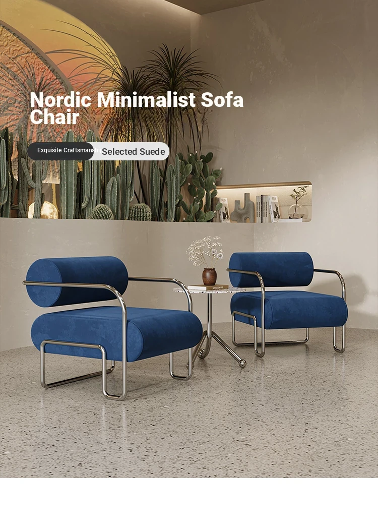 Bauhaus-Style Klein Blue Lounge Chair - Trendy Single Armchair for Coffee Shops and Milk Tea Stores, Perfect Reception Seating Set