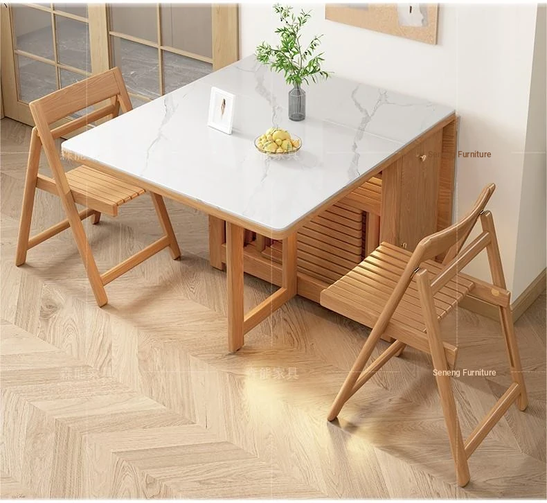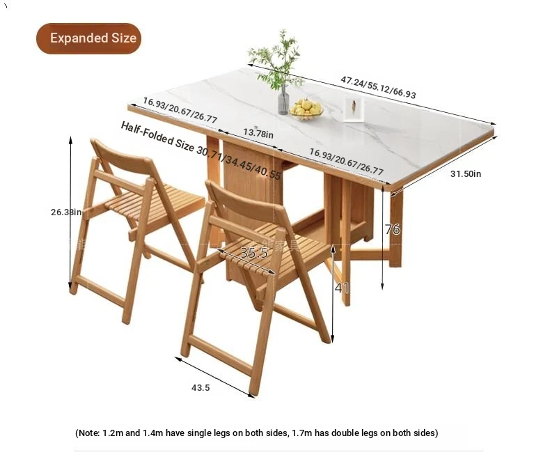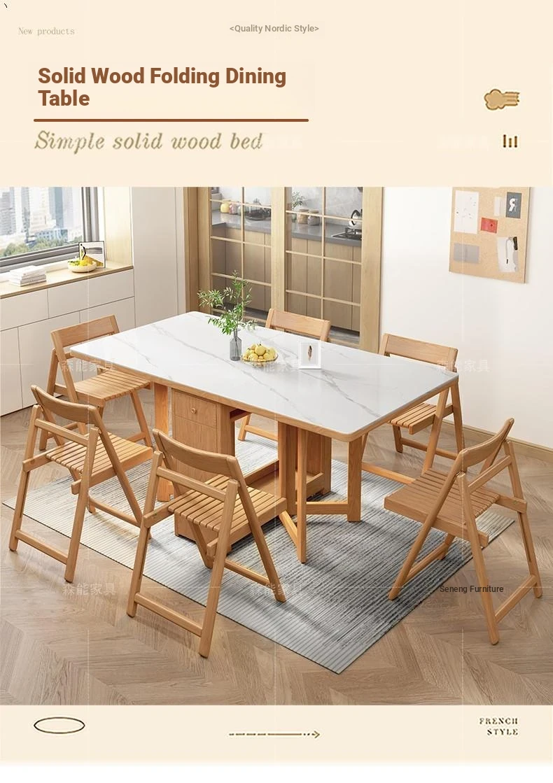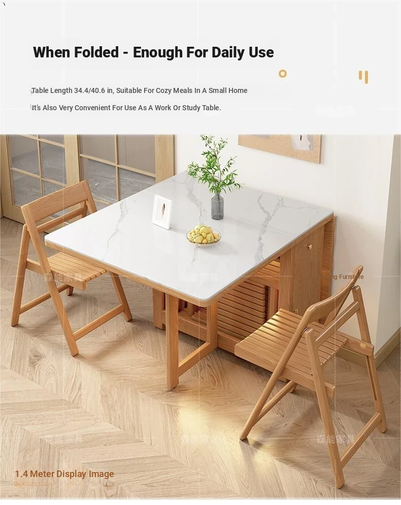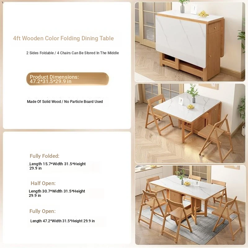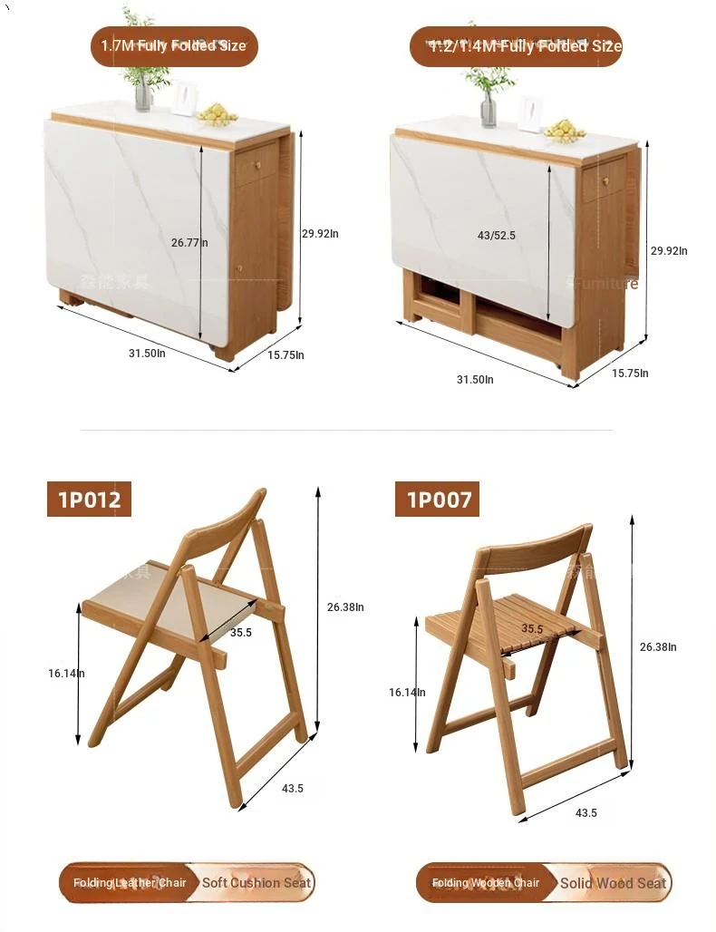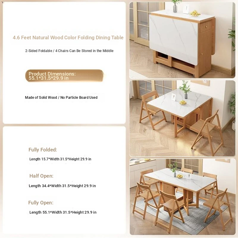 Compact Modern Solid Wood Folding Dining Table and Chair Set for Small Spaces - Expandable, Space-Saving, and Easily Movable