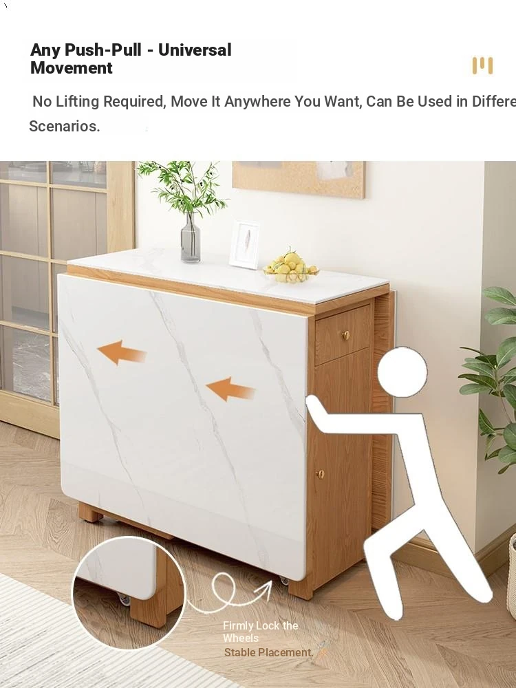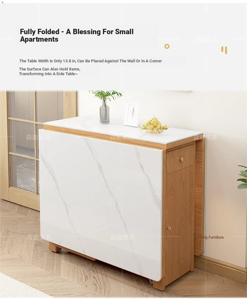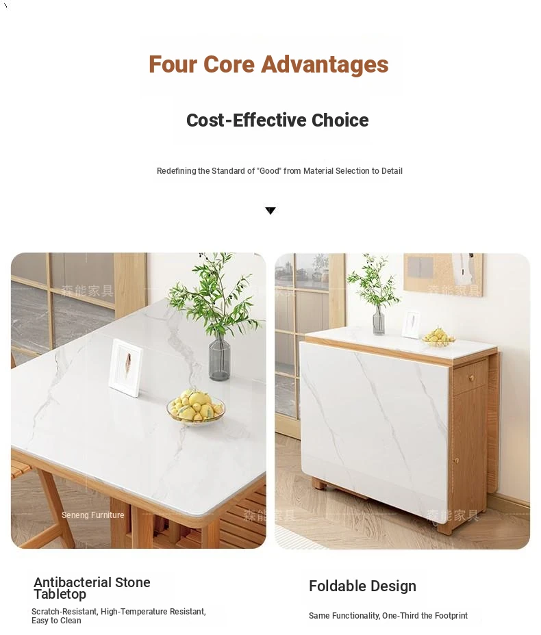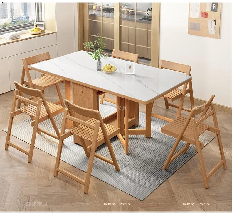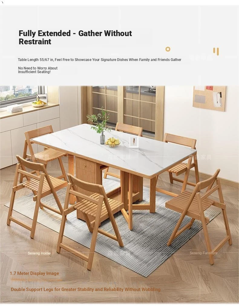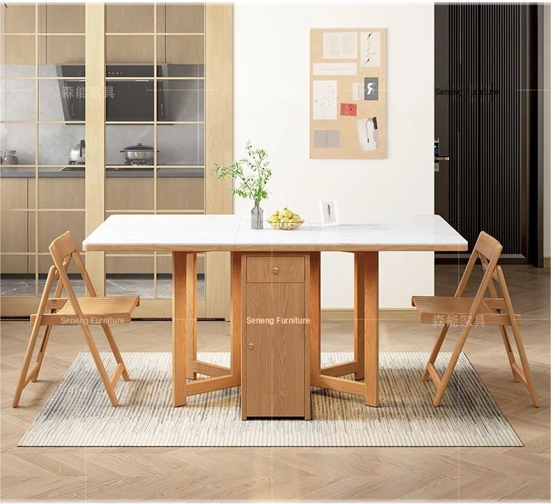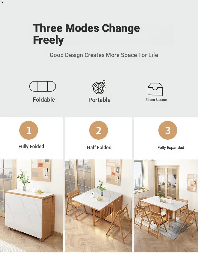 Compact Modern Solid Wood Folding Dining Table and Chair Set for Small Spaces - Expandable, Space-Saving, and Easily Movable