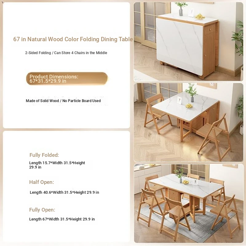 66.93 in solid wood [rock plate Foldable dining table + folding chair * 4]]
