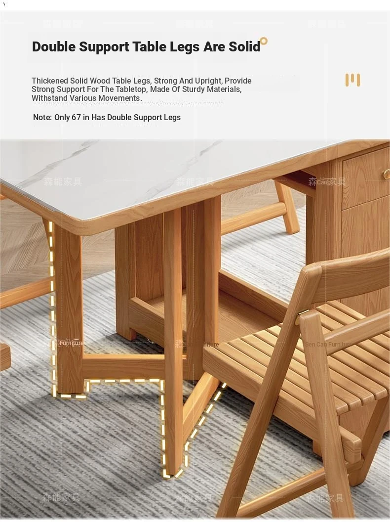 66.93 in solid wood [rock plate Foldable dining table + folding chair * 6]]