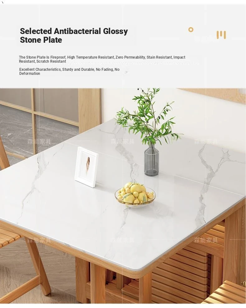 55.12 in solid wood [rock plate Foldable dining table + folding chair * 6]]