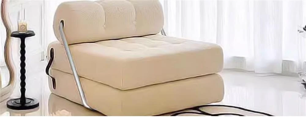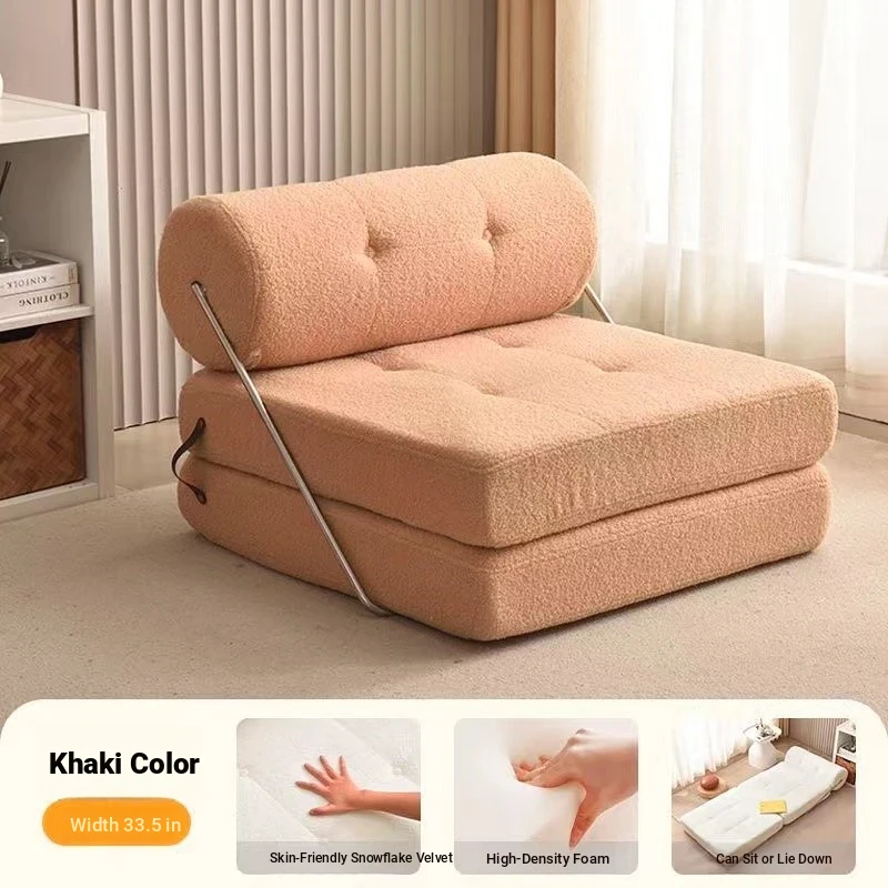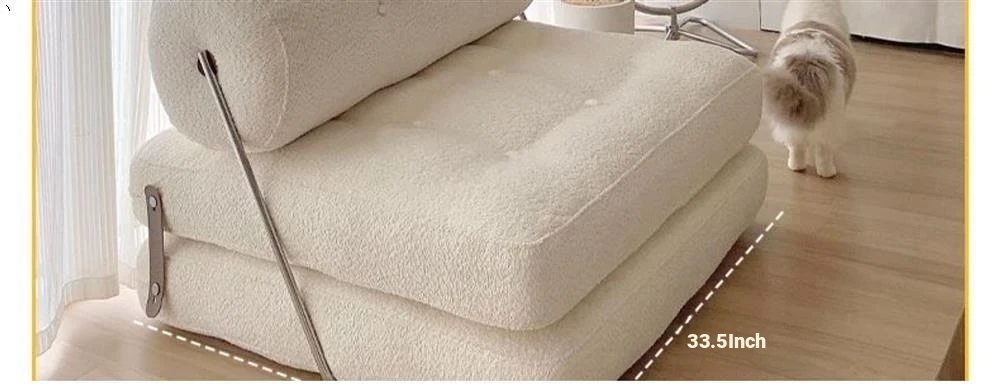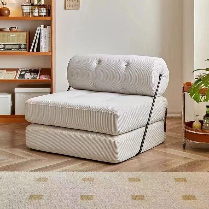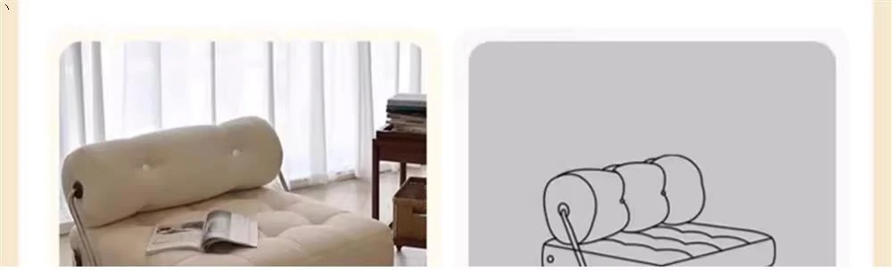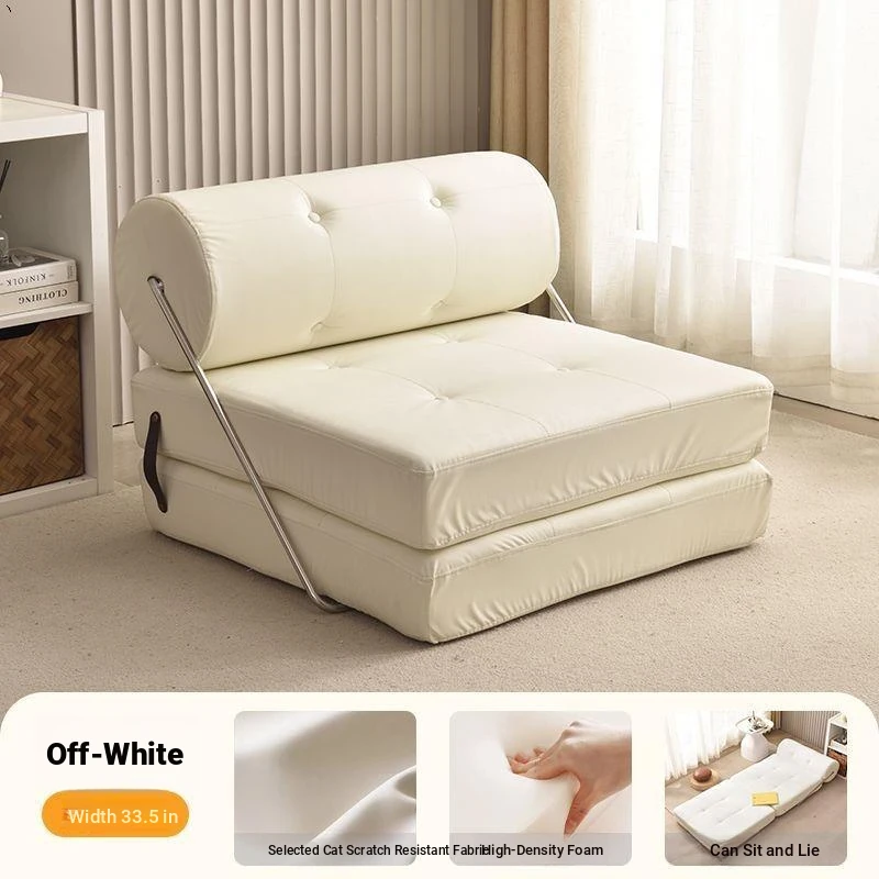 Compact One-Person Sofa Bed for Small Spaces - Versatile Tofu Block Design in Creamy Style, Perfect for Lazy Living Rooms and Multifunctional Use.
