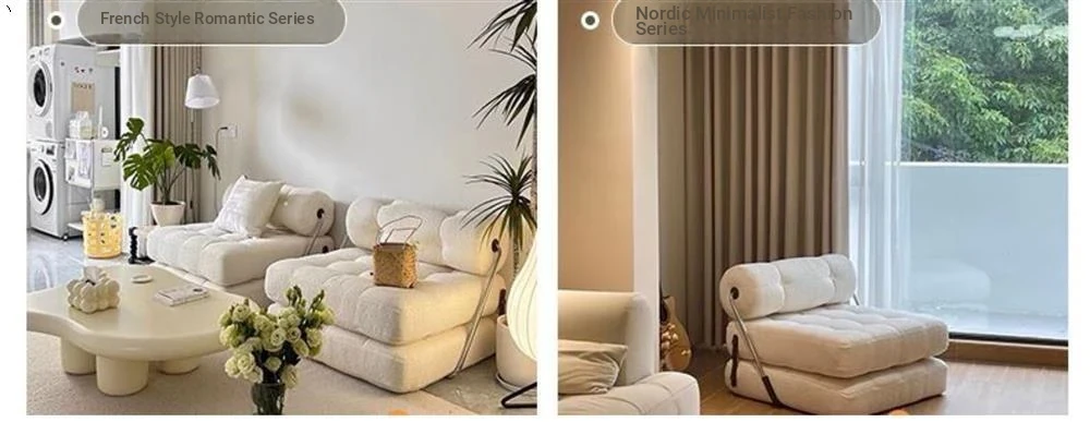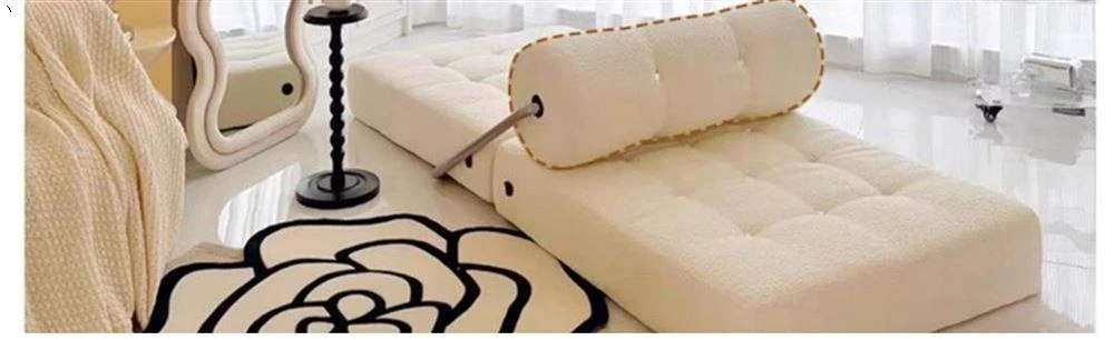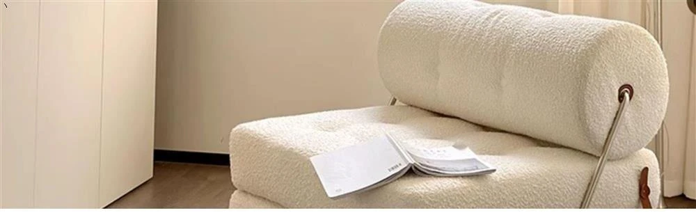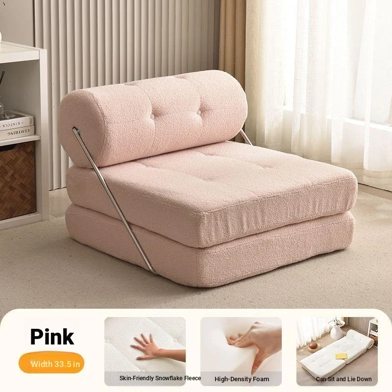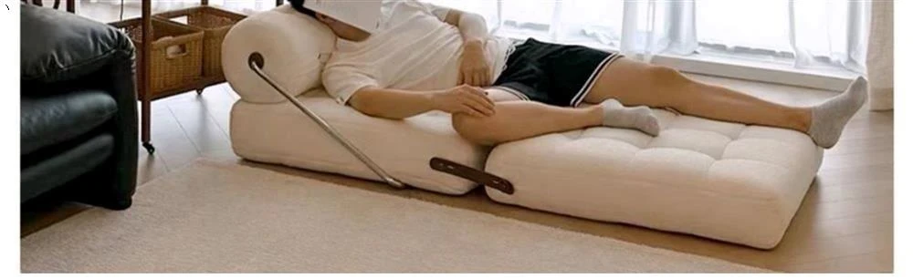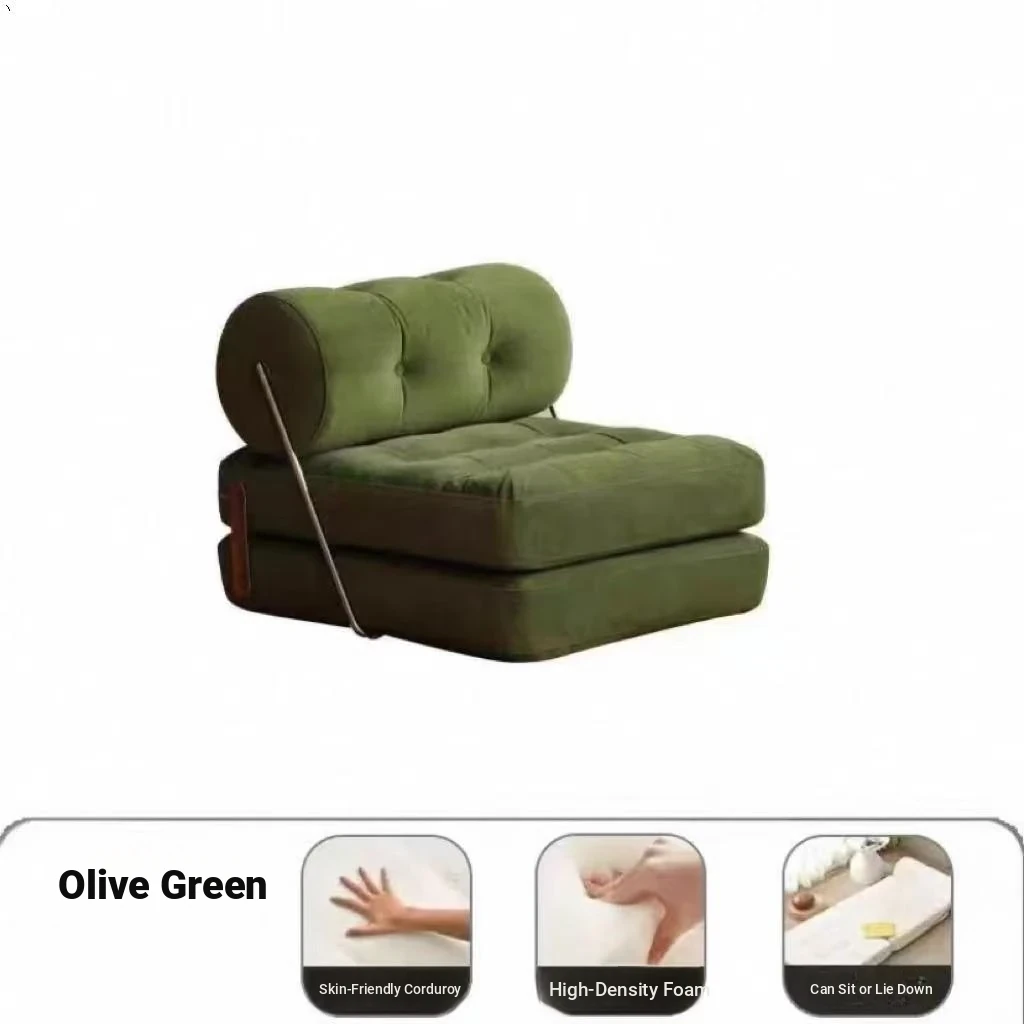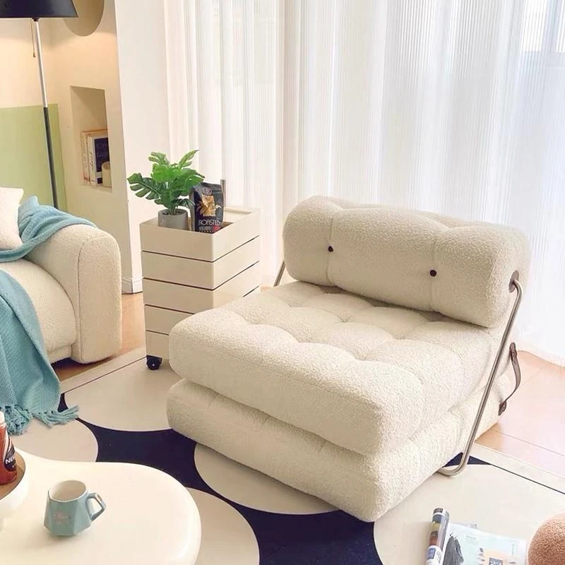 Compact One-Person Sofa Bed for Small Spaces - Versatile Tofu Block Design in Creamy Style, Perfect for Lazy Living Rooms and Multifunctional Use.