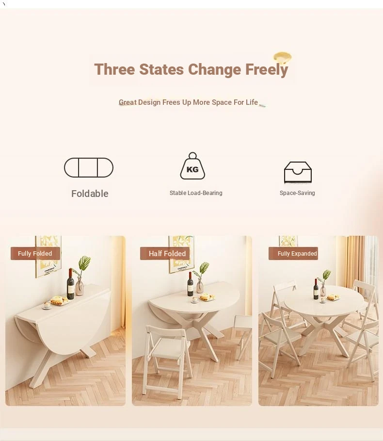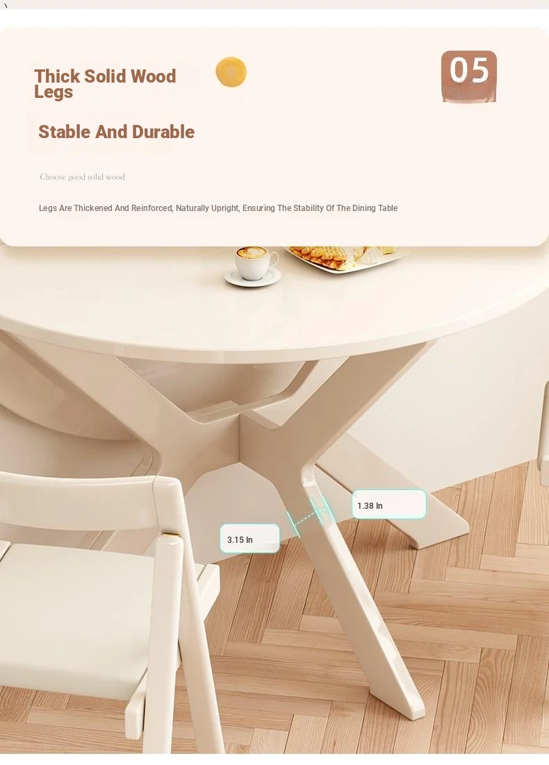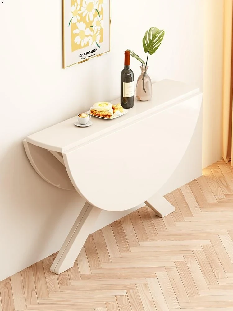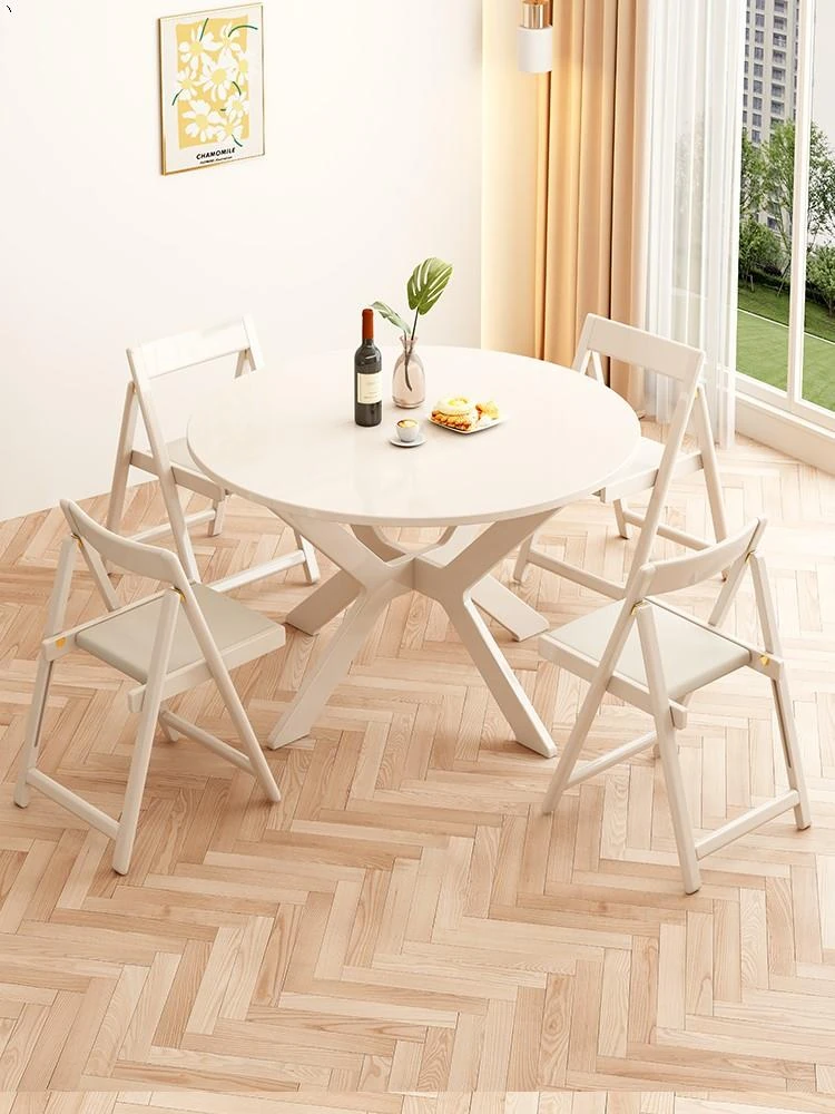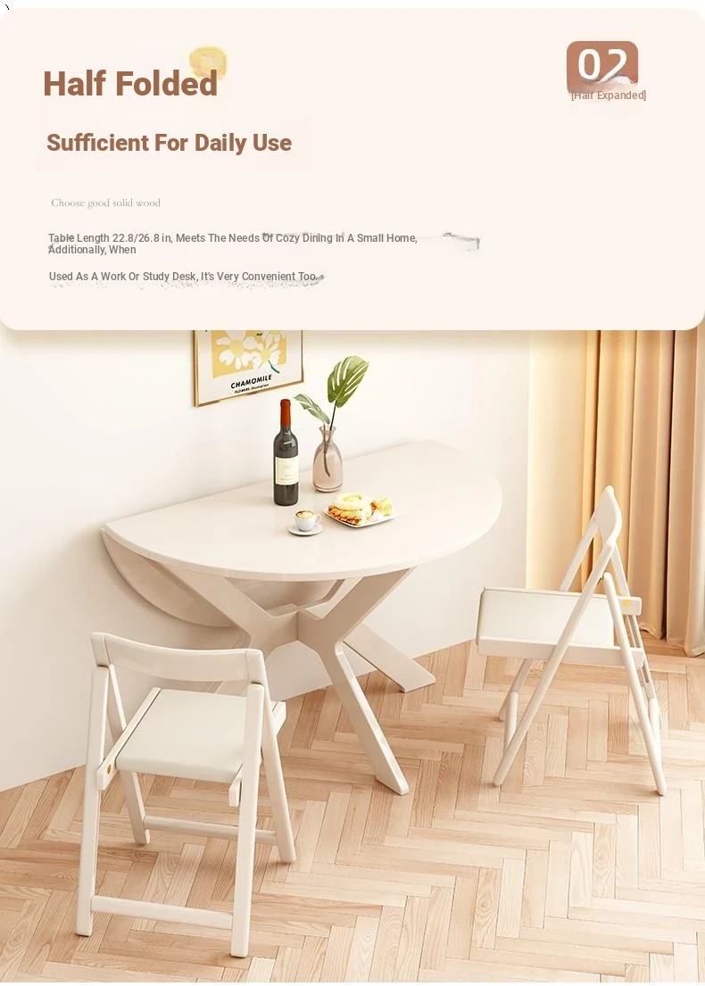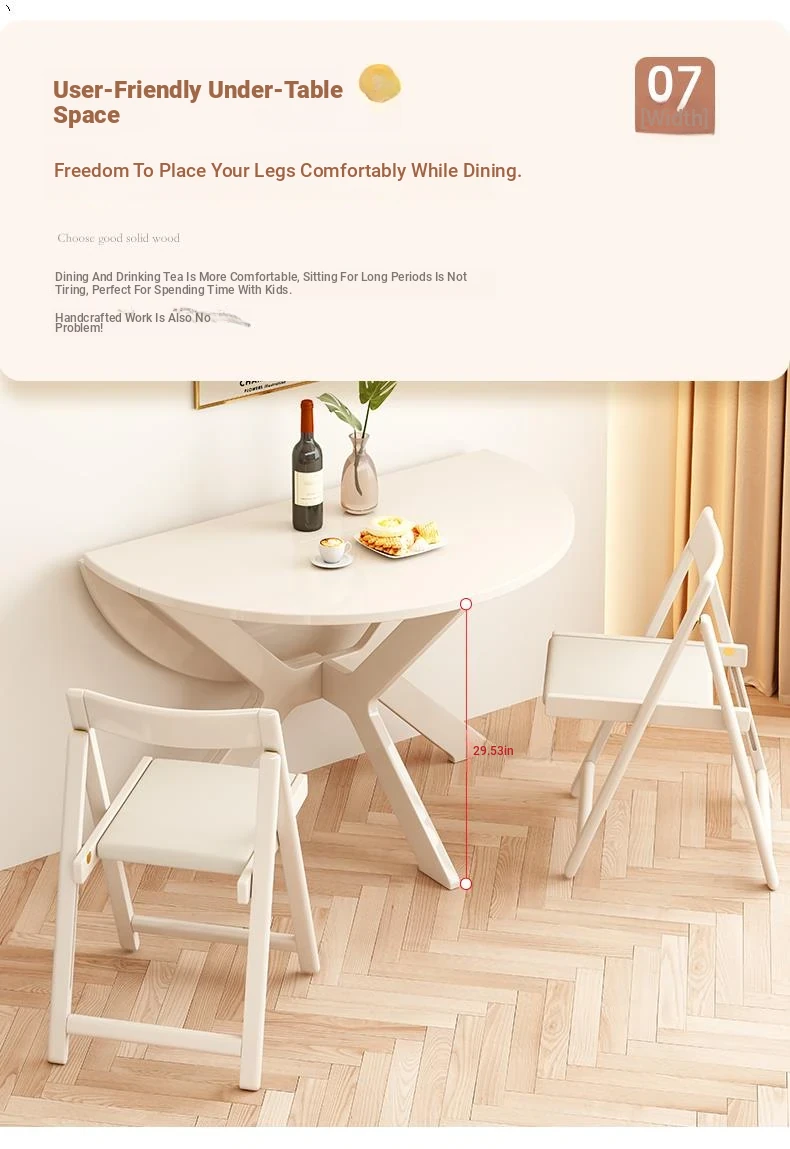 Creamy Expandable Round Dining Table for Home - Space-Saving 1 Meter Solid Wood Table for 4 People, Perfect for Small Apartments, Multi-Functional with Narrow Edge Folding Design.