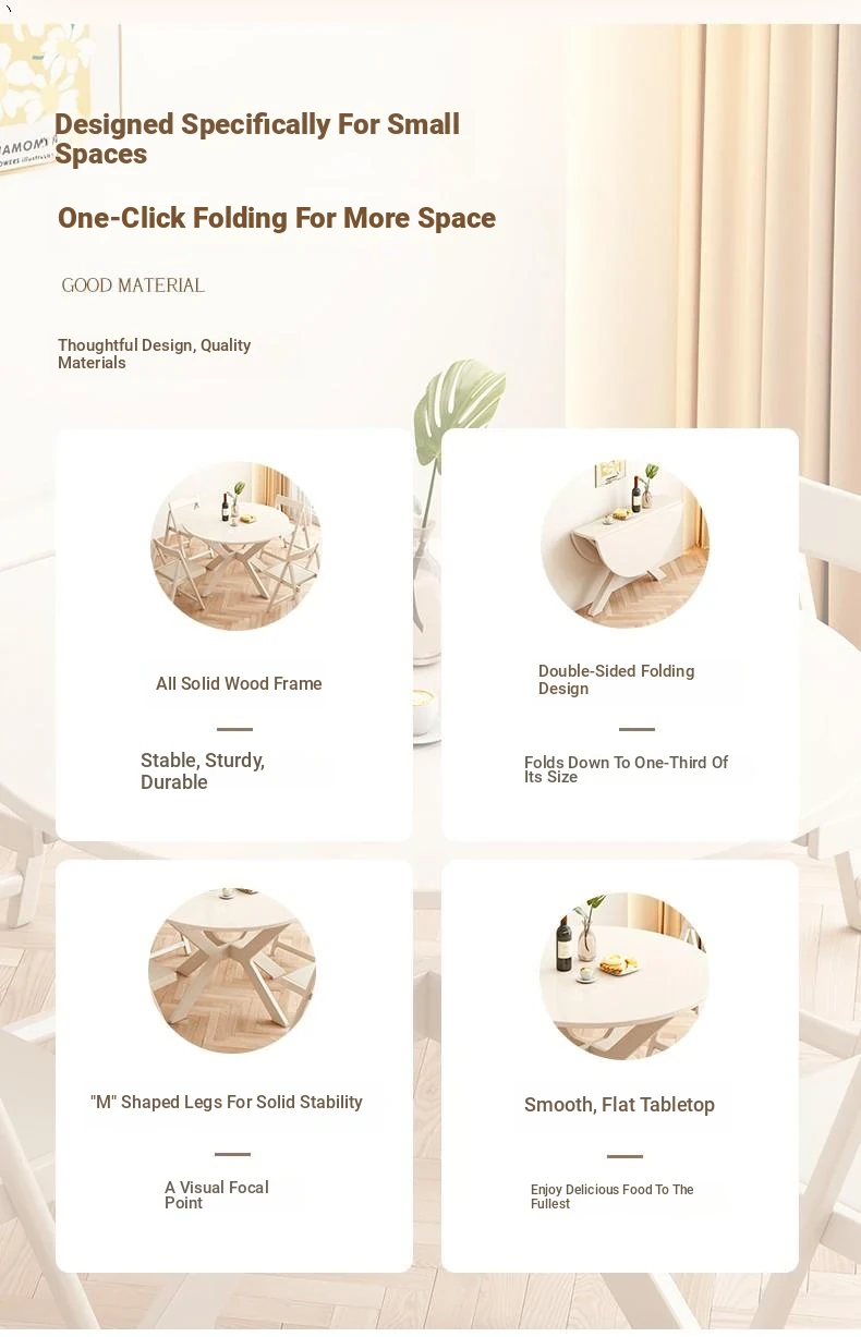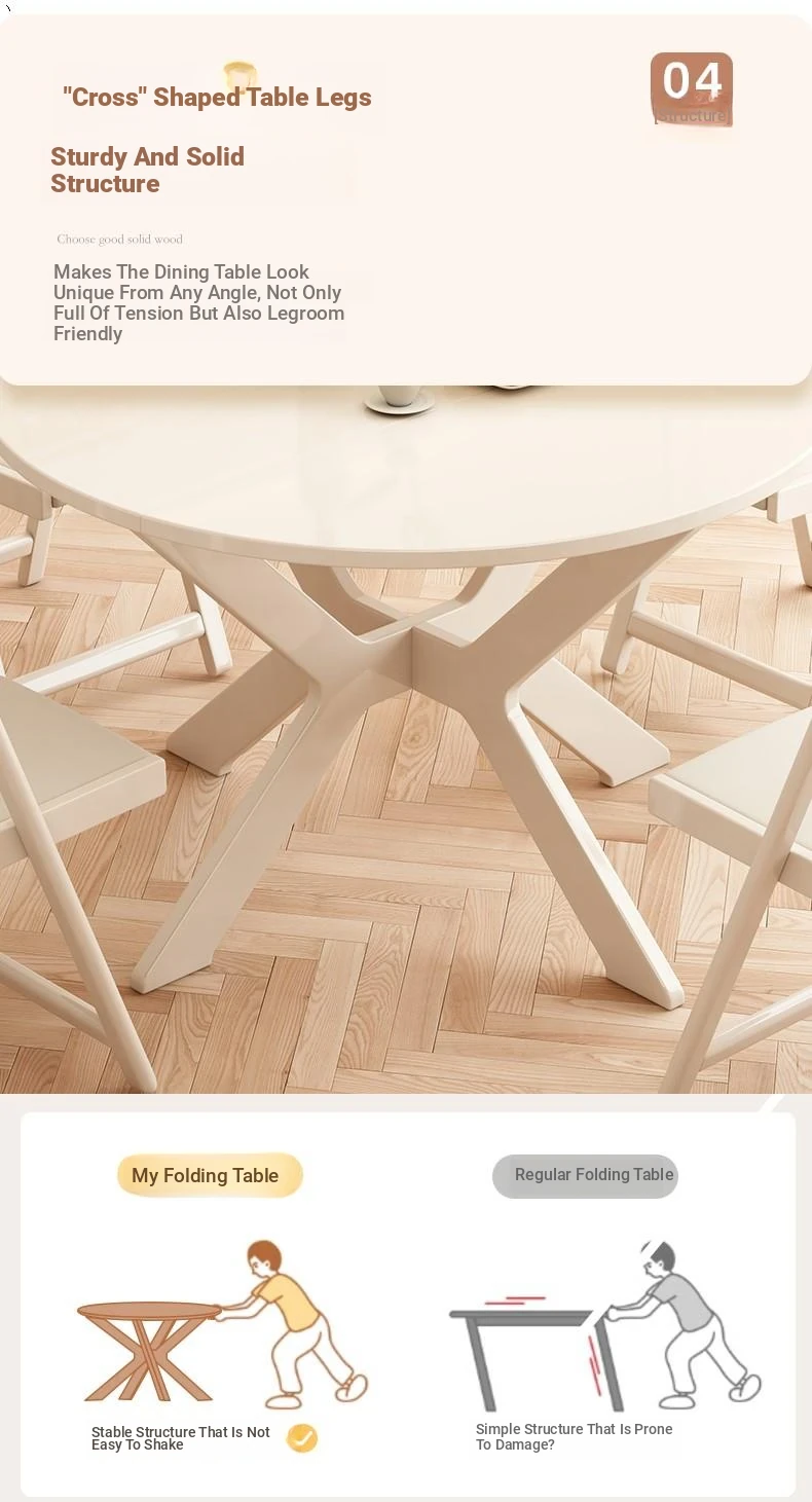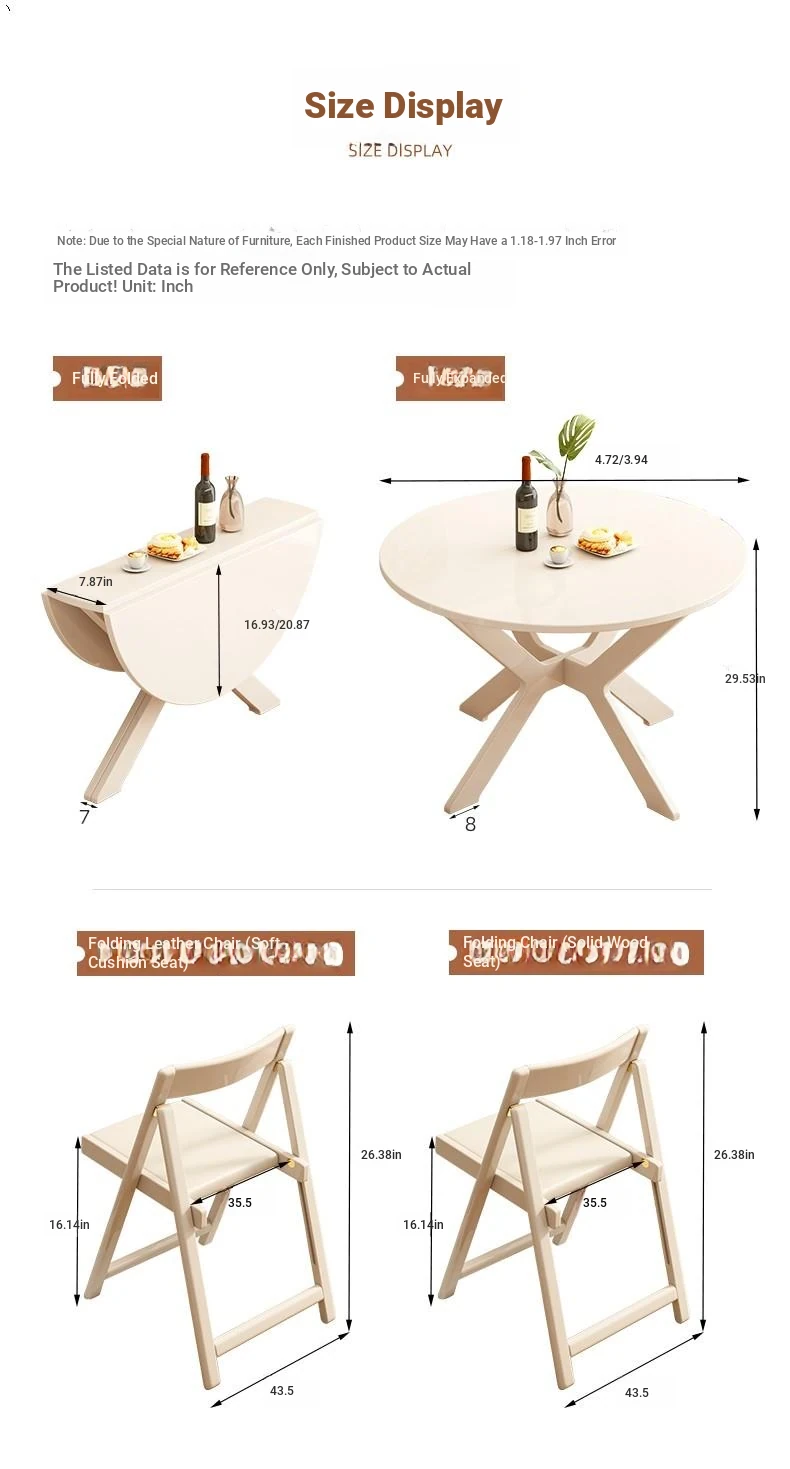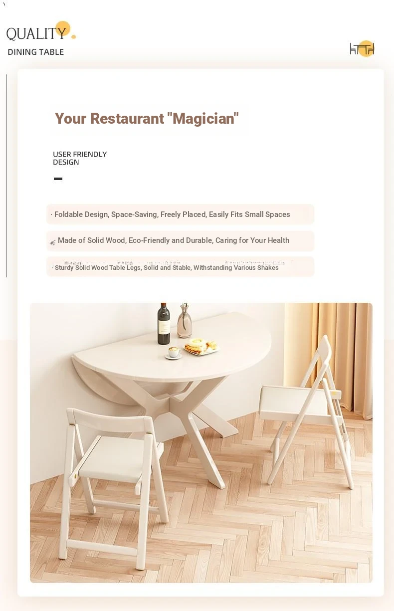 Creamy Expandable Round Dining Table for Home - Space-Saving 1 Meter Solid Wood Table for 4 People, Perfect for Small Apartments, Multi-Functional with Narrow Edge Folding Design.