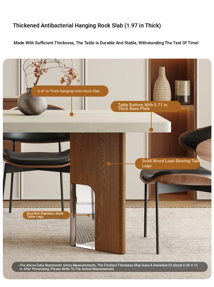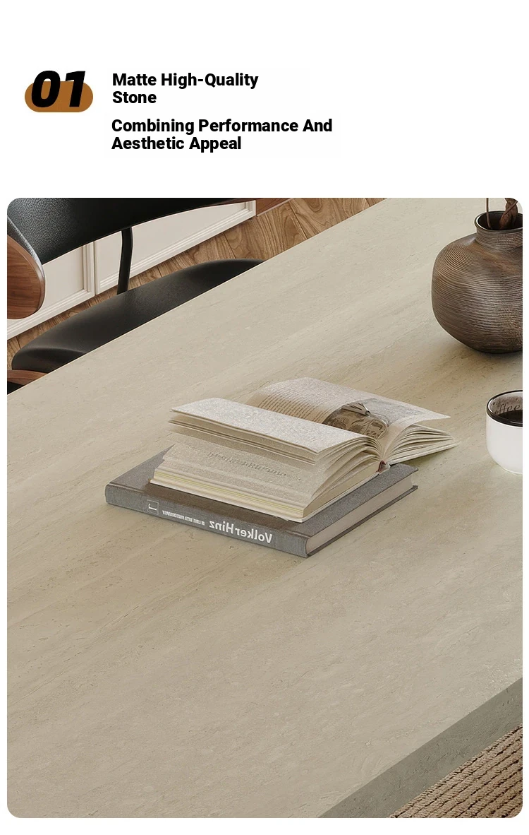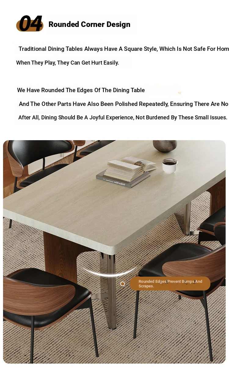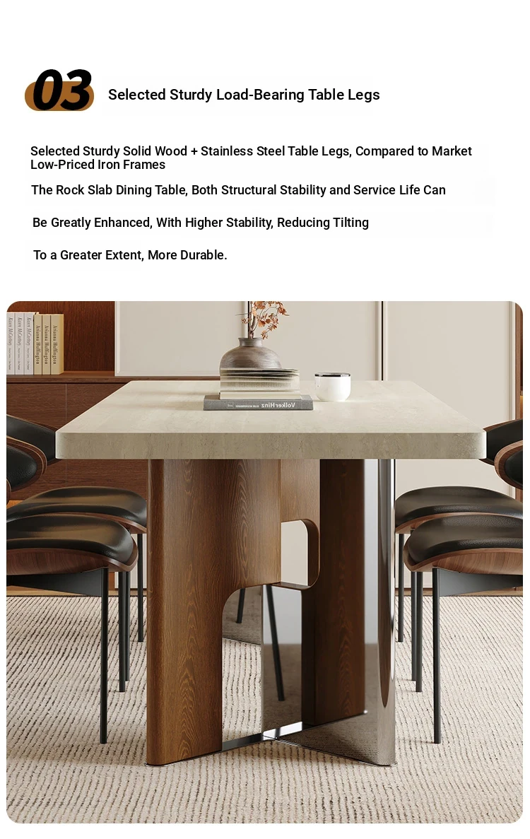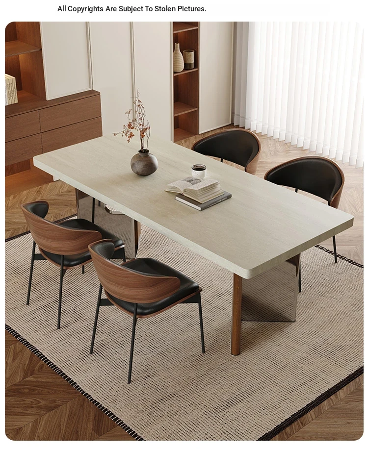 Designer Rectangular Dining Table with Stone and Steel Base - Modern Italian Style, Solid Wood, Home Use, 2025 New Collection