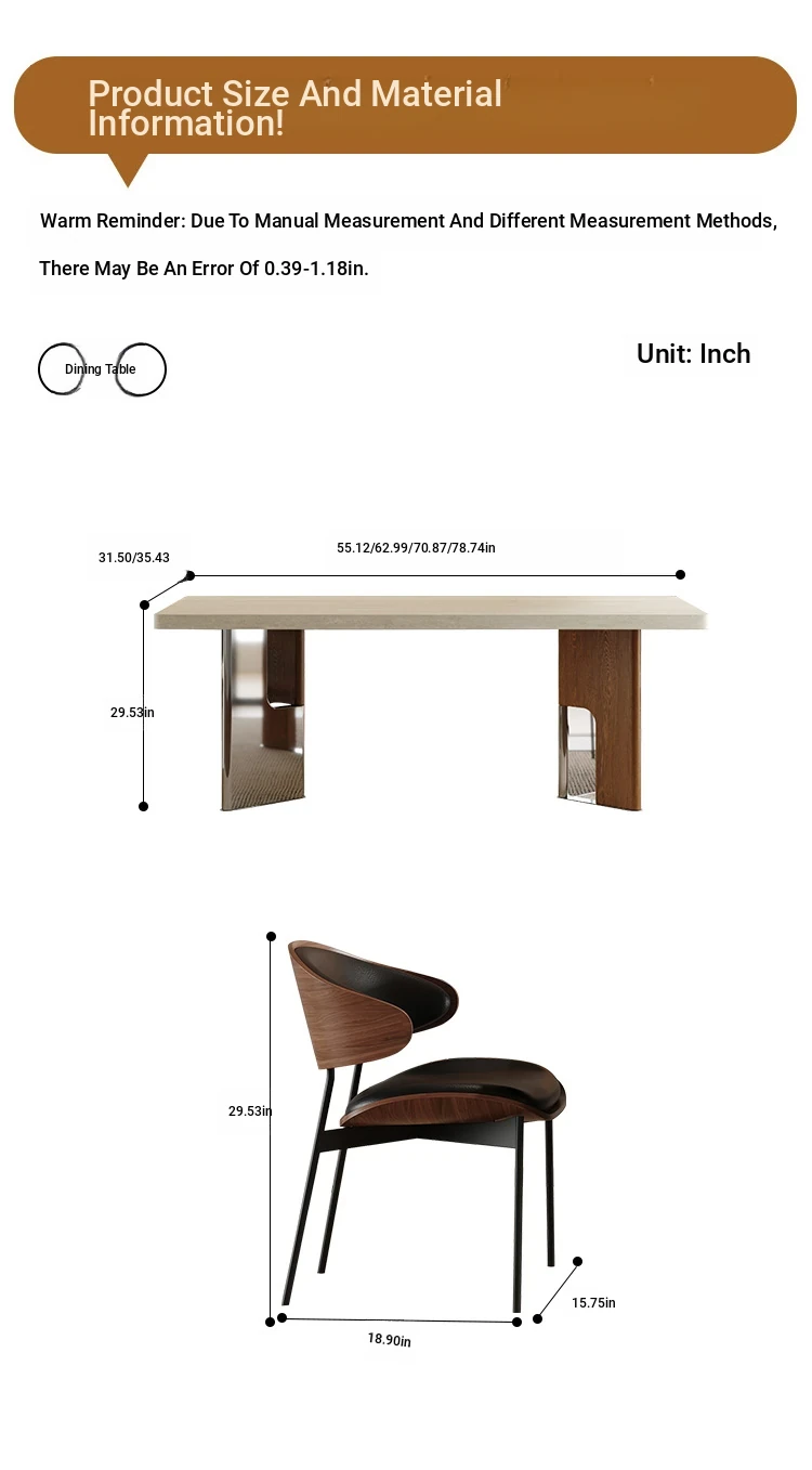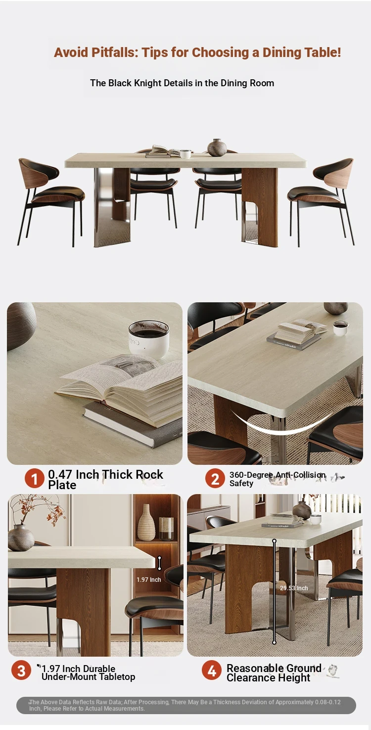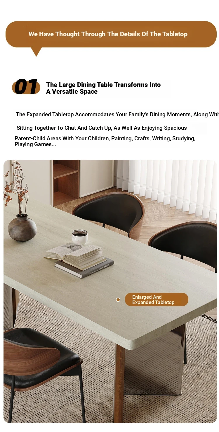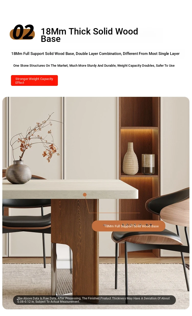 Designer Rectangular Dining Table with Stone and Steel Base - Modern Italian Style, Solid Wood, Home Use, 2025 New Collection