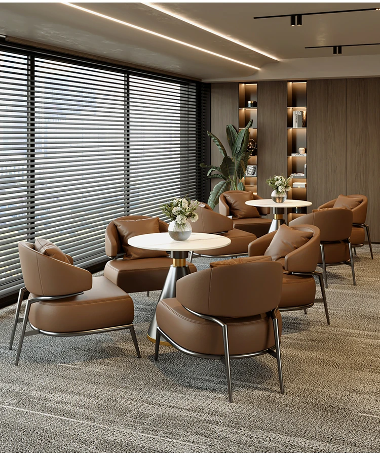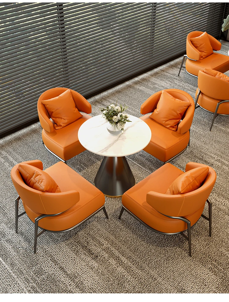Elegant Business Meeting Table and Chair Set for Real Estate Sales Offices, Hotels, and Lounges - Perfect for Reception and Leisure Areas, Includes One Table and Four Chairs.