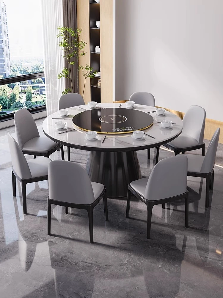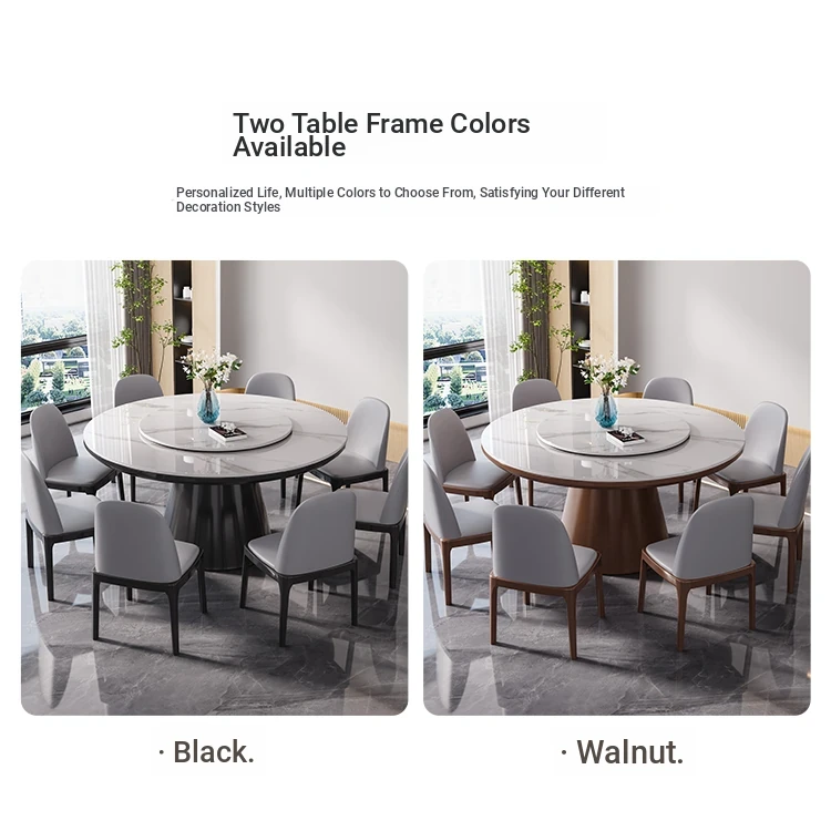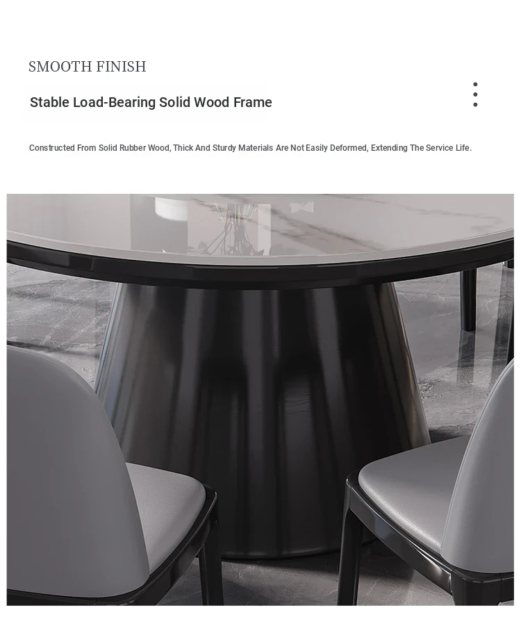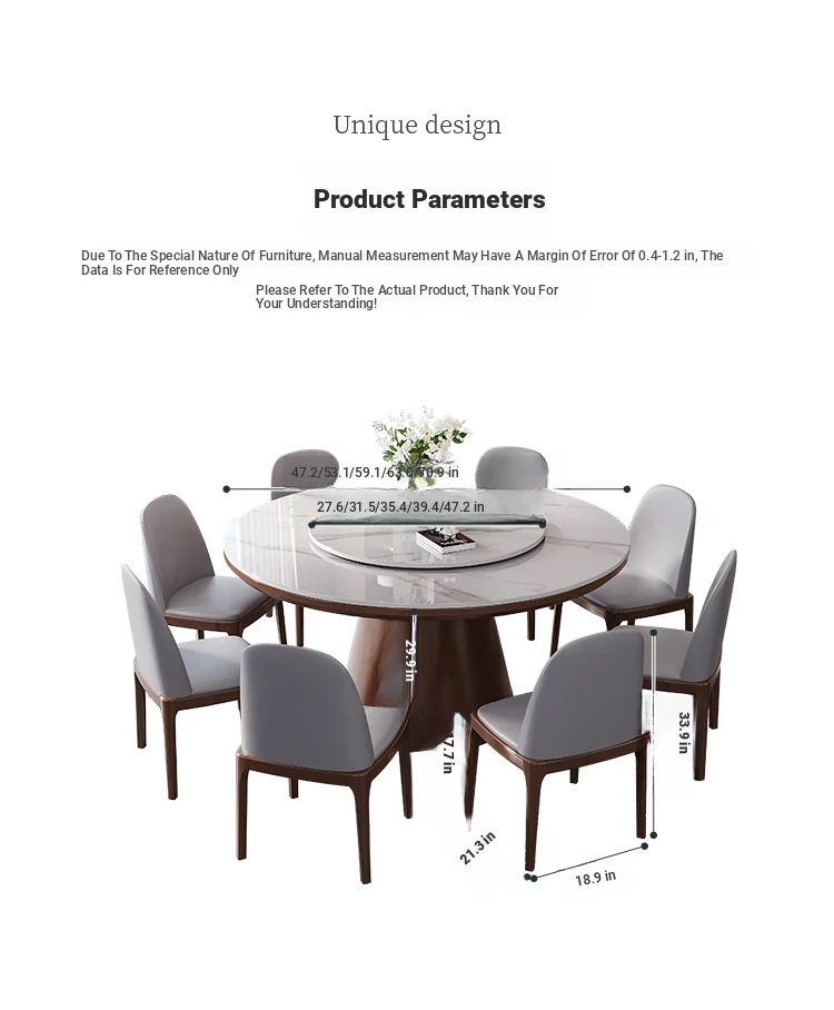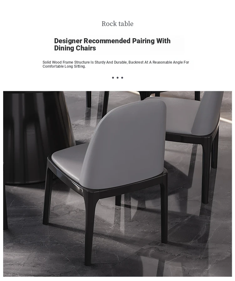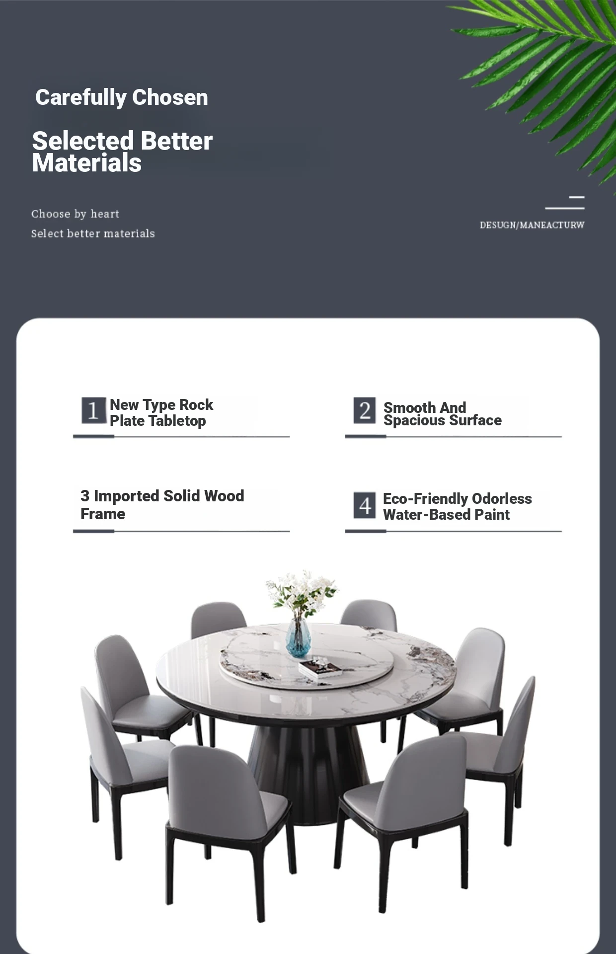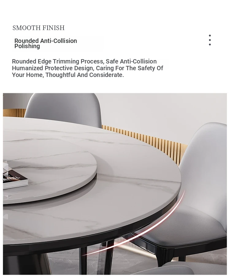Elegant Glossy Rock Board Dining Table and Chair Set - Solid Wood Round Table with Rotating Tray for Home and Restaurant - Minimalist Design for Effortless Dining Experience