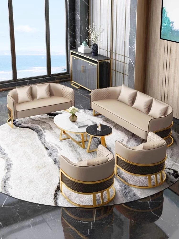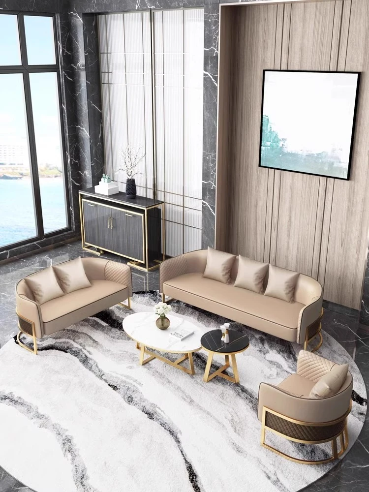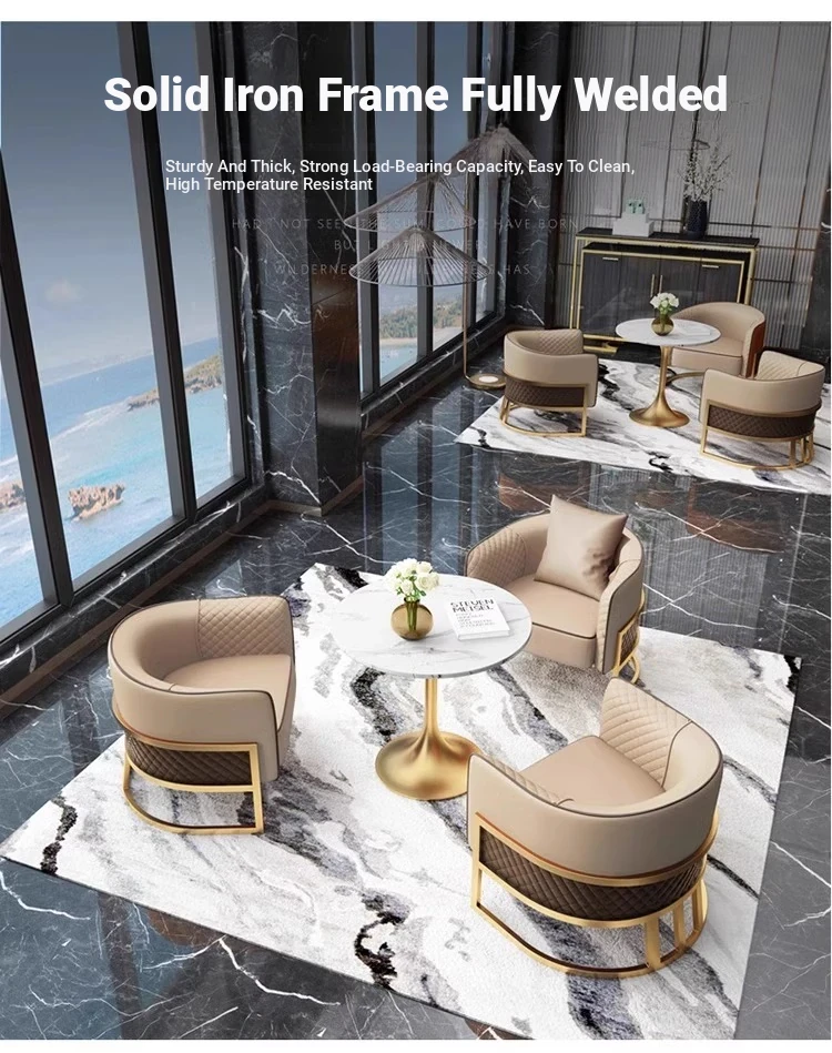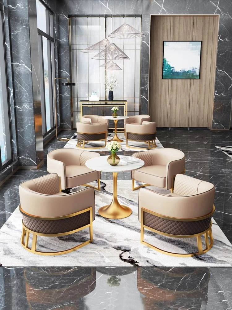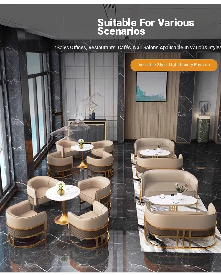 Elegant Lobby Reception Sofa Set for Hotels - Stylish Meeting Table and Chairs Combination for Sales Offices and Beauty Salons - Cozy Lounge Booth Seating for Relaxation Areas