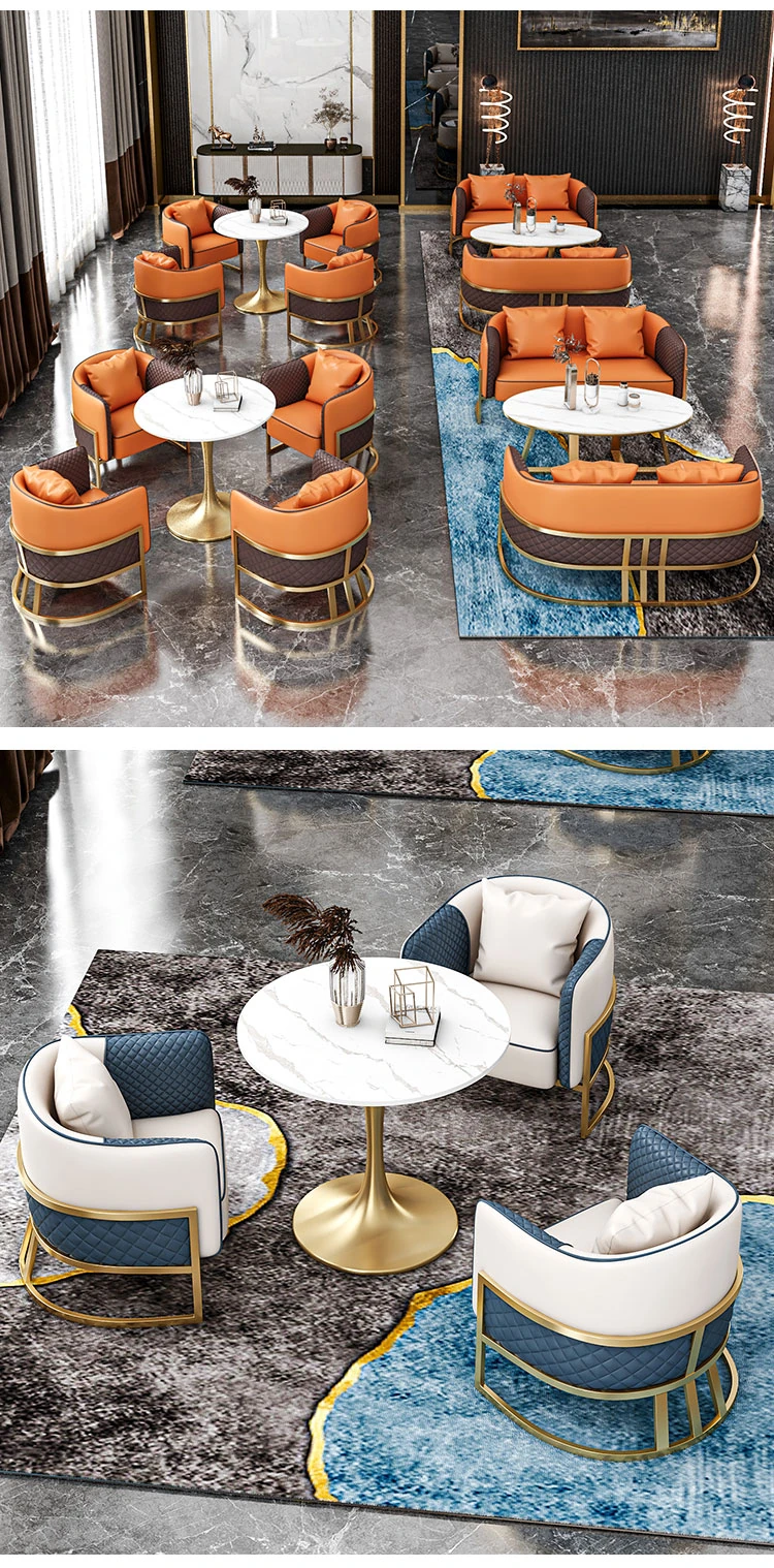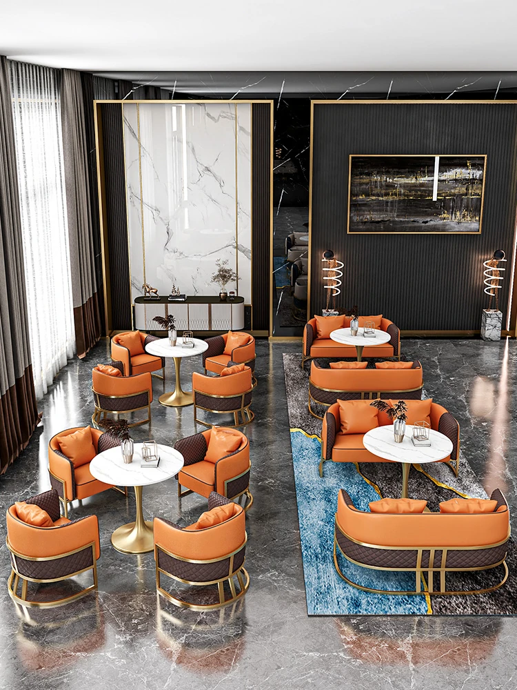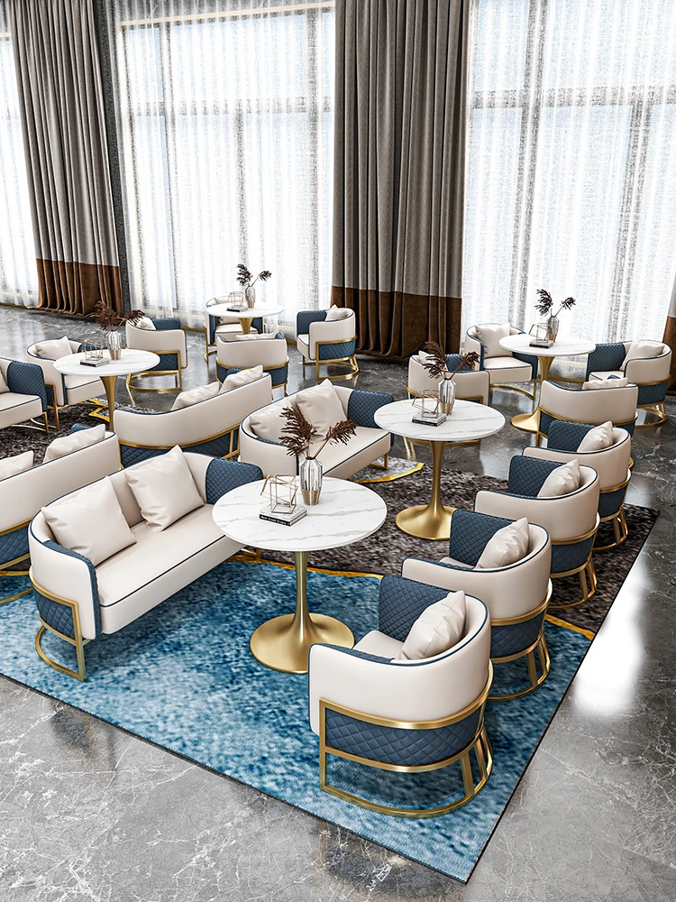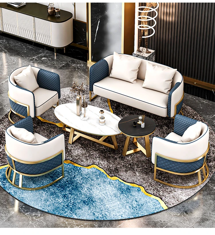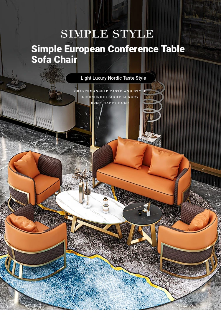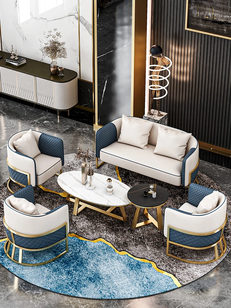 Elegant Lounge Sofa Set for Business Meetings - Stylish Reception Area with Table and Four Chairs, Perfect for Real Estate Discussions and Professional Gatherings