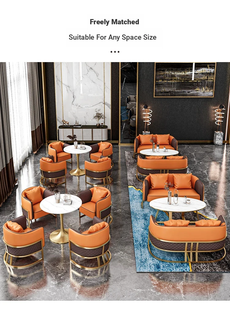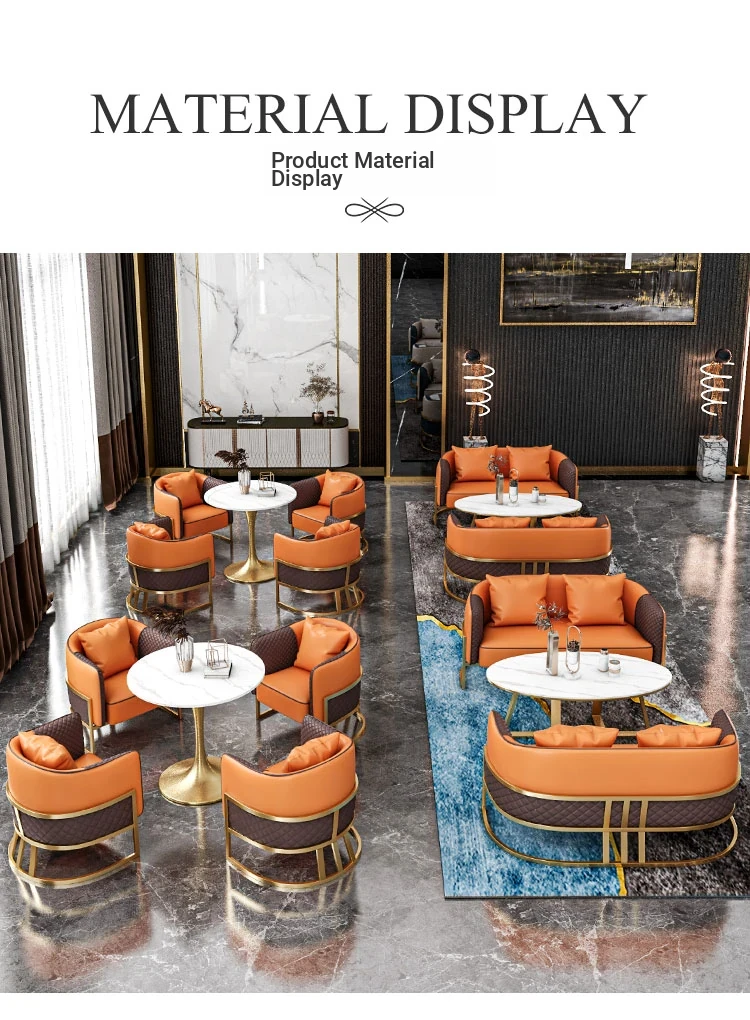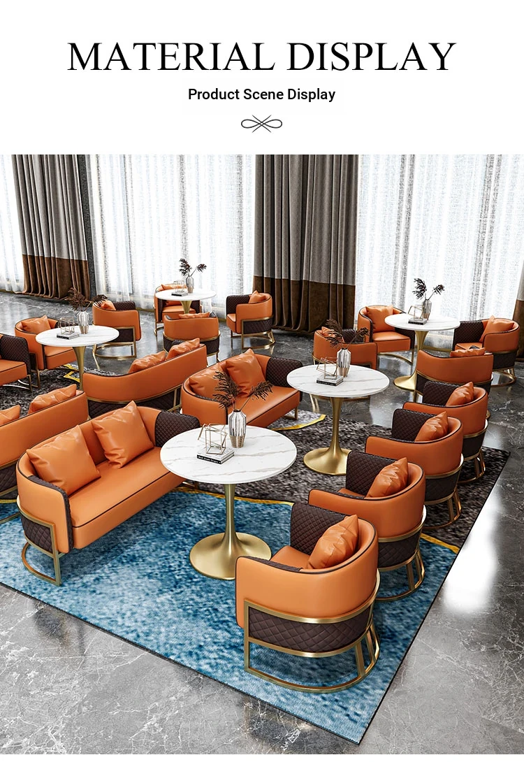 70 Round Table + Single Sofa * 4 [Orange]]