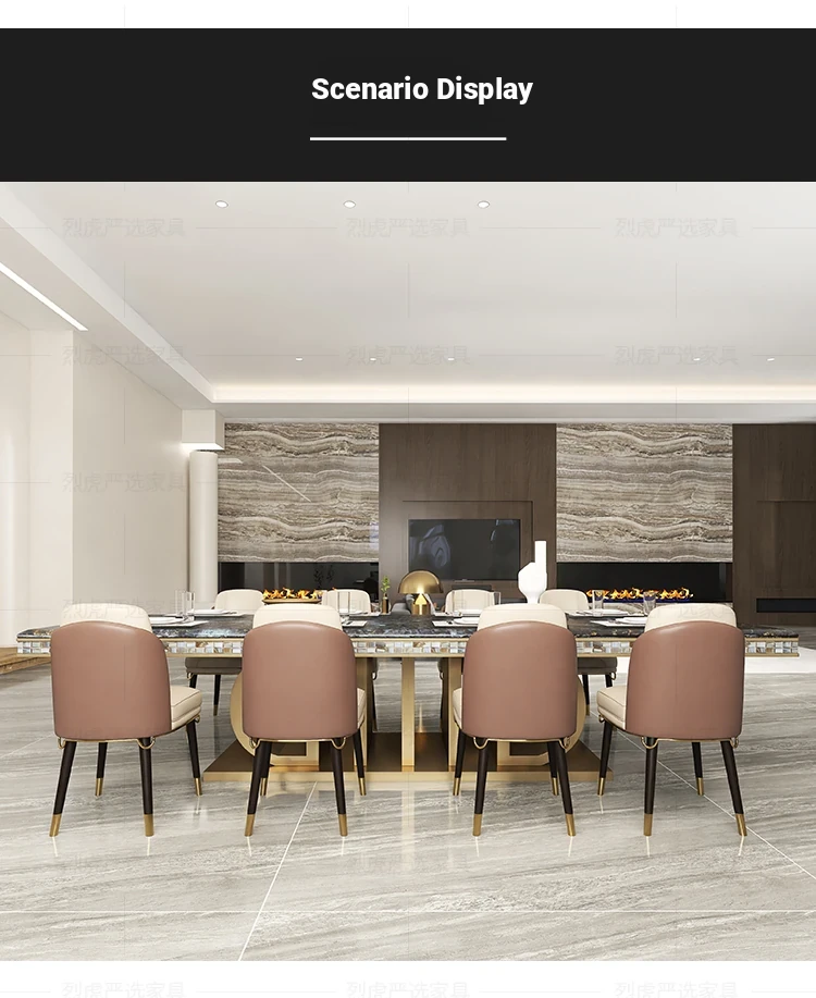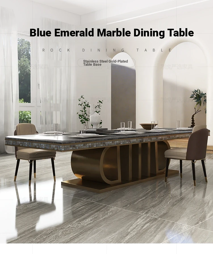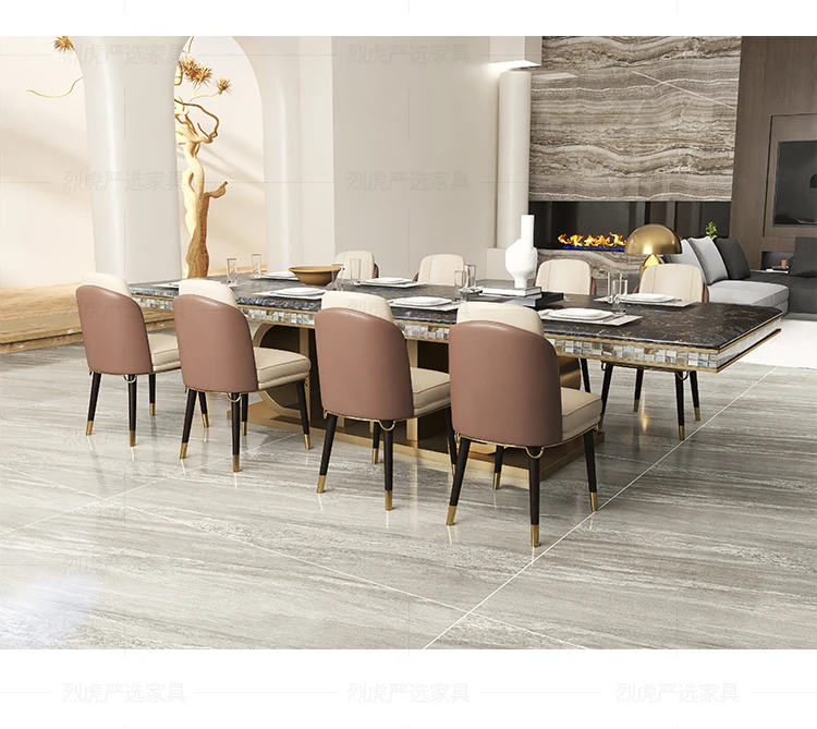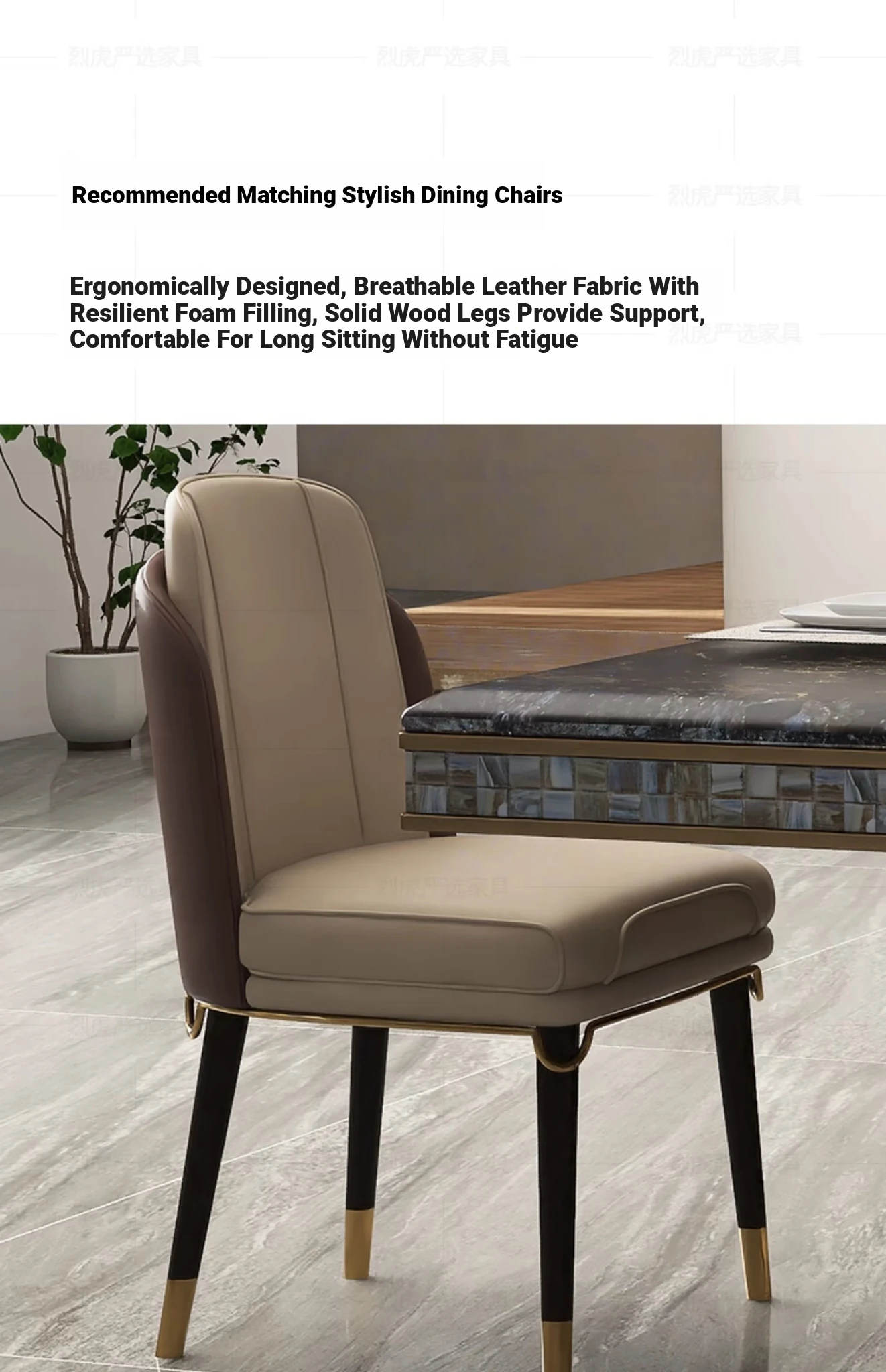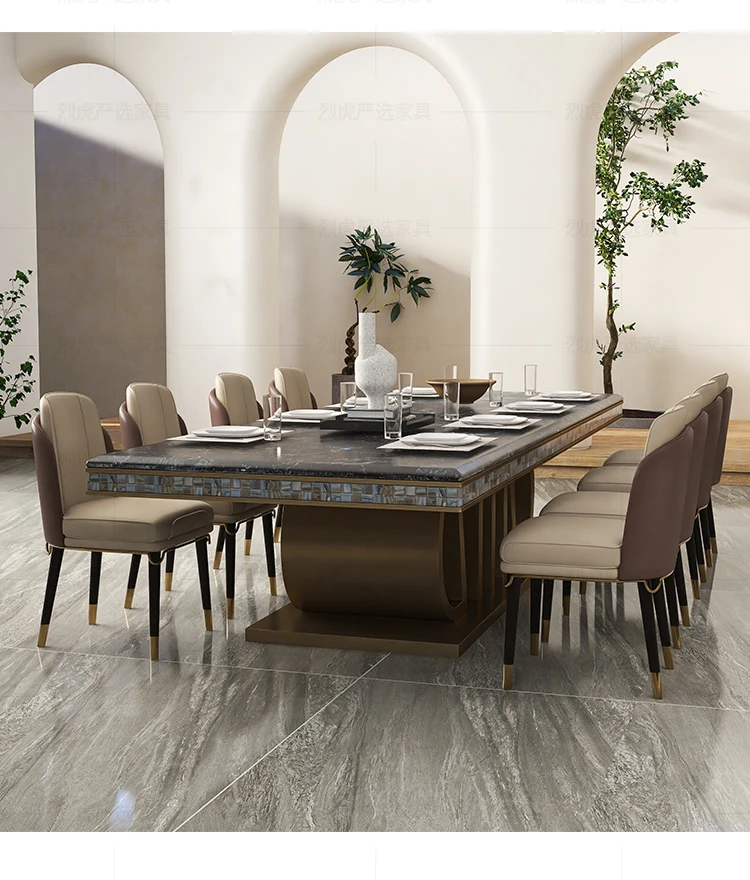 Elegant Marble Rectangular Dining Table Set - High-End Luxury Stone Table and Chairs for Villas, Perfect for Large Spaces, Seats Up to 10 People, Unique Shell Design
