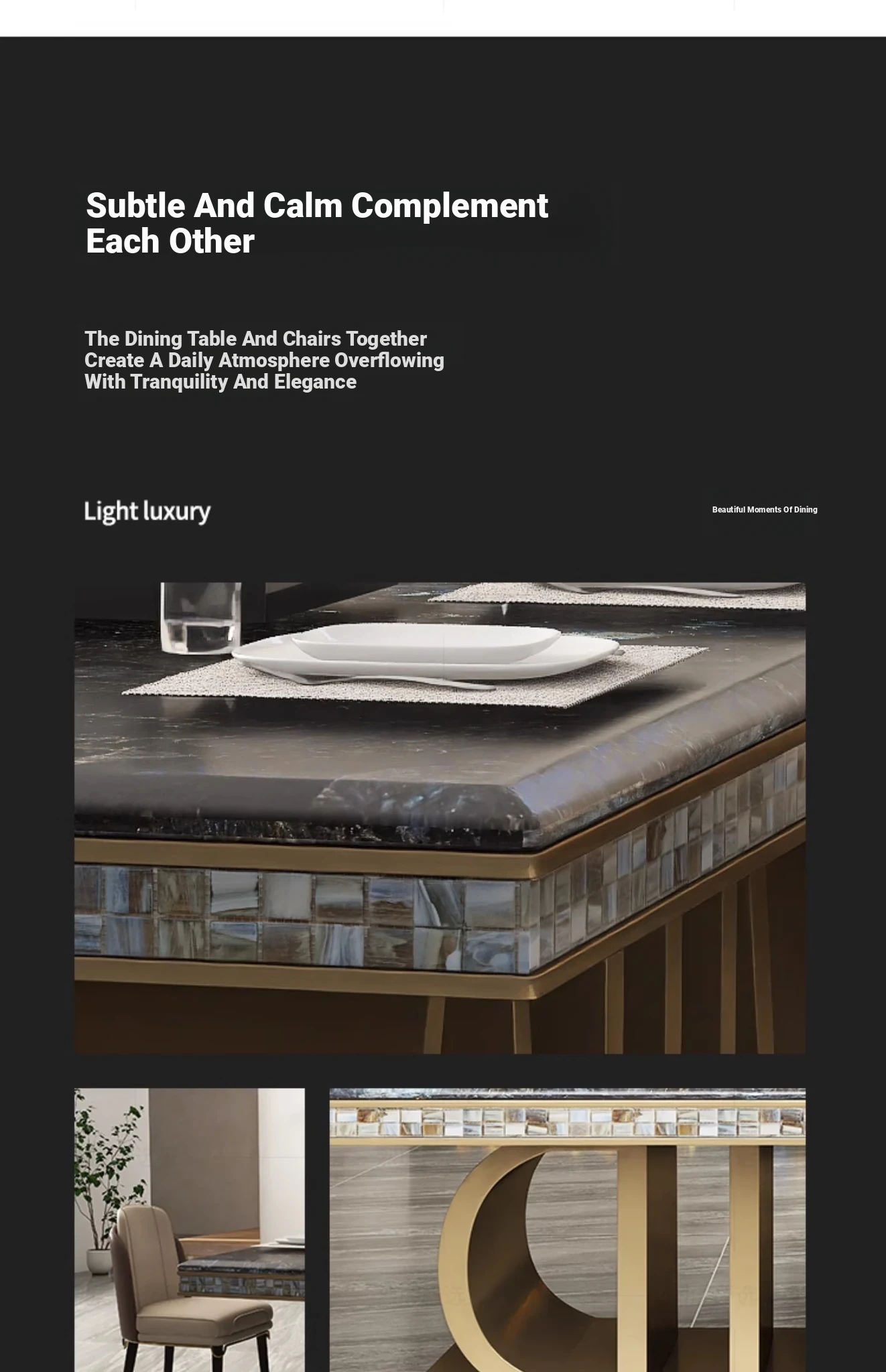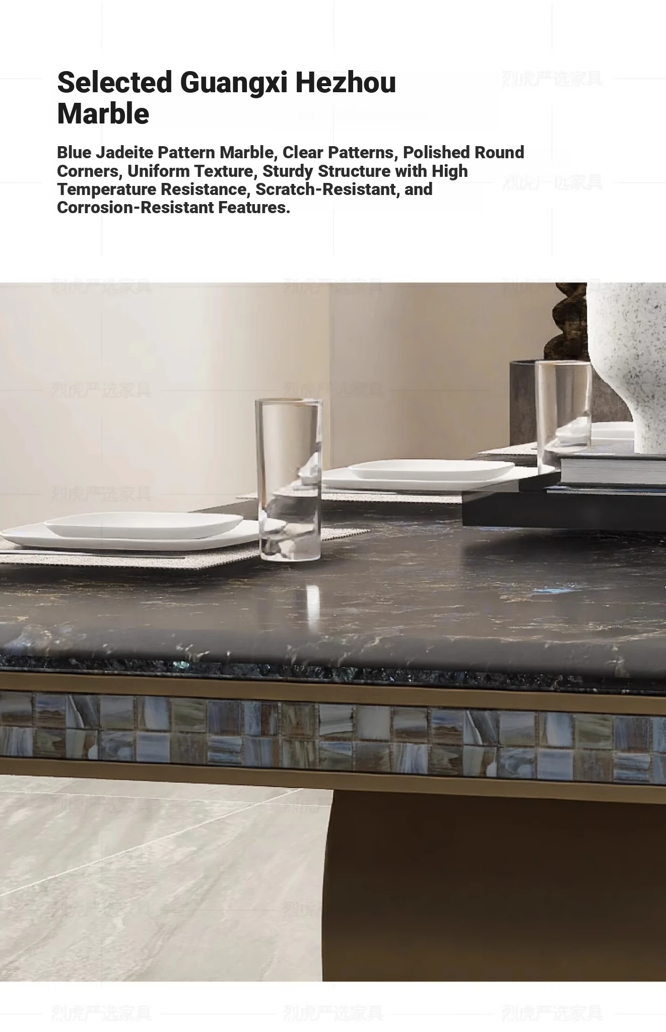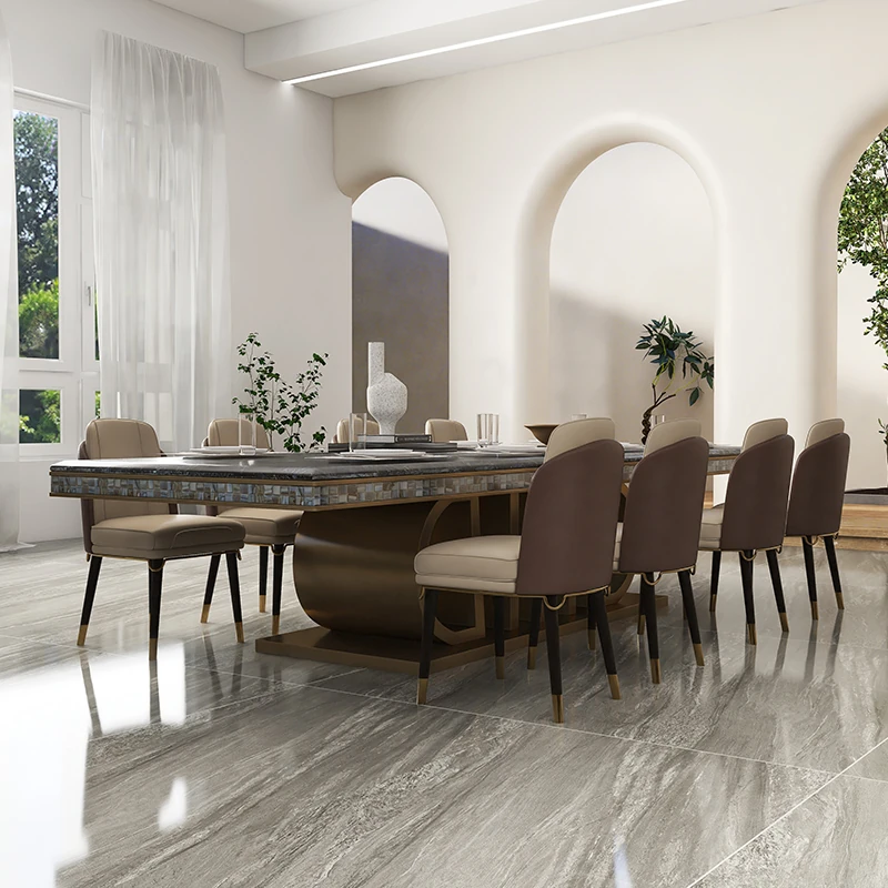 Elegant Marble Rectangular Dining Table Set - High-End Luxury Stone Table and Chairs for Villas, Perfect for Large Spaces, Seats Up to 10 People, Unique Shell Design