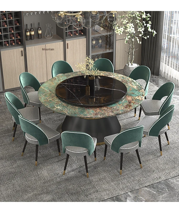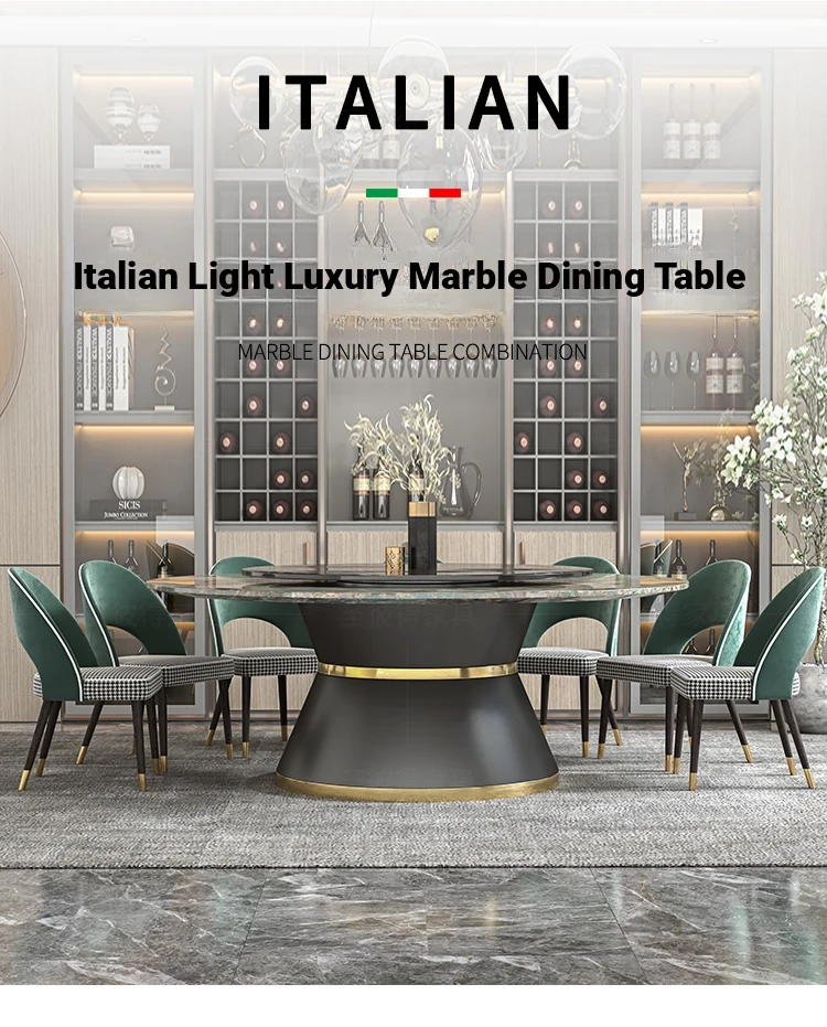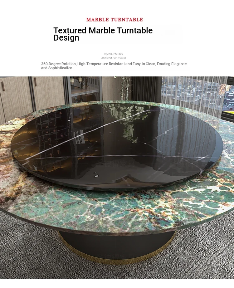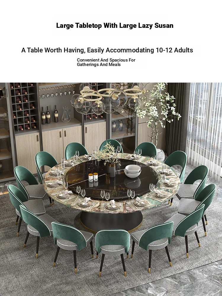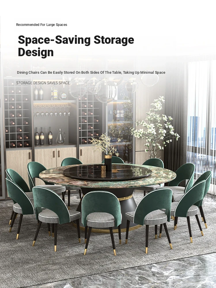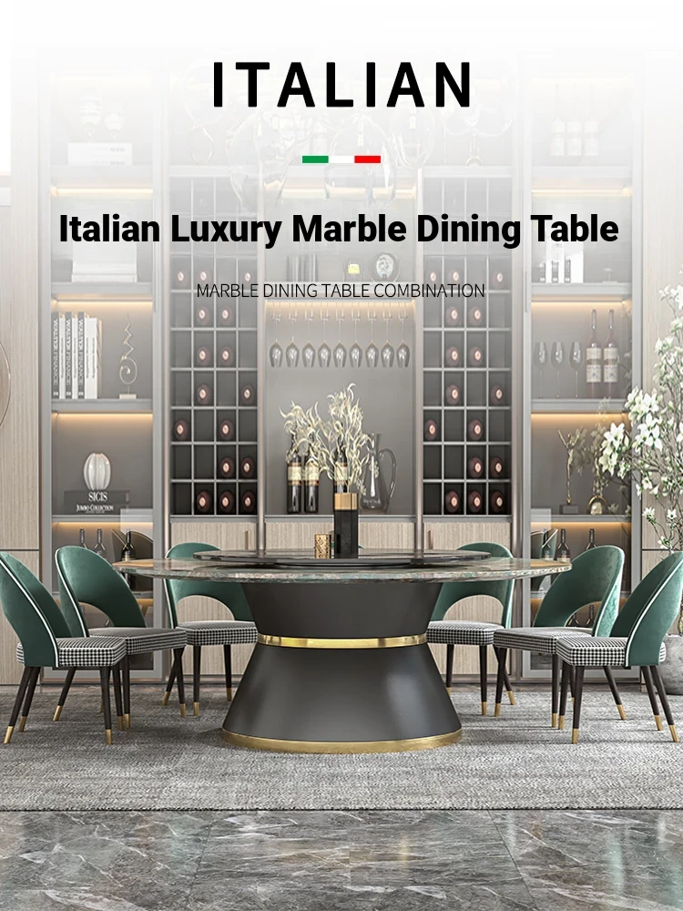 Elegant Marble Round Dining Table with Rotating Feature - Perfect for Large Italian Homes, Seats Up to 10 People. Ideal Electric Dining Set for Villas and Family Gatherings.