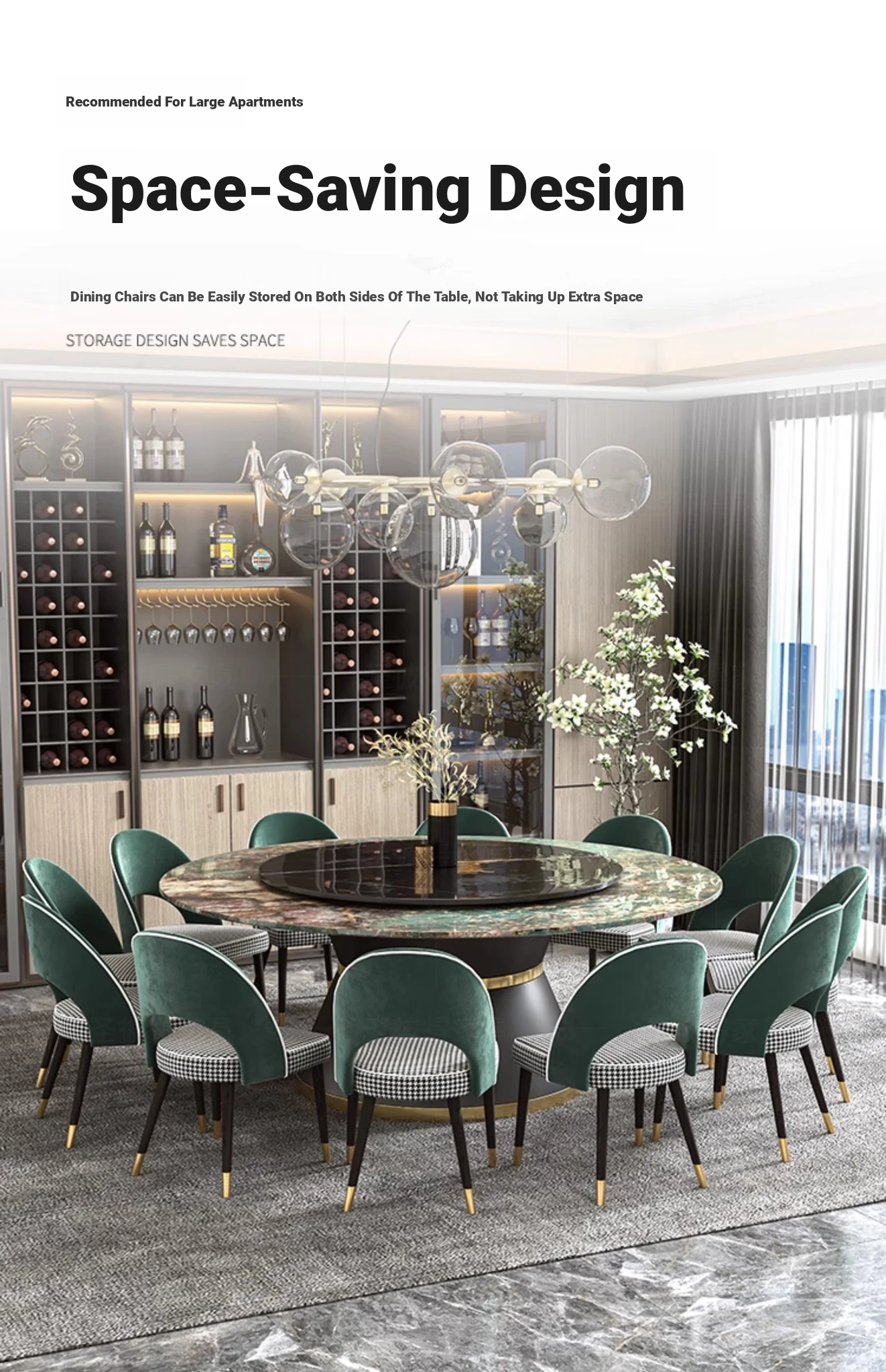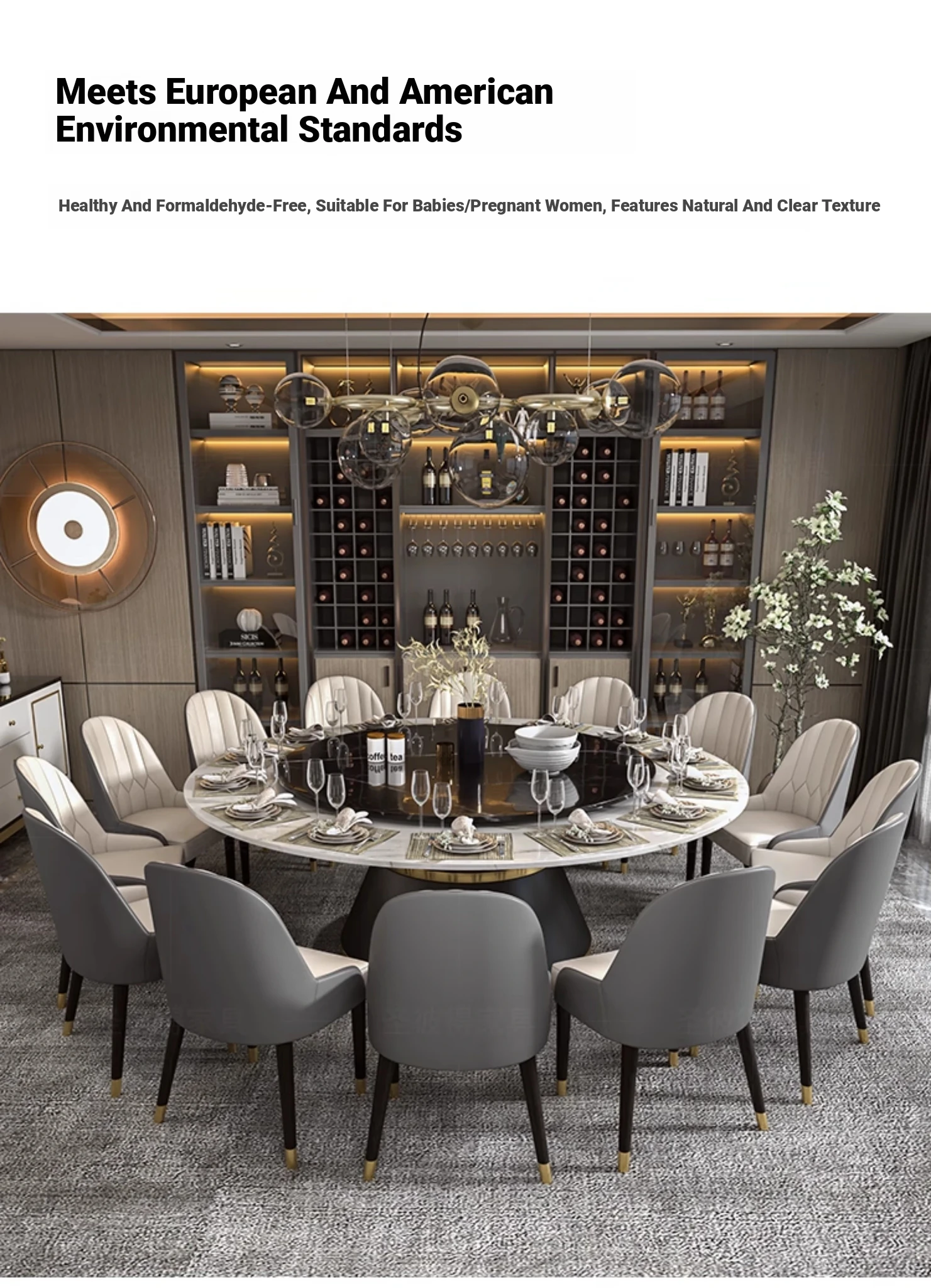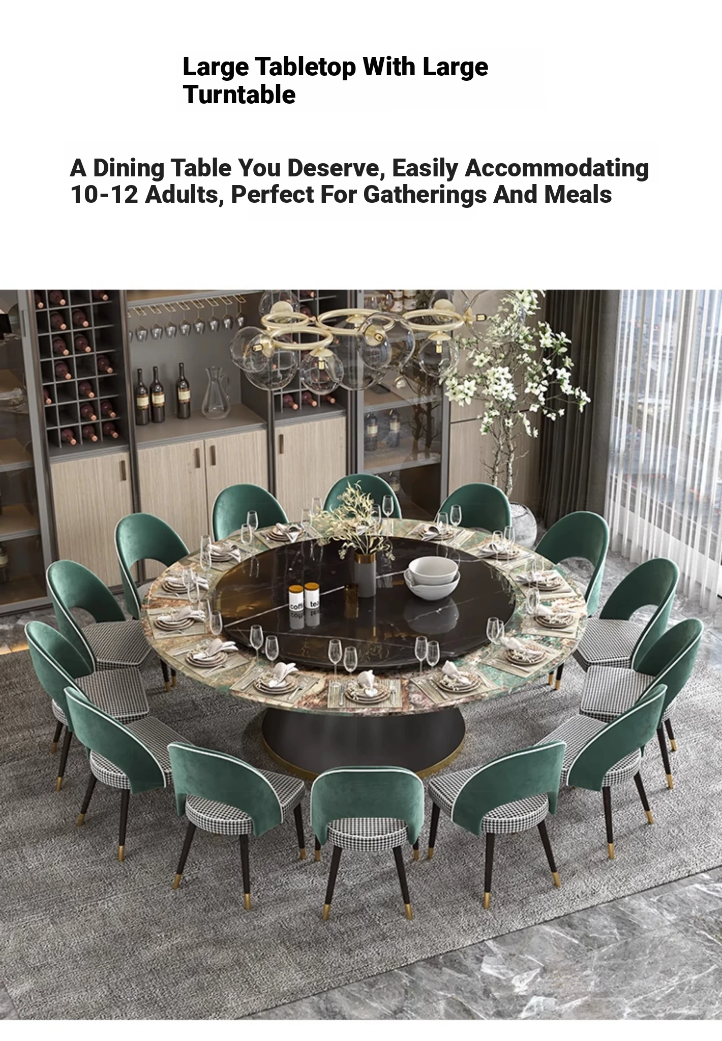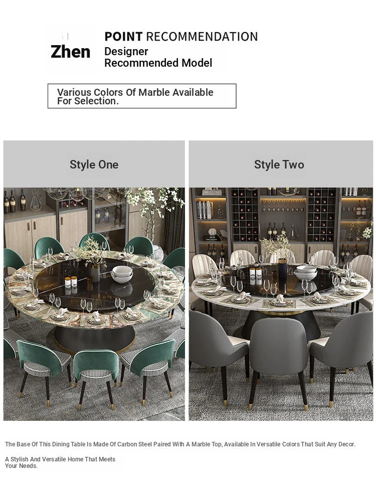 Elegant Marble Round Dining Table with Rotating Feature - Perfect for Large Italian Homes, Seats Up to 10 People. Ideal Electric Dining Set for Villas and Family Gatherings.