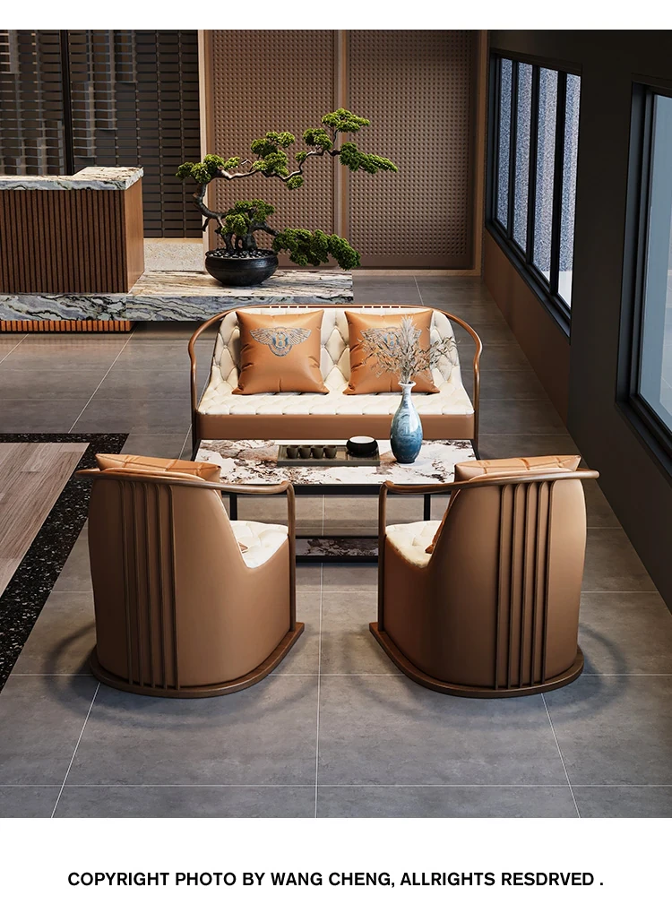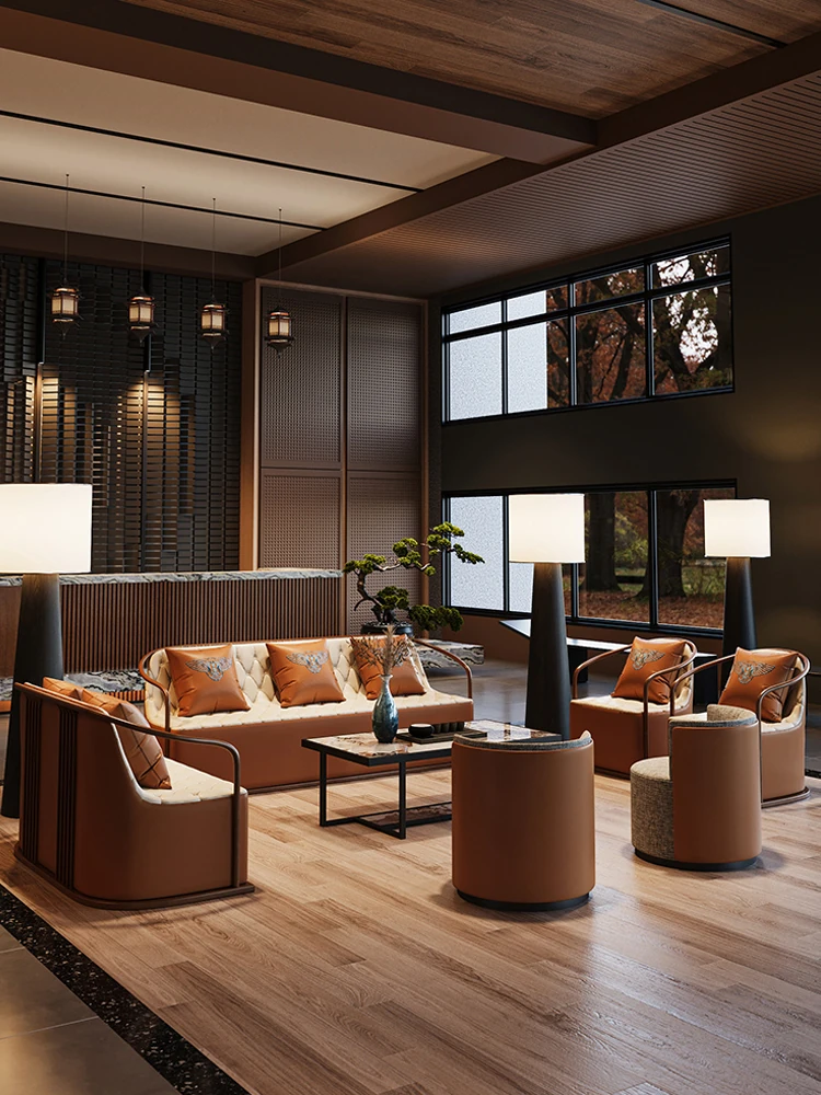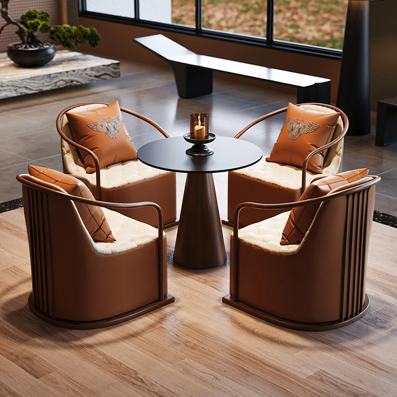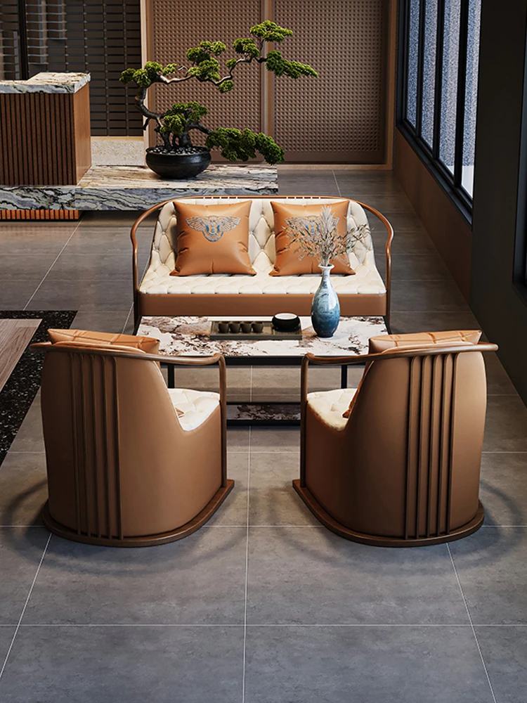 Elegant New Chinese Style Conference Table and Chair Set for Luxurious Hotel Lobbies and Clubs - Perfect for Reception Areas with One Table and Four Chairs