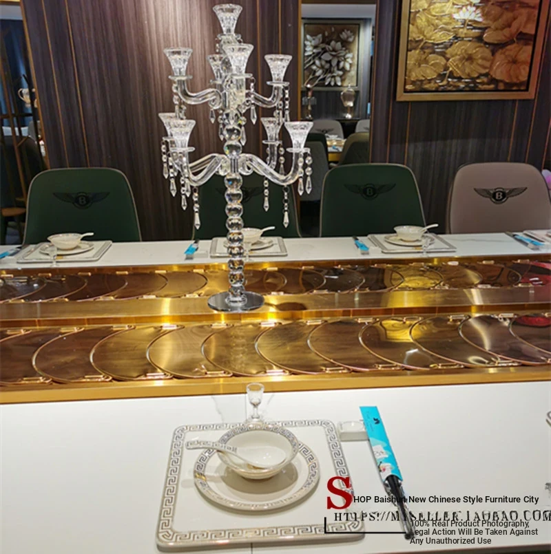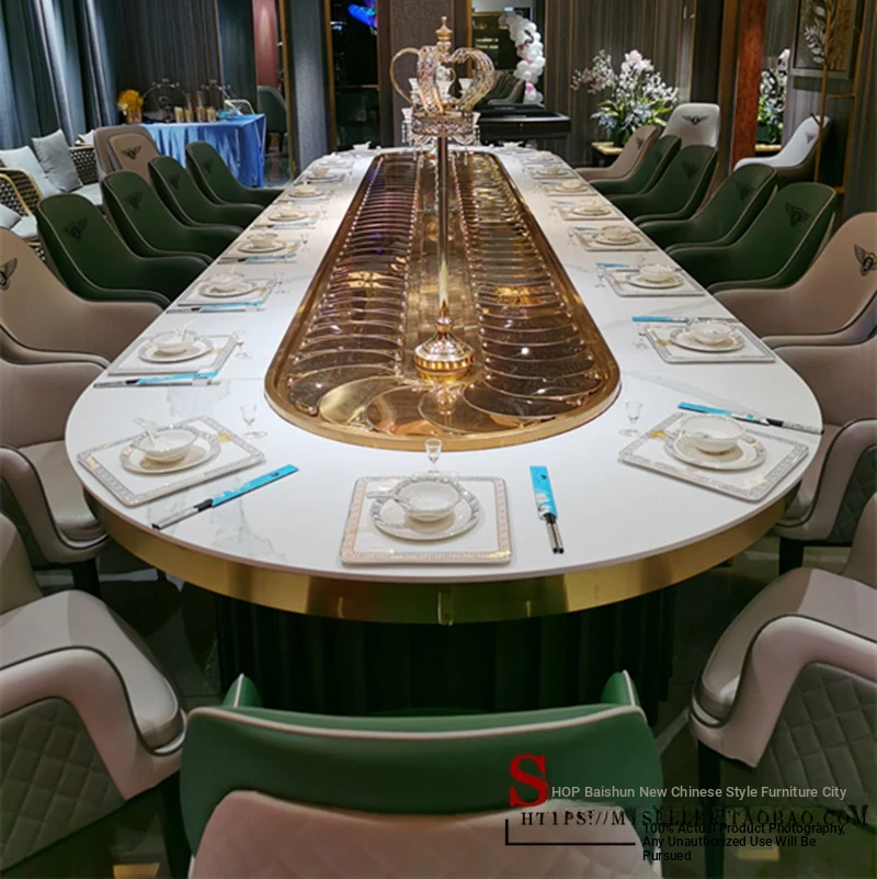 Elegant New Chinese Style Electric Oval Dining Table for Restaurants and Private Rooms - 20-Person Rectangular Rotating Table, Perfect for Dumpling Houses and High-End Clubs.