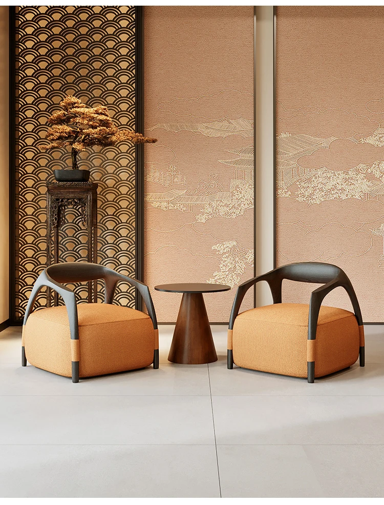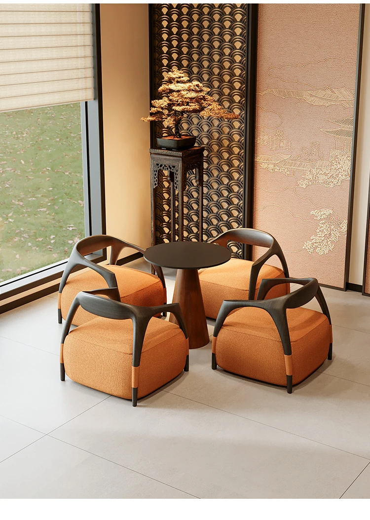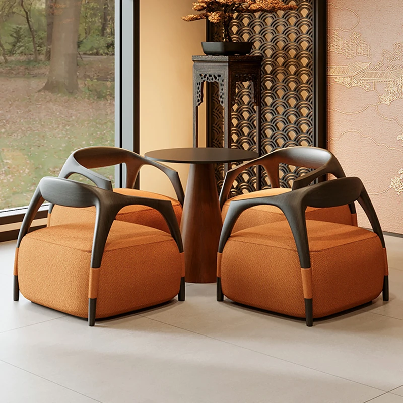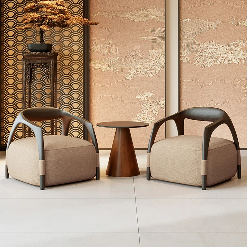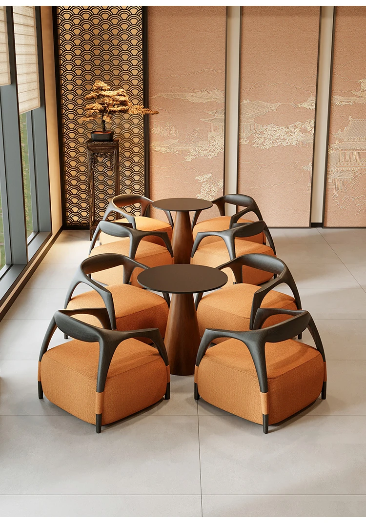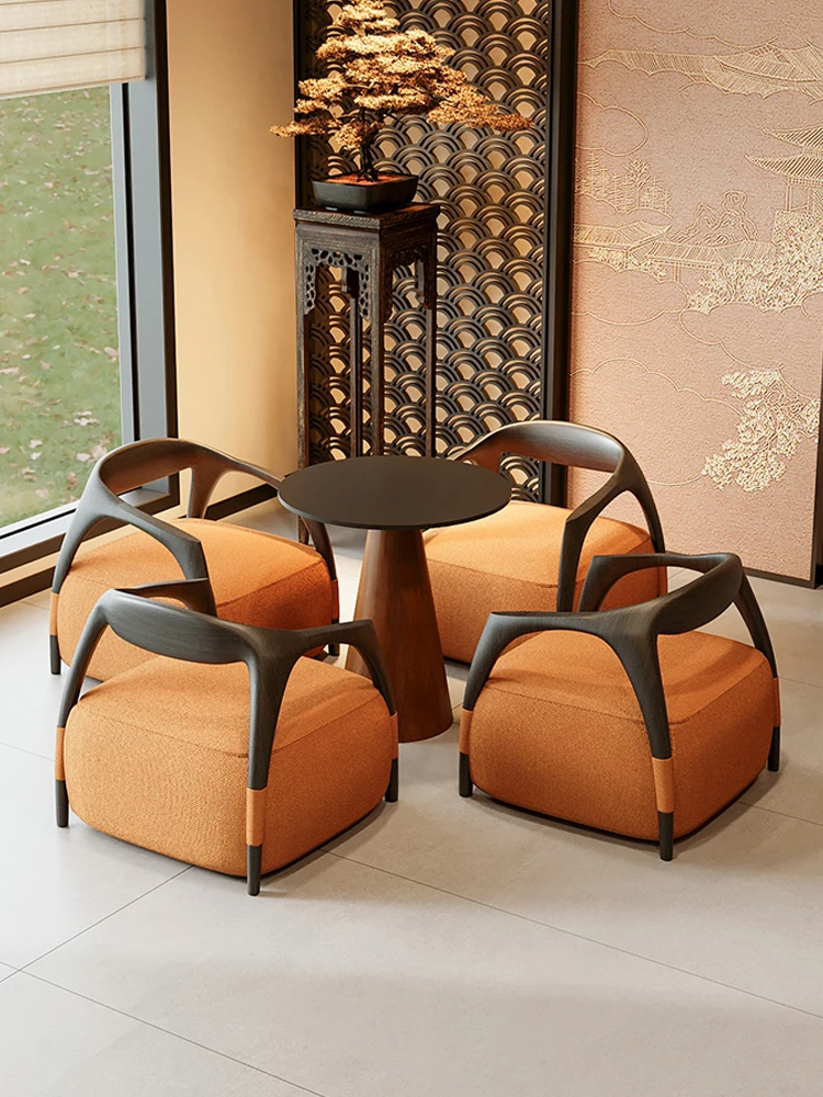 Elegant New Chinese Zen Reception Table and Chair Set - Premium Solid Wood Sofa for High-End Hotels, Clubs, and Tea Rooms. Perfect for Business Meetings and Client Discussions.