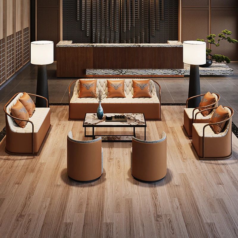 Elegant New Chinese Zen Style Lobby Sofa Set - High-End Lounge Seating for Tea Houses and Reception Areas, Perfect for Meetings and Relaxation.