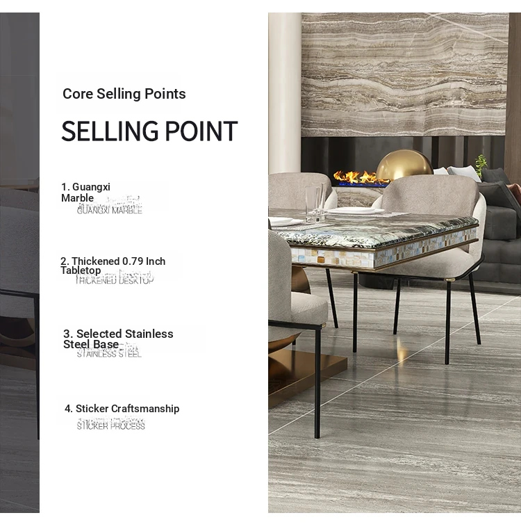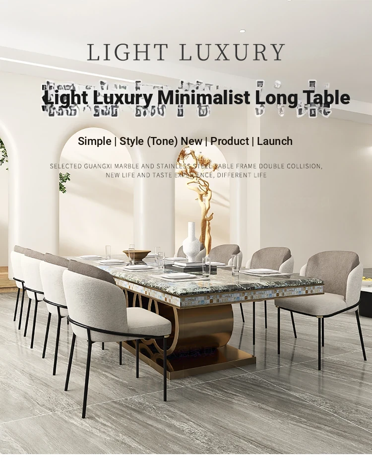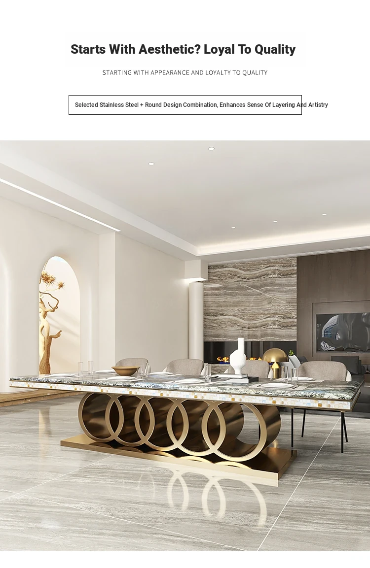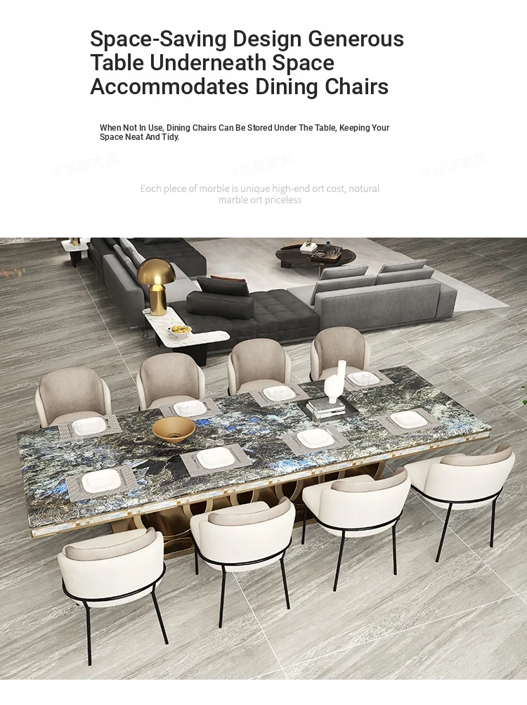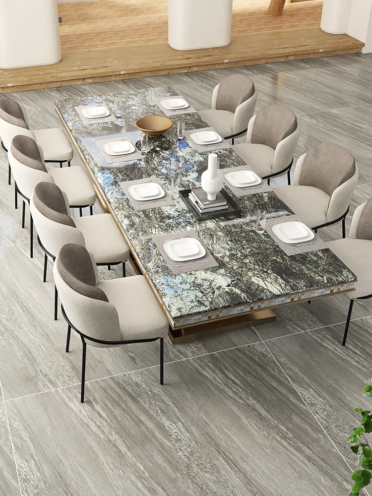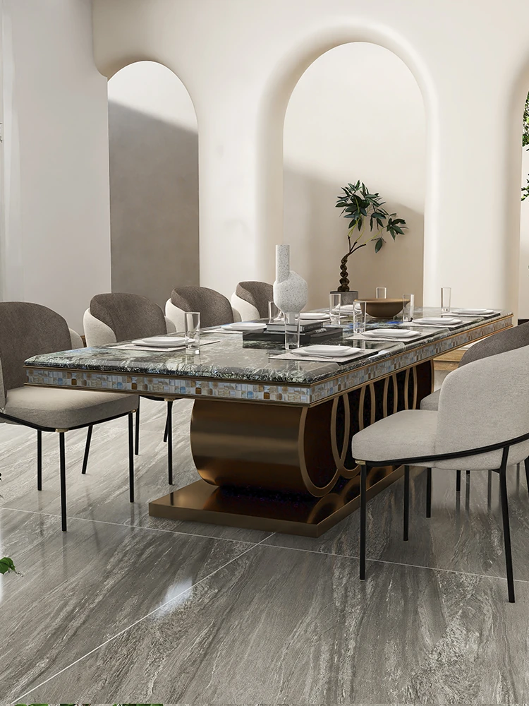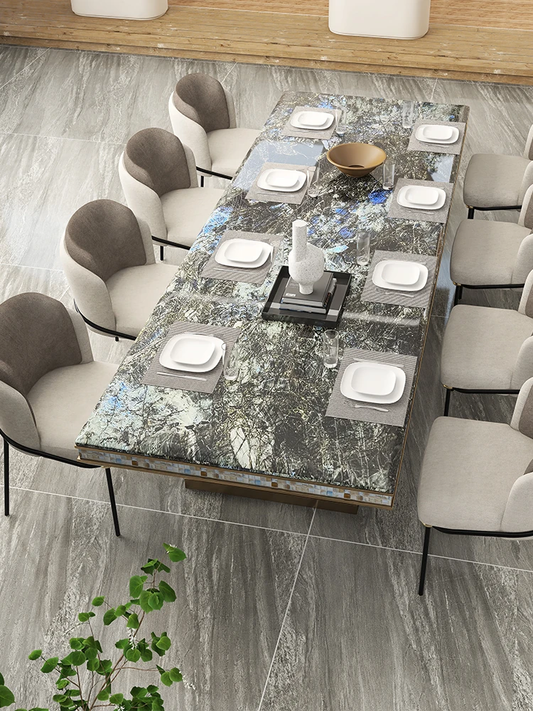 Elegant Rectangular Marble Dining Table for Home - Luxurious Italian Design with Blue Jade Accents, Perfect for Stylish Dining Experiences.
