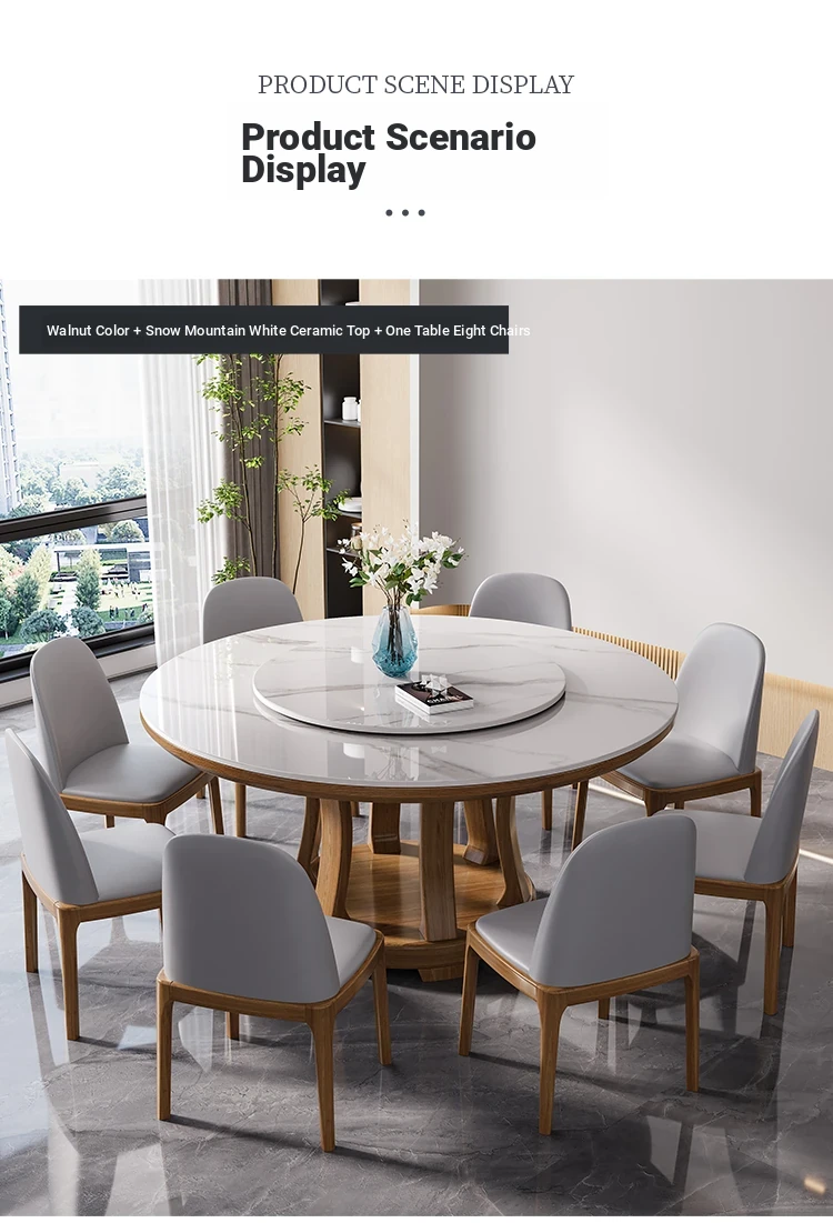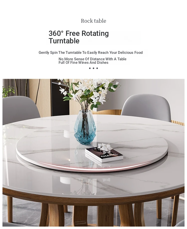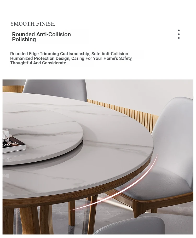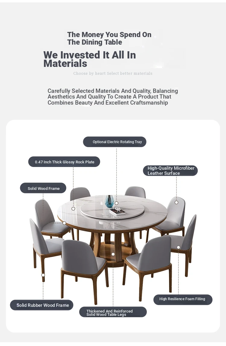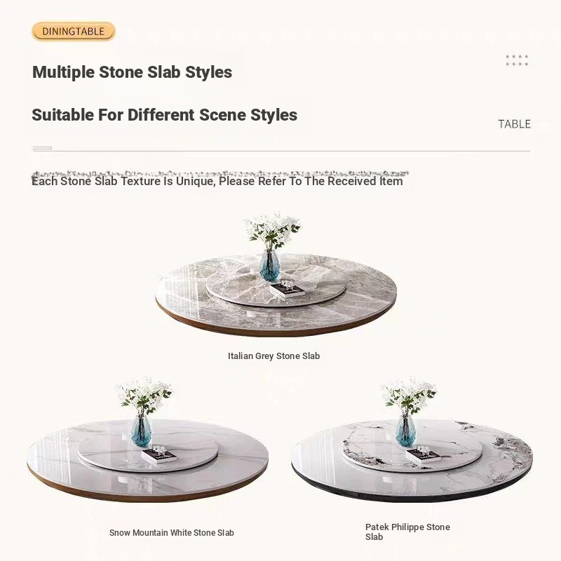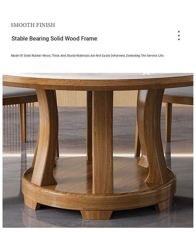 Elegant Round Dining Table with Luxury Stone Surface - Solid Wood, Modern Minimalist Design for Small Spaces, Ideal for Induction Cooktops - Perfect for Home Use