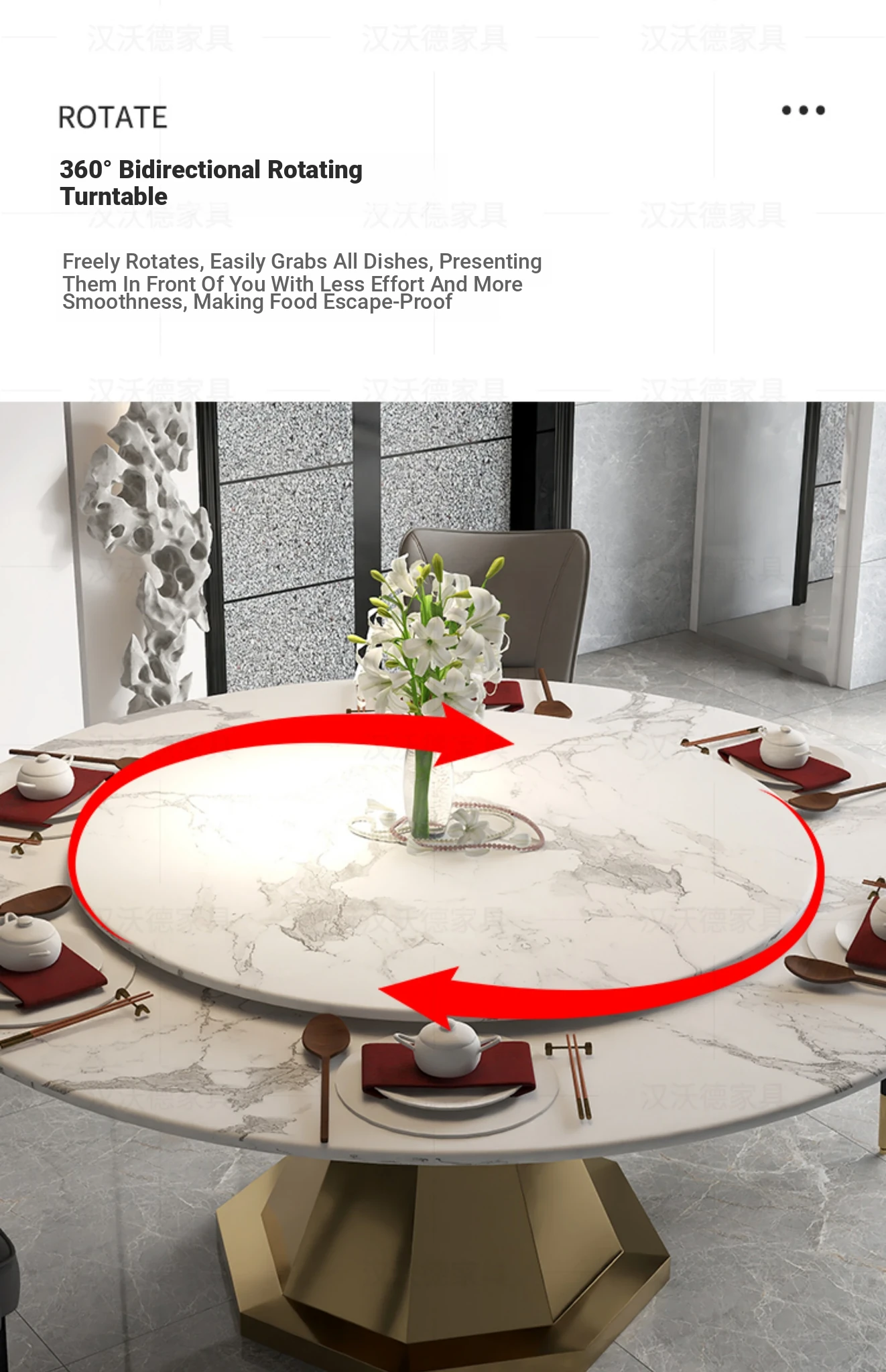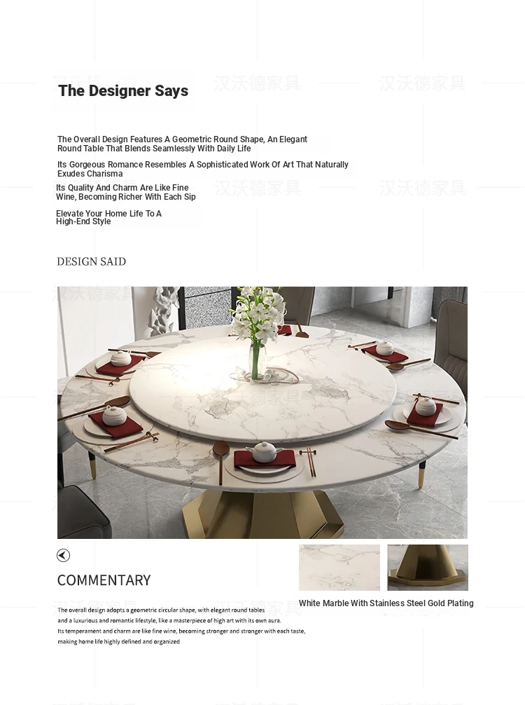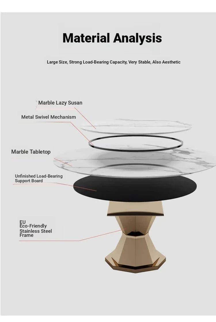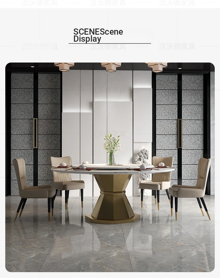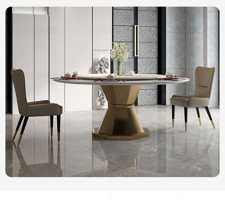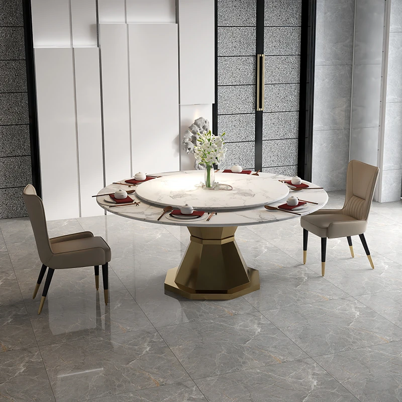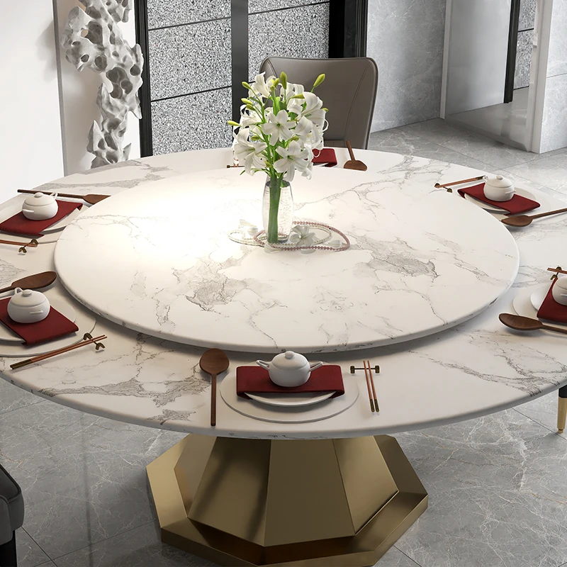Elegant Round Marble Dining Table with Rotating Tray - Luxury Design for Home, Accommodates 10 People, Perfect for High-End Villas and Stylish Dining Experiences.