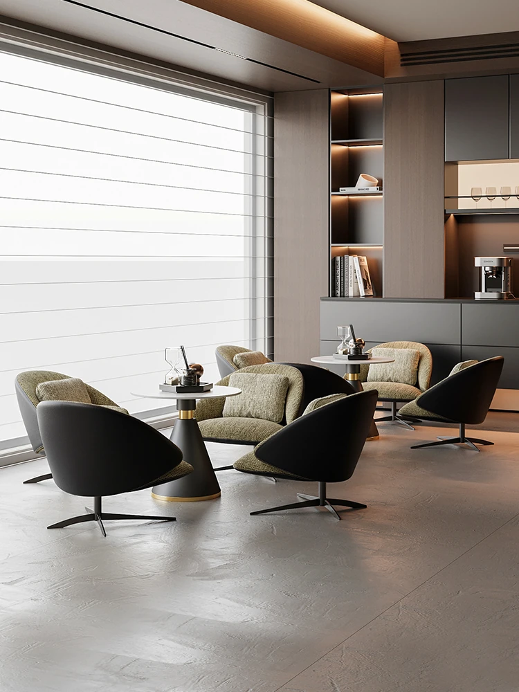 Elegant Sales Office Discussion Table and Chair Set - Perfect for Hotel Lobbies, Lounges, Exhibition Halls, and Reception Areas. Features One Table and Four Chairs for Comfortable Client Meetings. Ideal for Creating a Chic and Inviting Atmosphere.