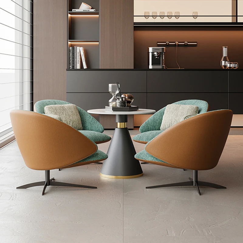 Orange Brown green sofa chair (cotton + Nappa skin)