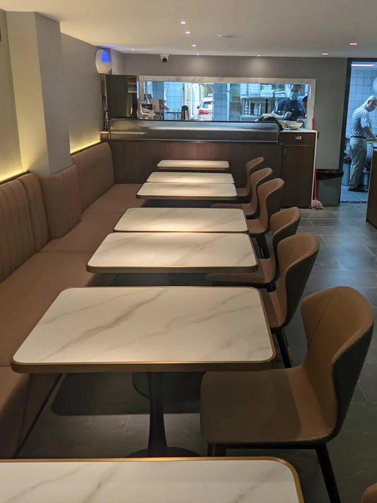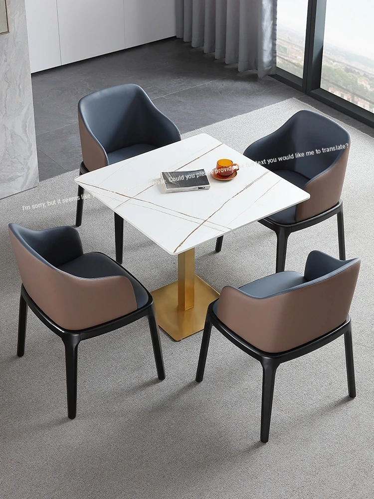 Elegant Square Negotiation Table and Chair Set - Perfect for Cafés and Home Dining, Featuring Durable Rock Slab Design for Stylish Meetings and Meals.
