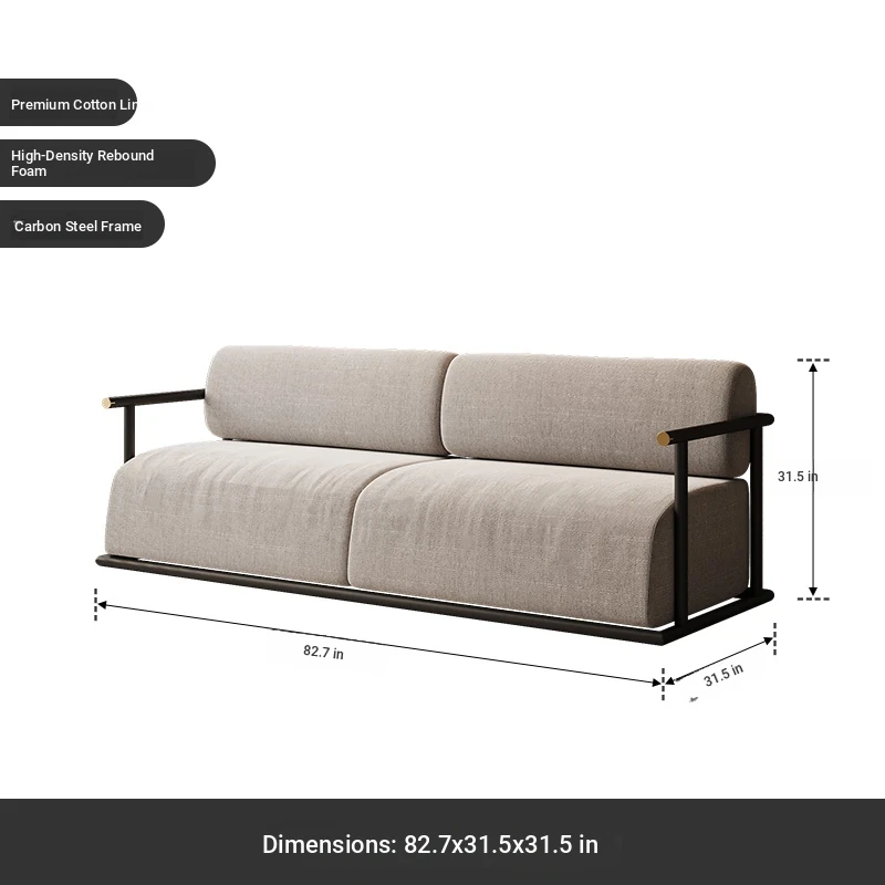 New Chinese-style three-person sofa (cotton and linen)