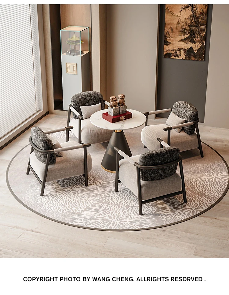 Elegant Zen-Style Meeting Table and Chair Set for Hotels and Lounges - Perfect for Business Reception Areas and Sales Offices, Offering a Serene and Comfortable Atmosphere for Client Meetings.