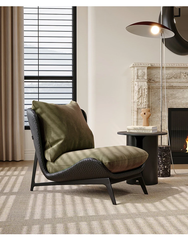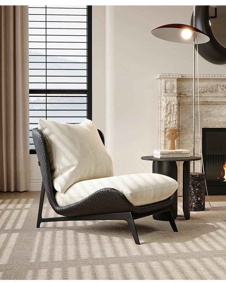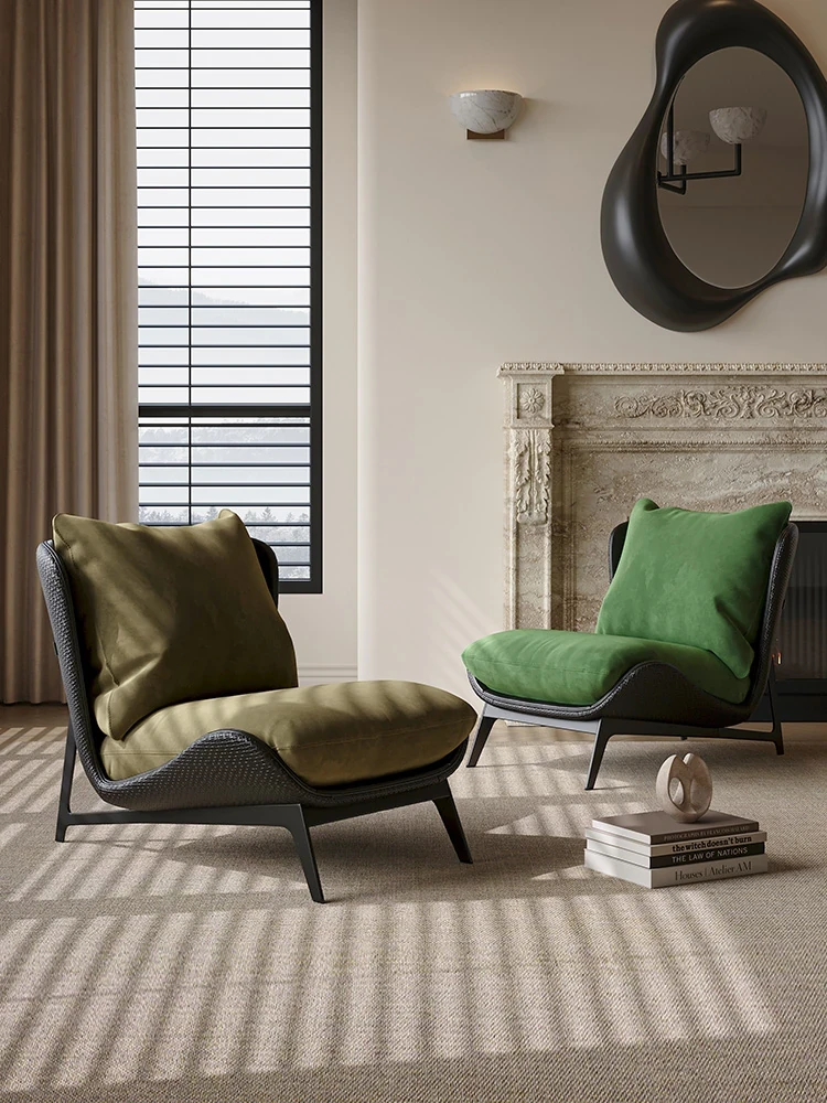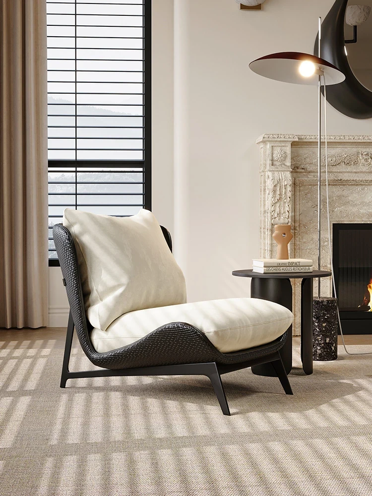 Italian Light Luxury Designer Single Sofa - Minimalist Modern Chair for Small Living Rooms and Balconies, Trendy Leisure Armchair for Relaxation