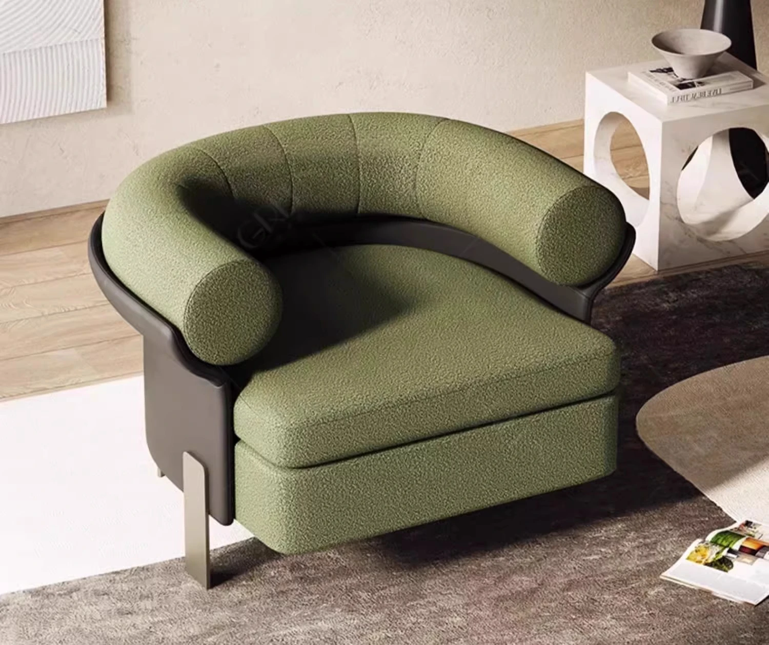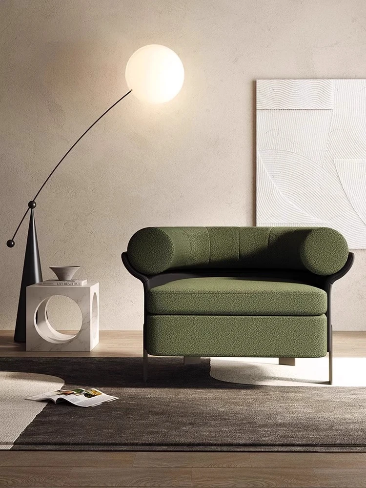 Italian Luxury Single Sofa Chair with Lamb Fleece Backrest - Stylish Lazy Chair for Designers, Perfect for Hotel Reception and Casual Meetings