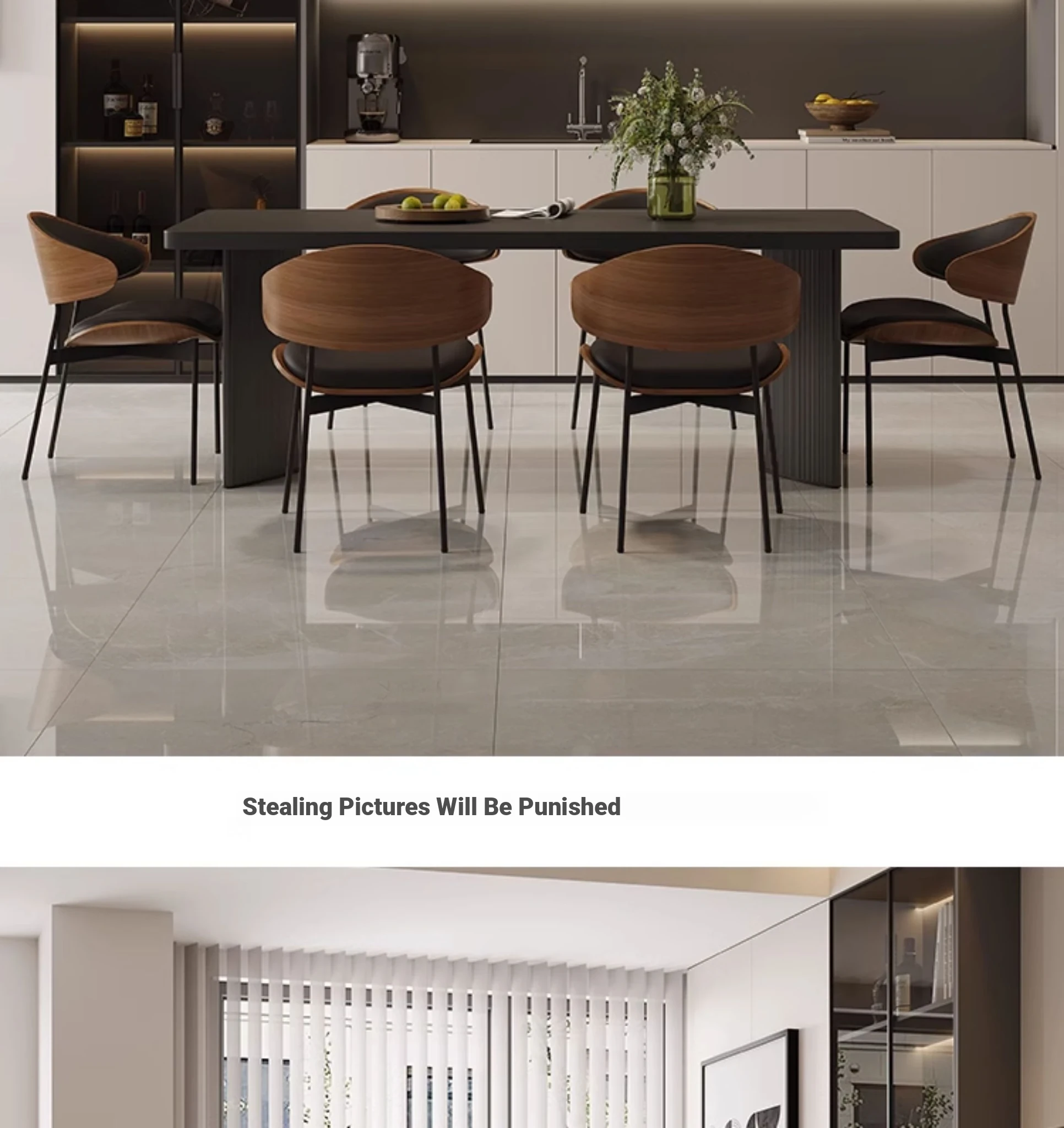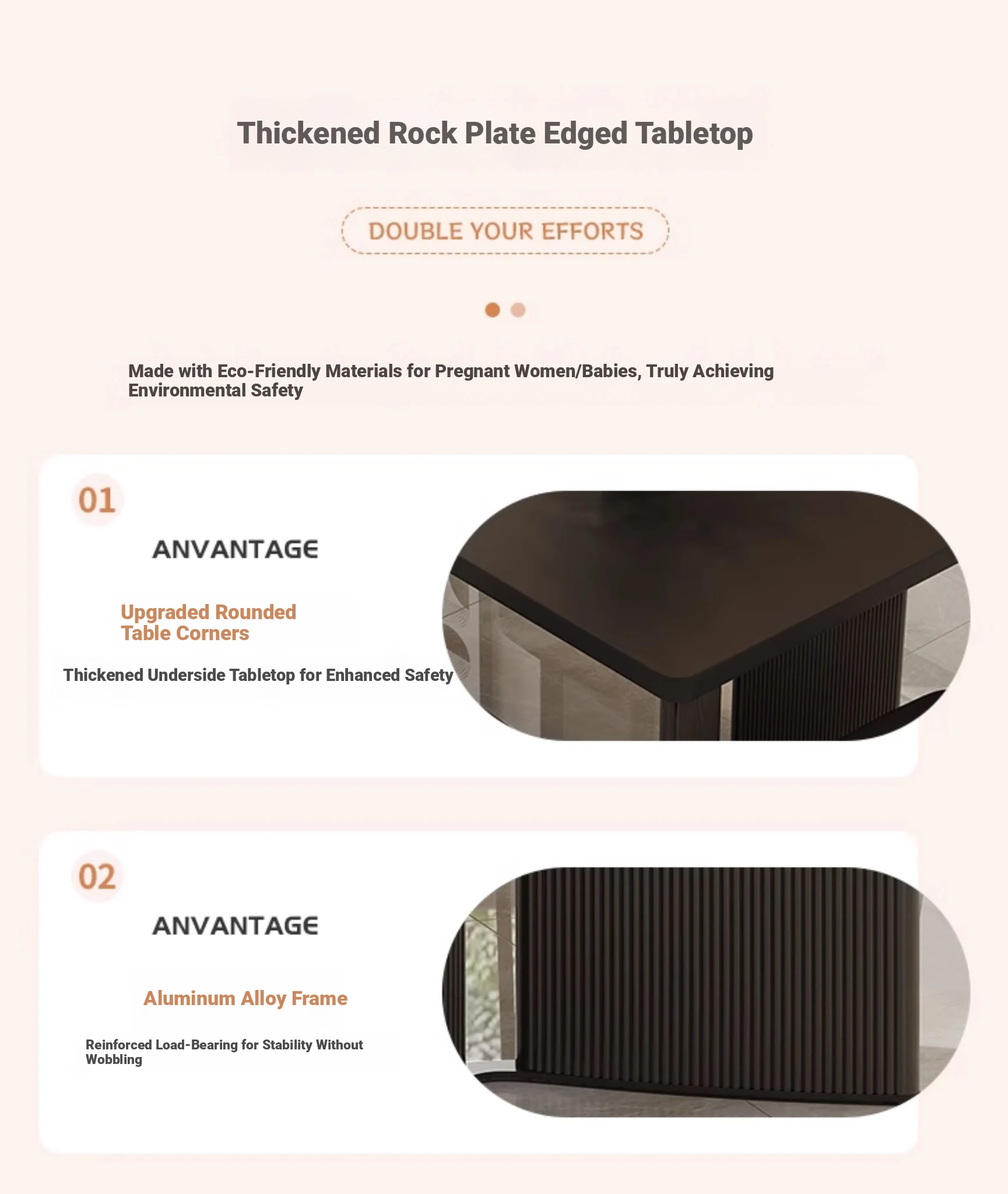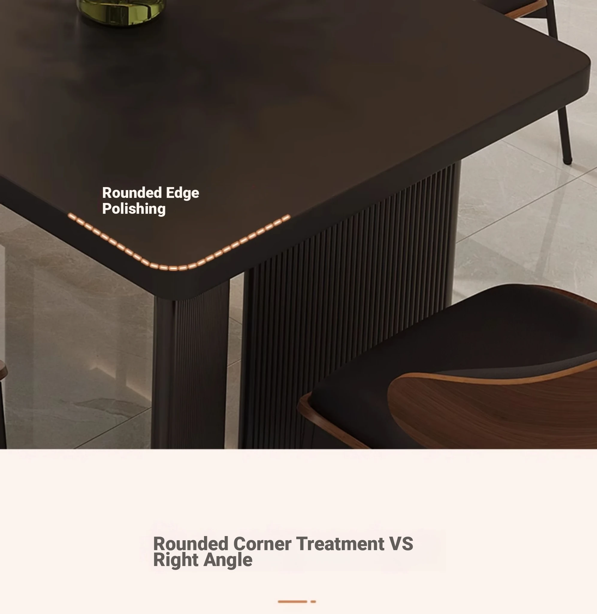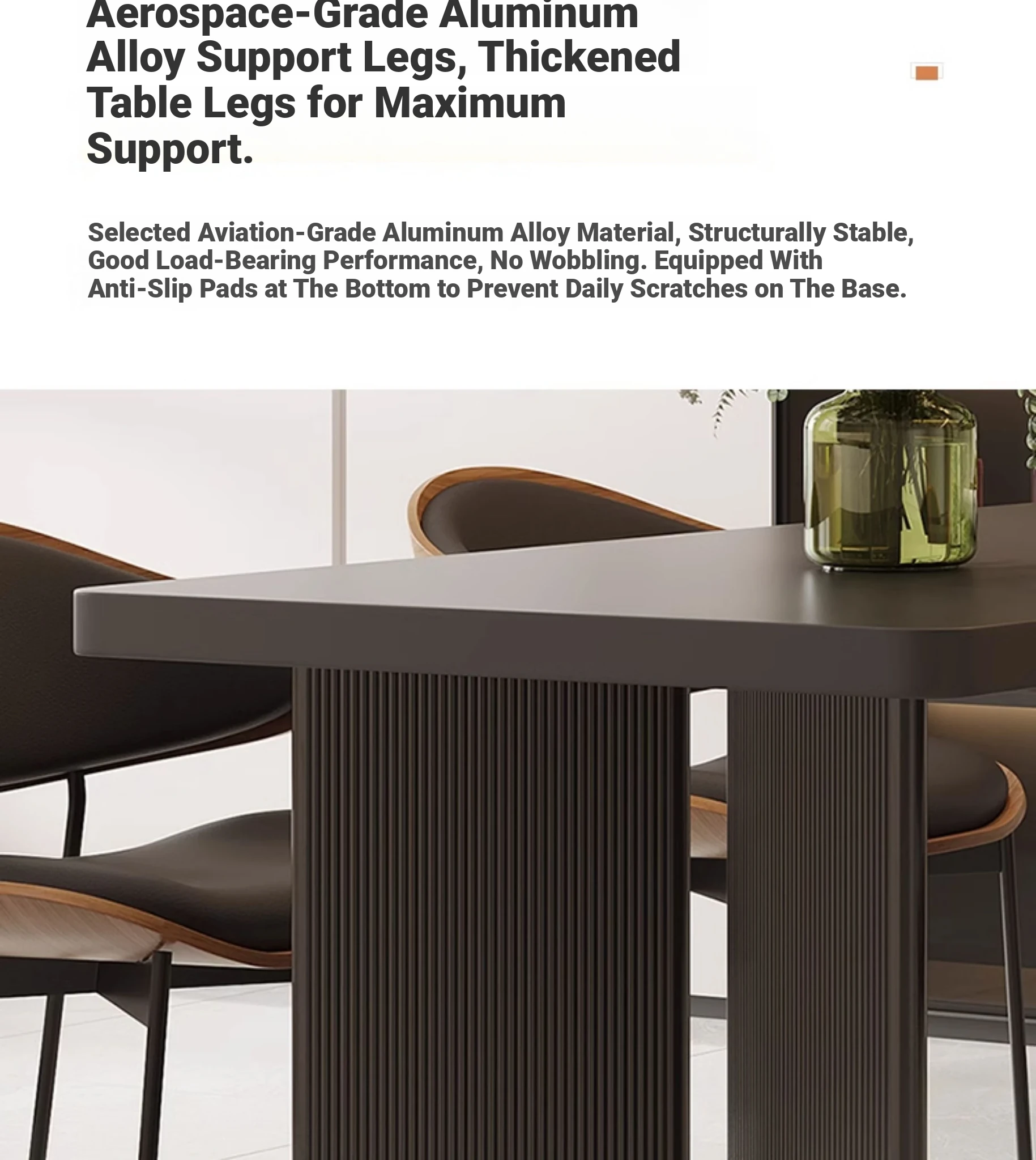 Luxury Black Aluminum Alloy Lawrence Dining Table with Elegant Under-Hang Design - Modern Minimalist Black Stone Table for Chic Dining Experiences