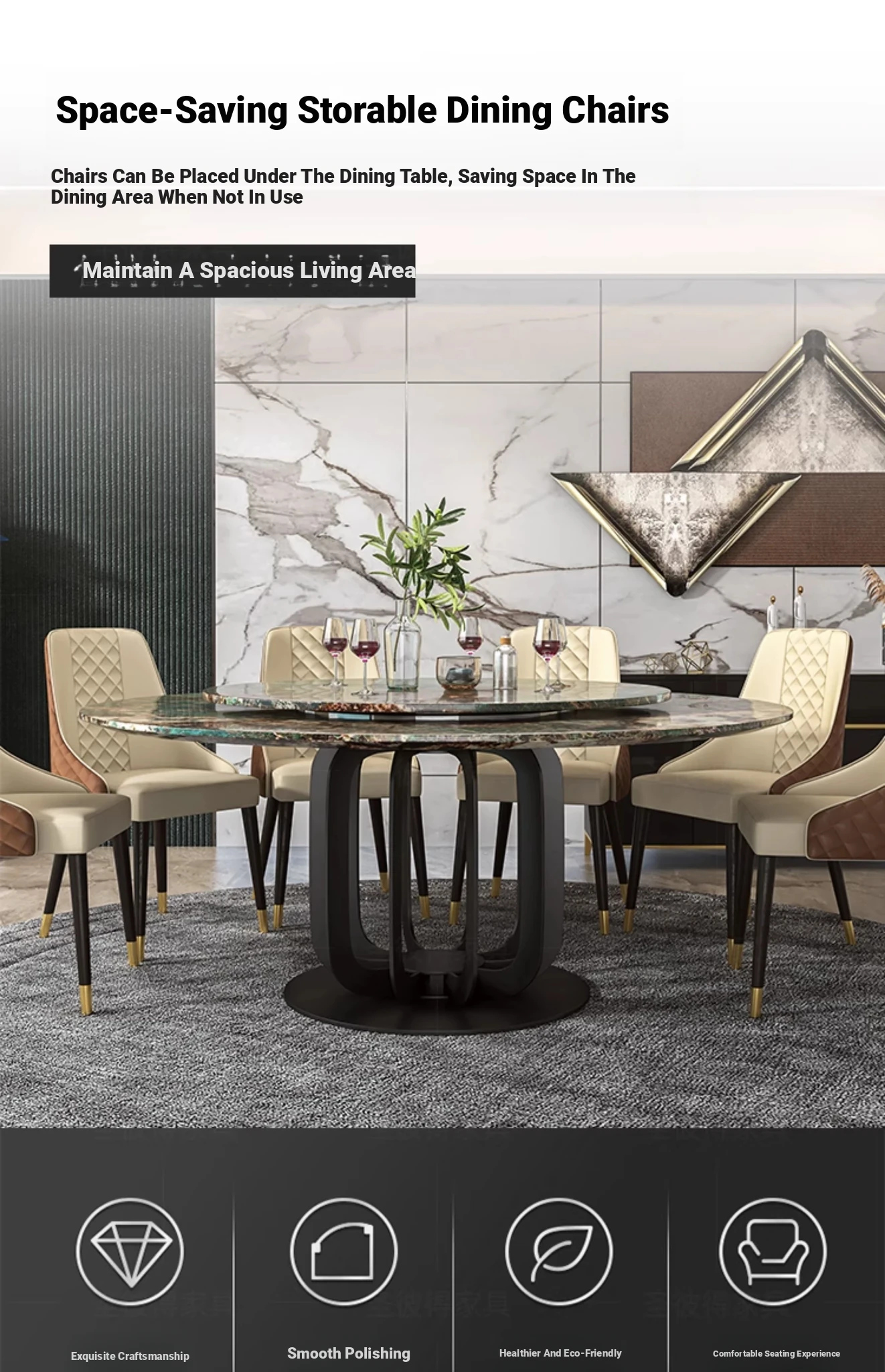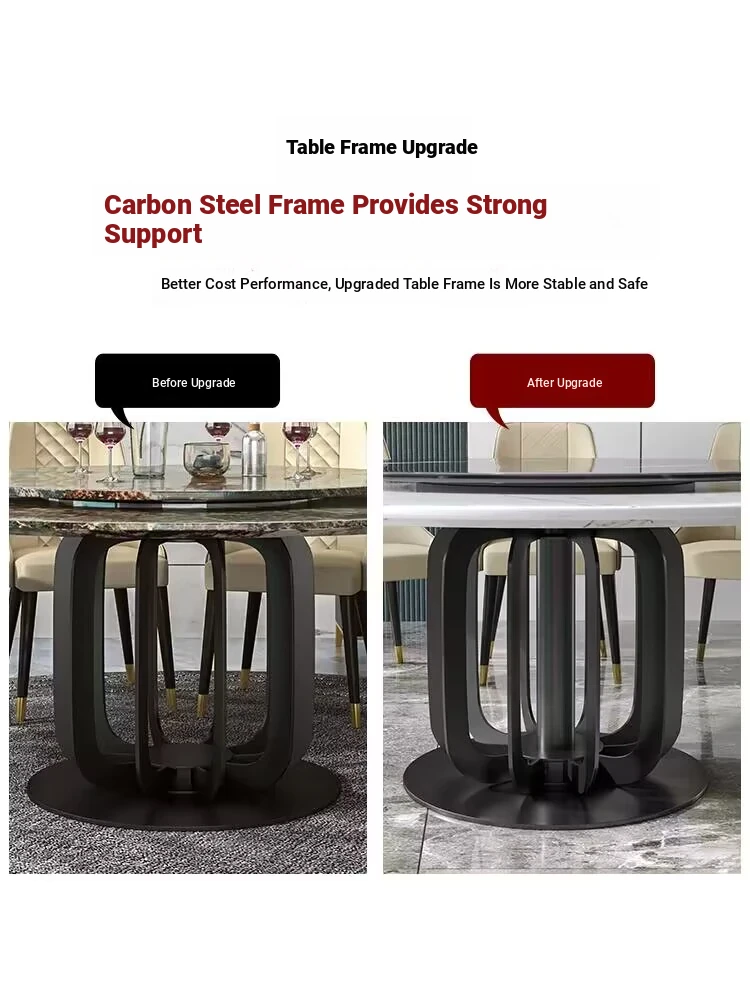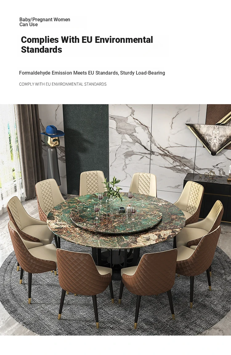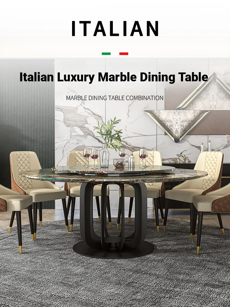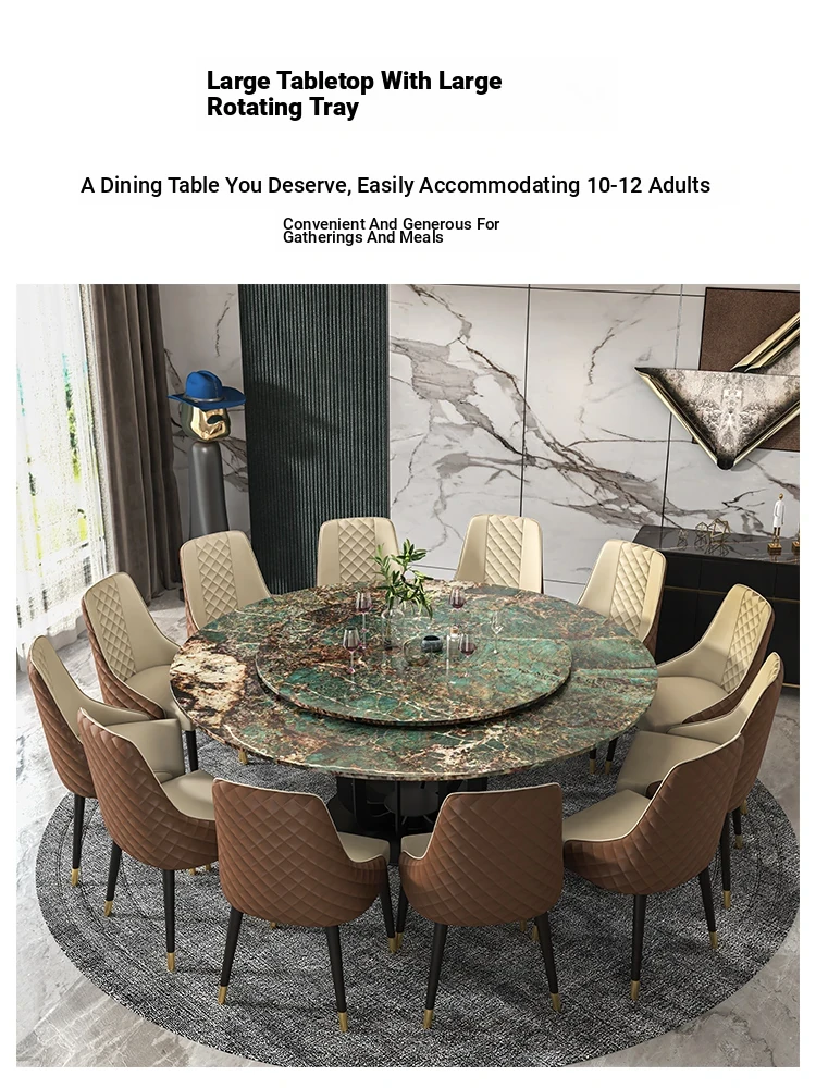 Luxury Marble Round Dining Table - Italian Elegant Design for Villas - Accommodates 10 People - Electric Adjustable Circular Table Set for Spacious Homes