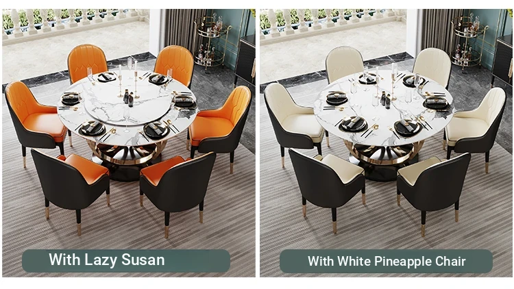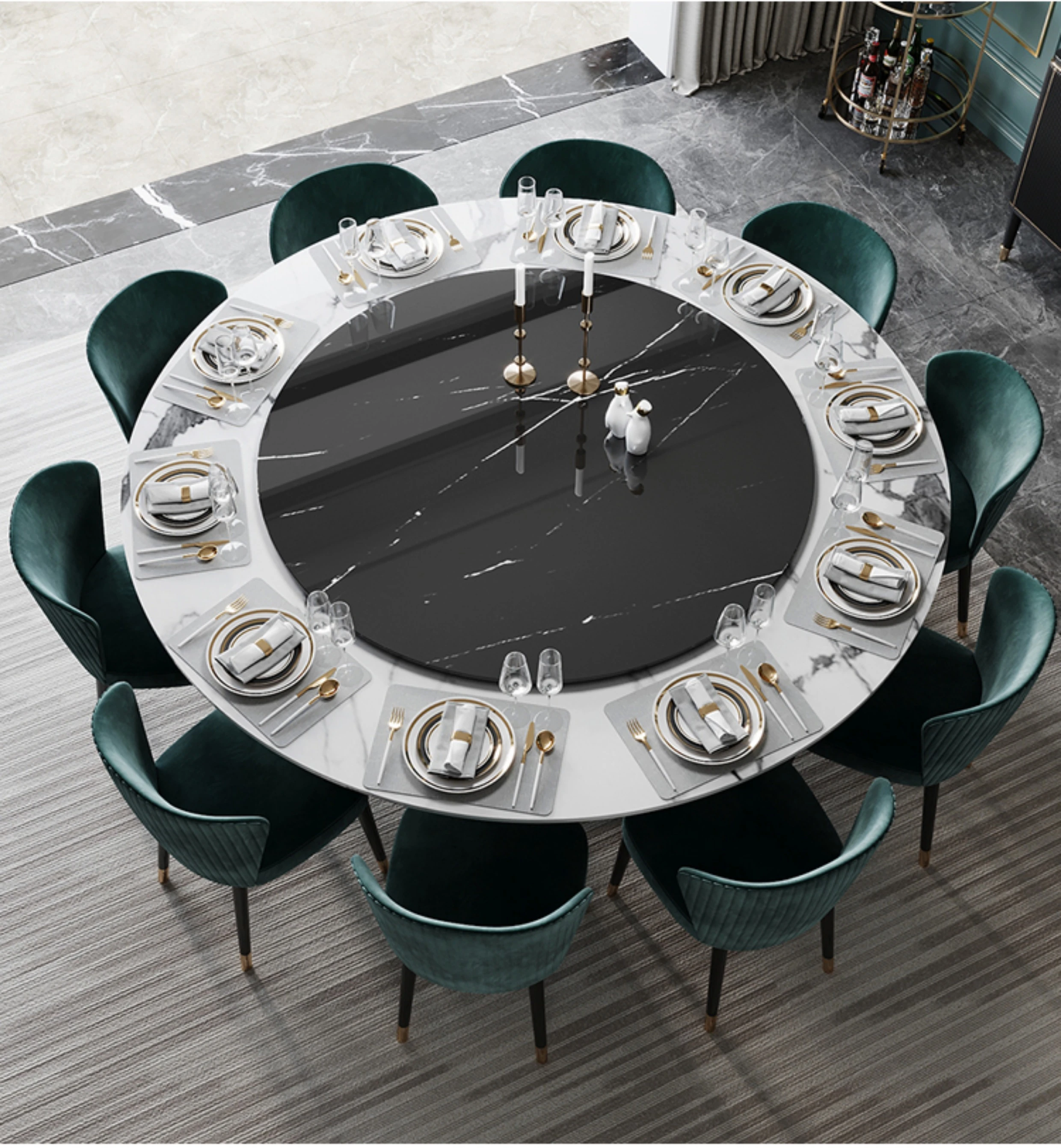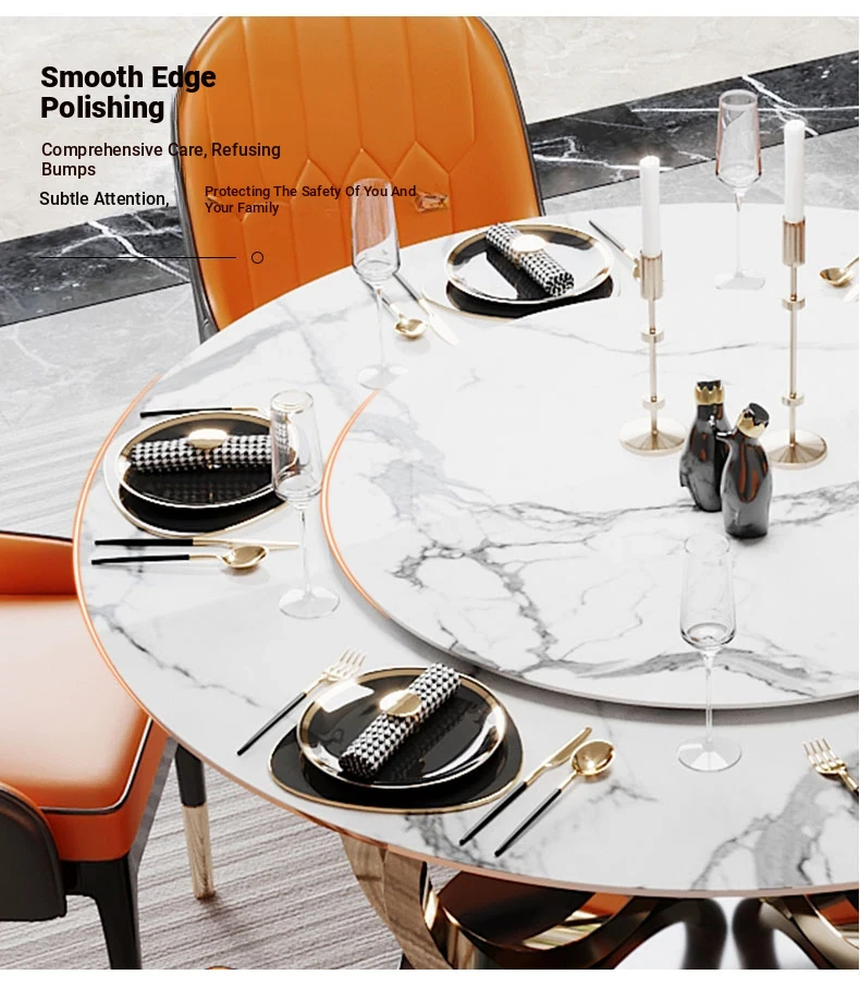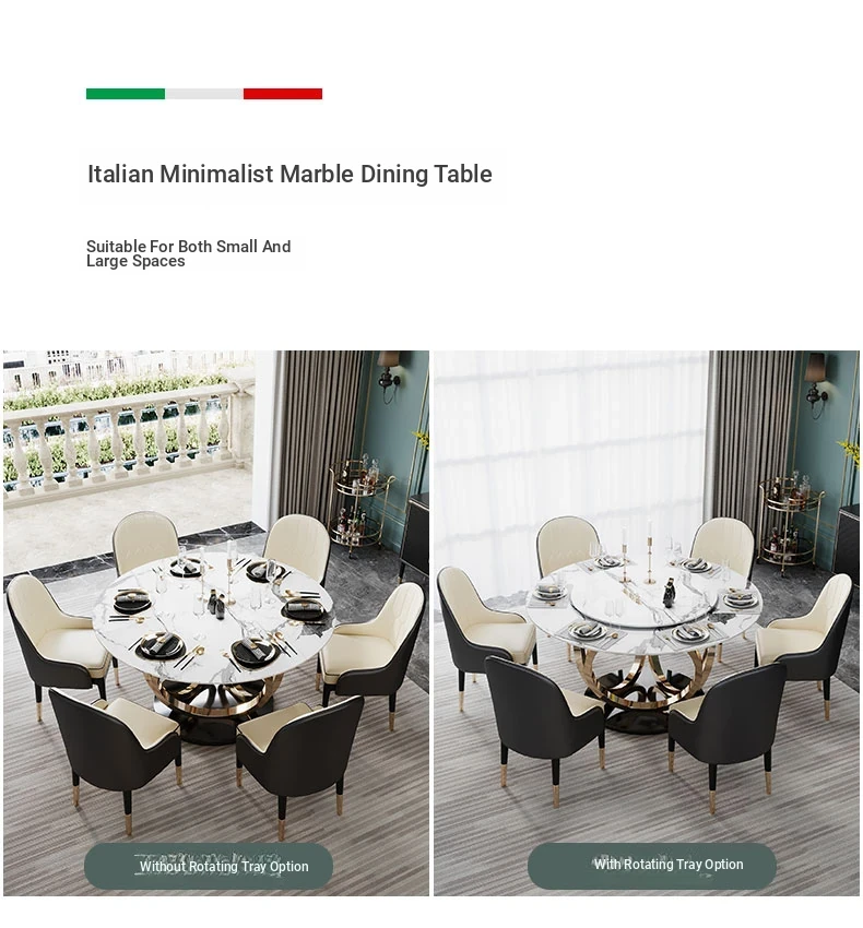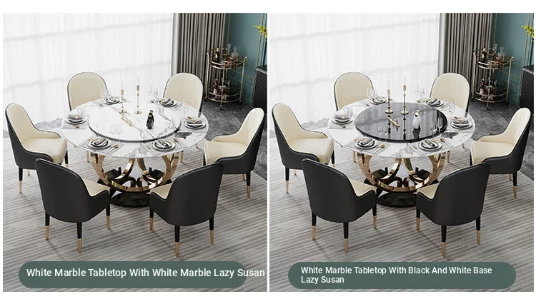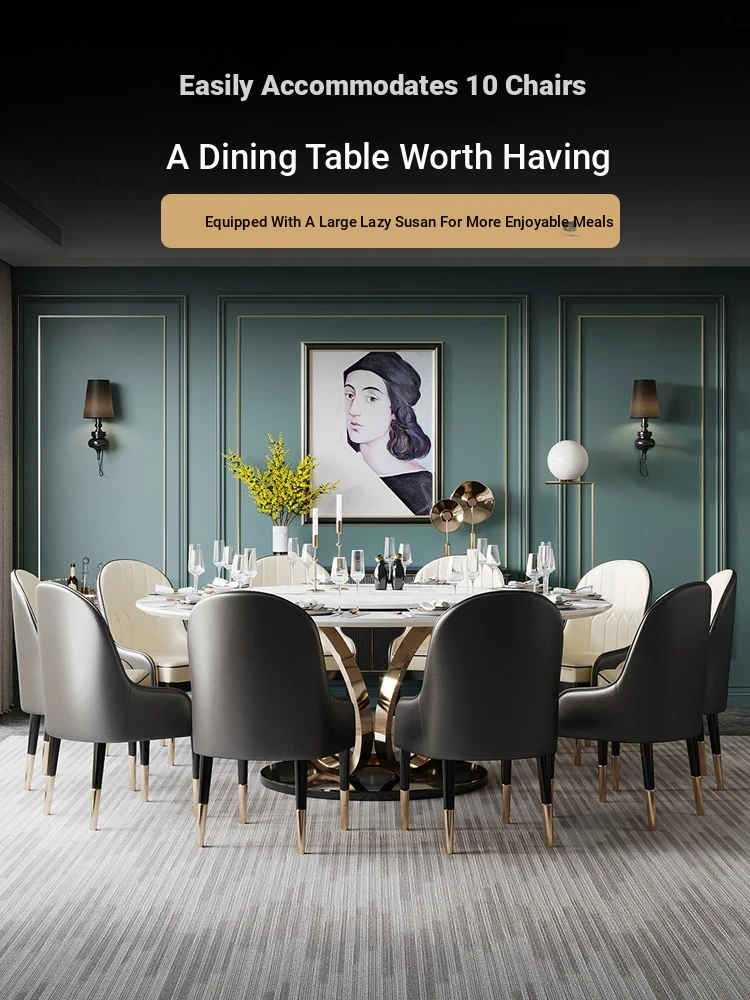 Luxury Marble Round Dining Table with Rotating Turntable - Elegant and Spacious Design for Large Homes, Perfect for Villas and Upscale Dining Experiences.