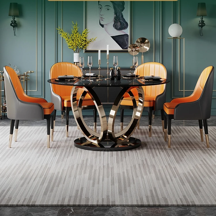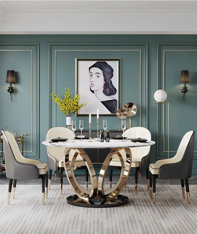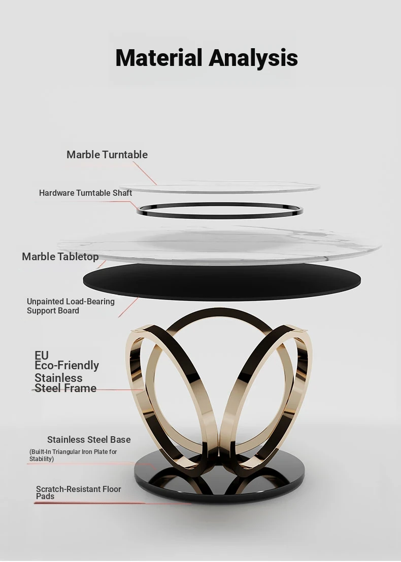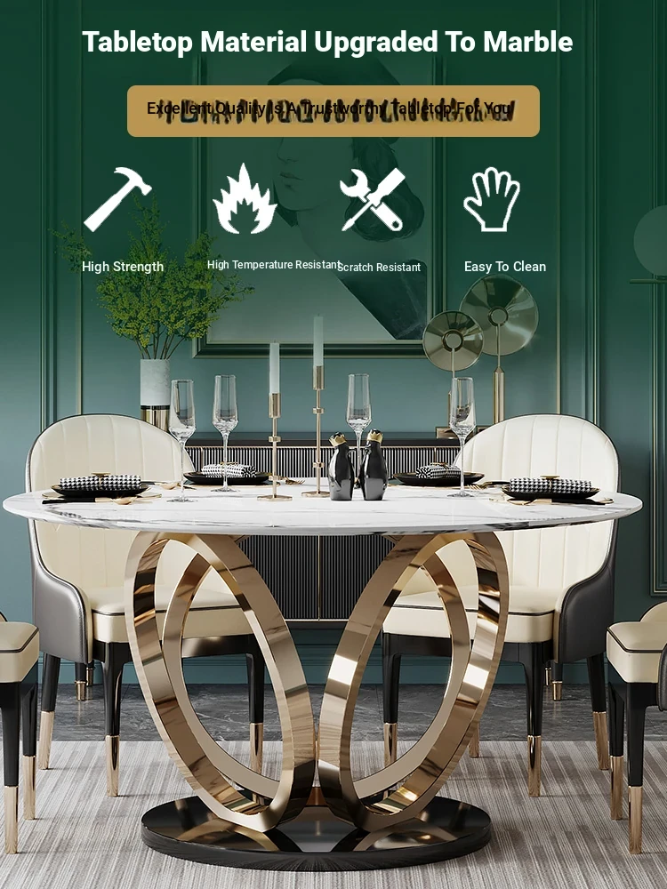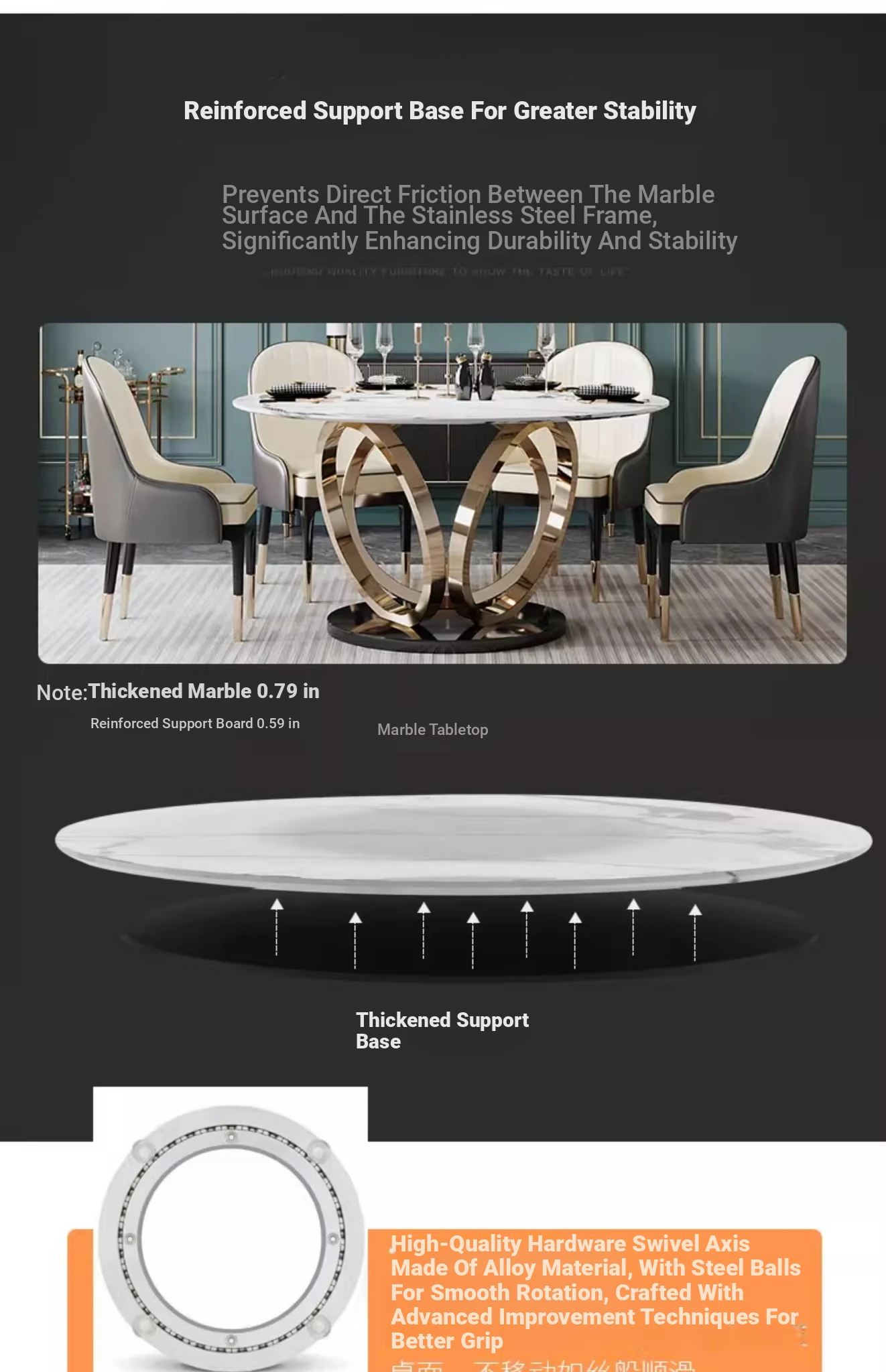 Luxury Marble Round Dining Table with Rotating Turntable - Elegant and Spacious Design for Large Homes, Perfect for Villas and Upscale Dining Experiences.