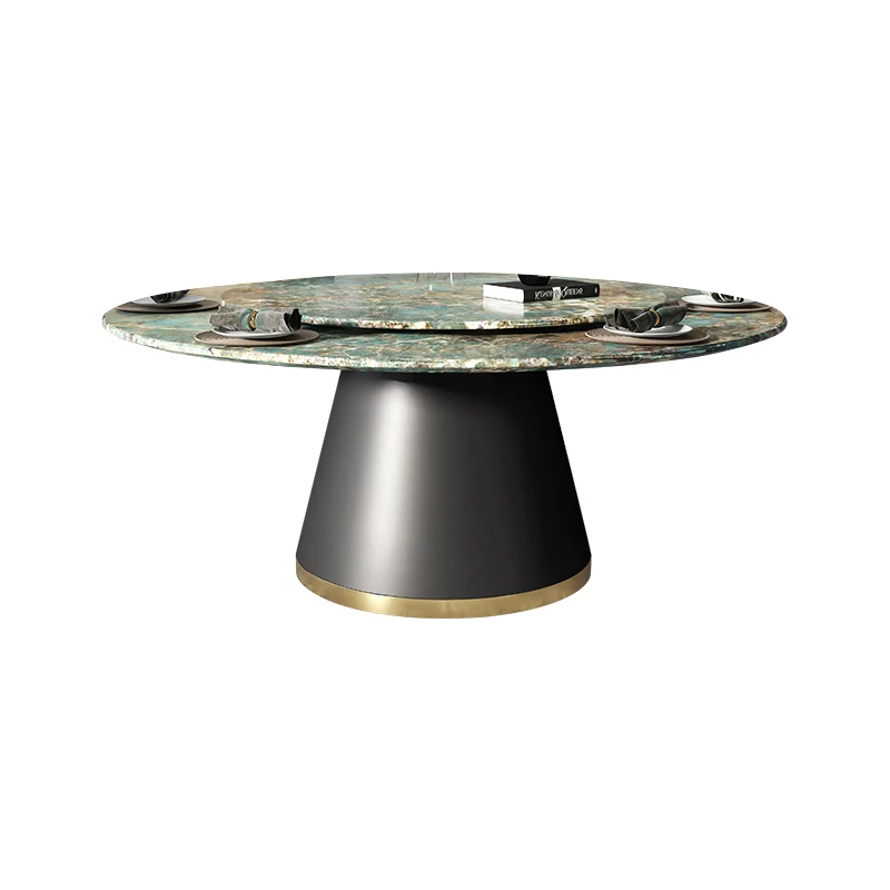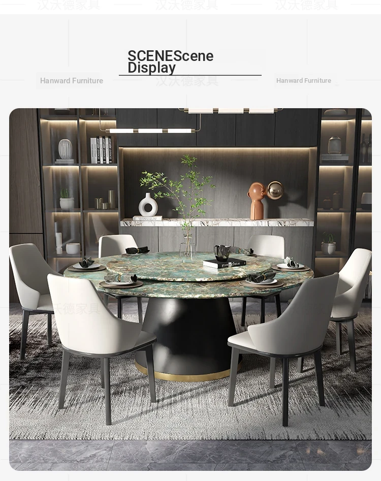 Luxury Round Marble Dining Table for 10 – Electric Rotating Table with Chair Set for Home and Villa Dining Experience
