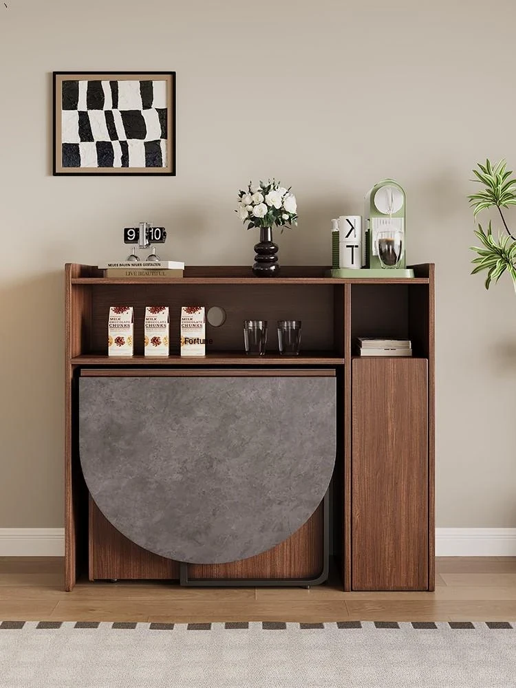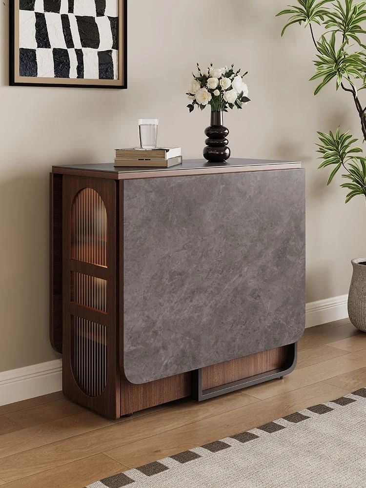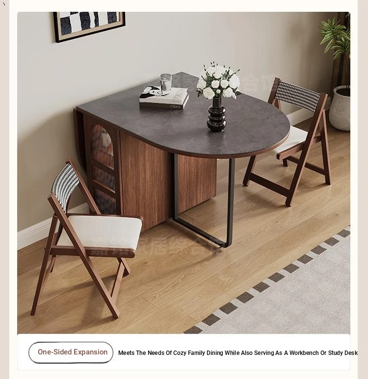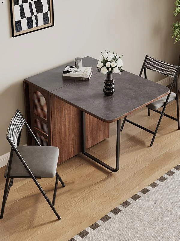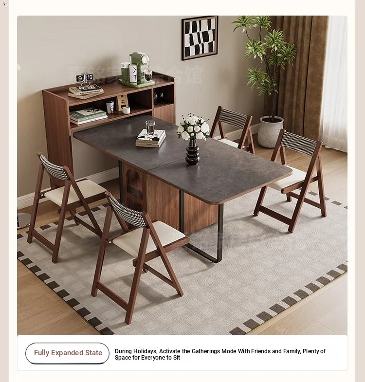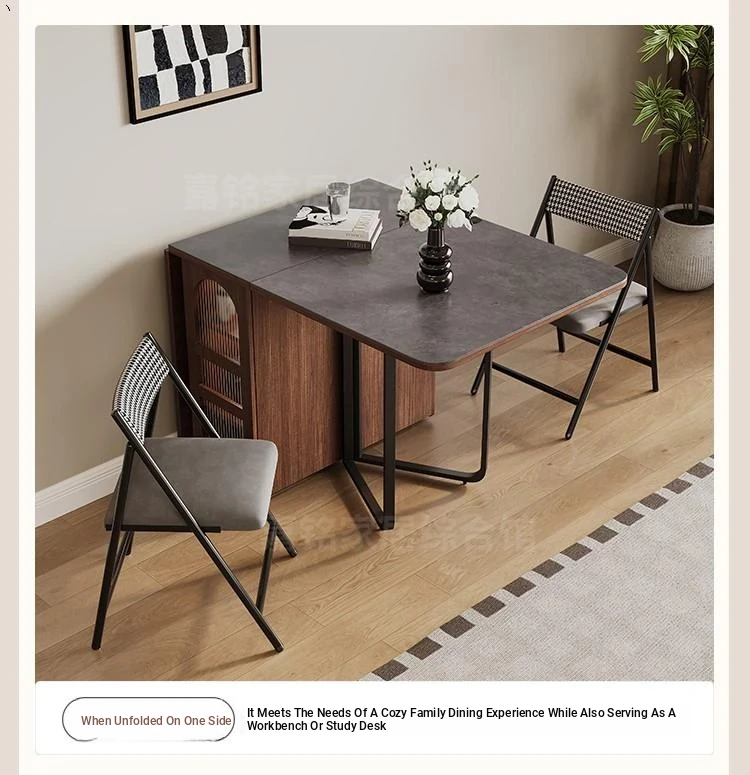 Rock plate Foldable dining table + sideboard (solid wood) square desktop