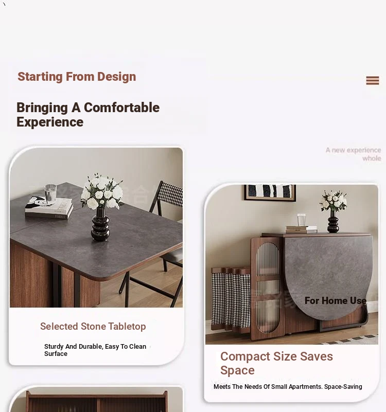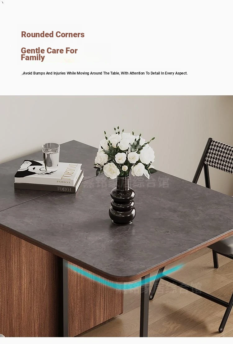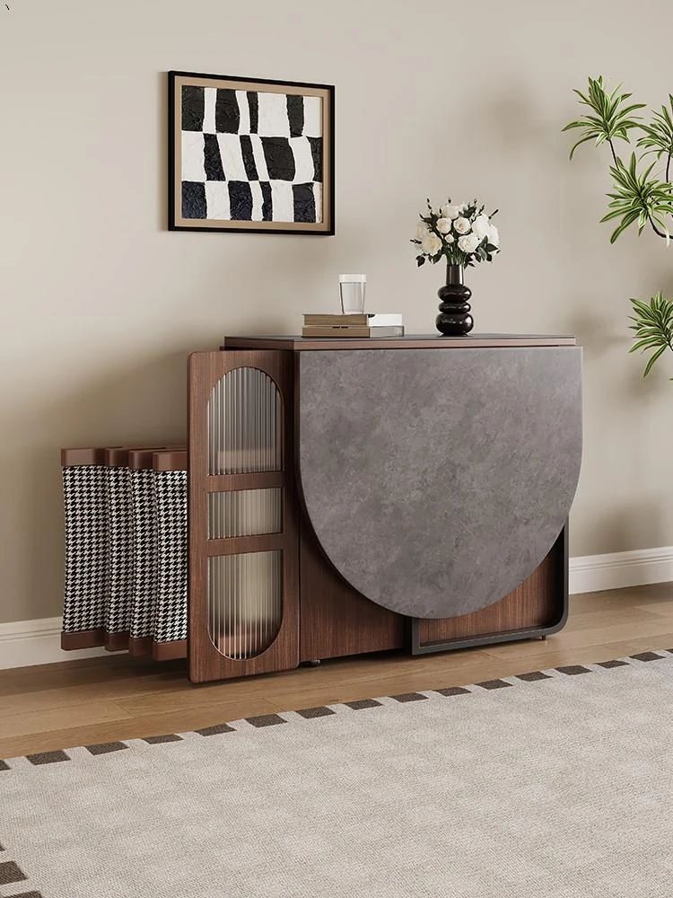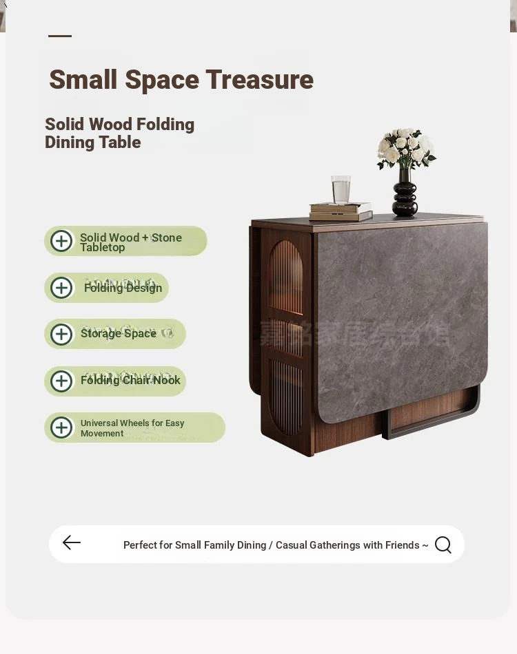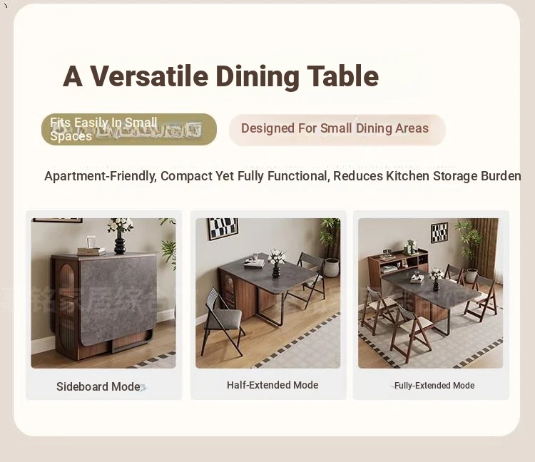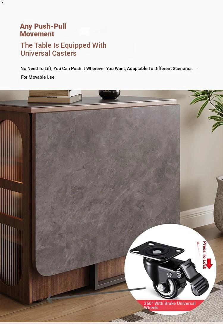 Rock plate Foldable dining table + sideboard (solid wood) square desktop