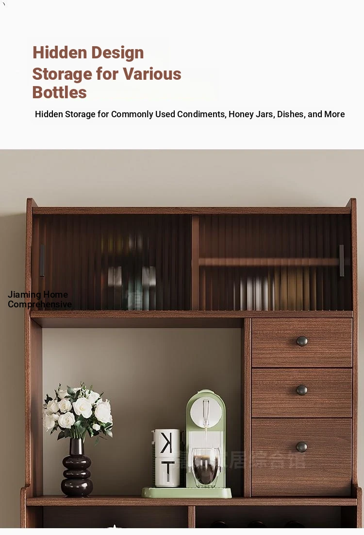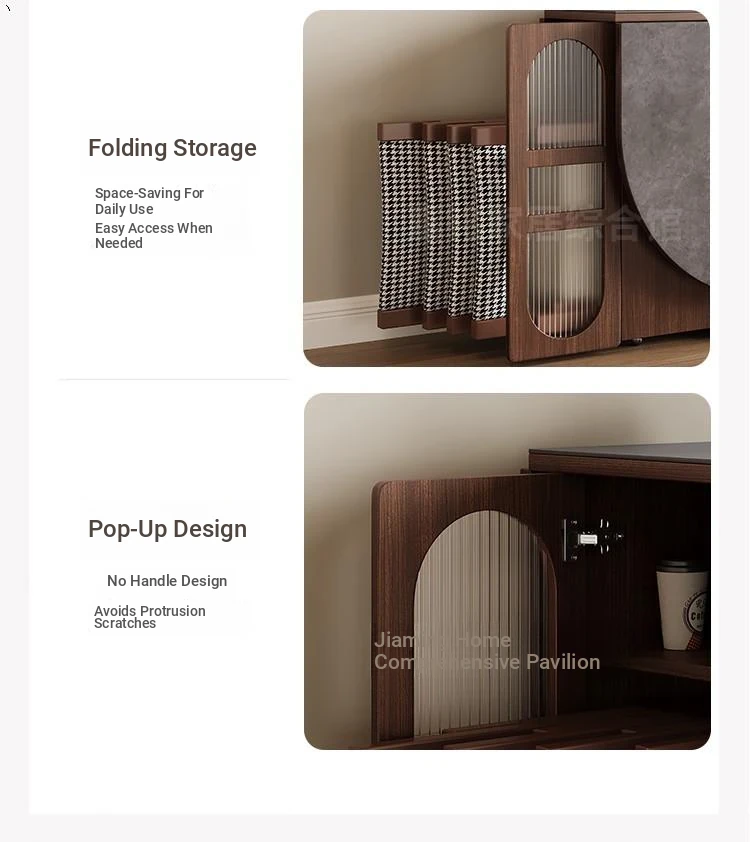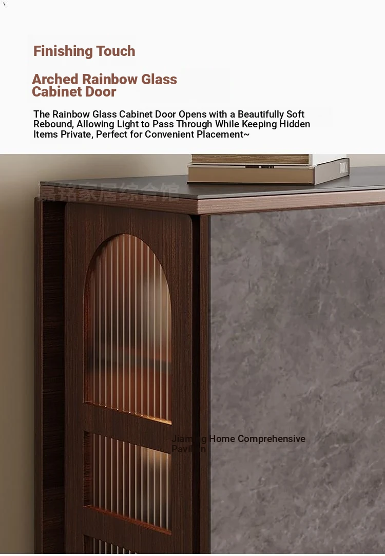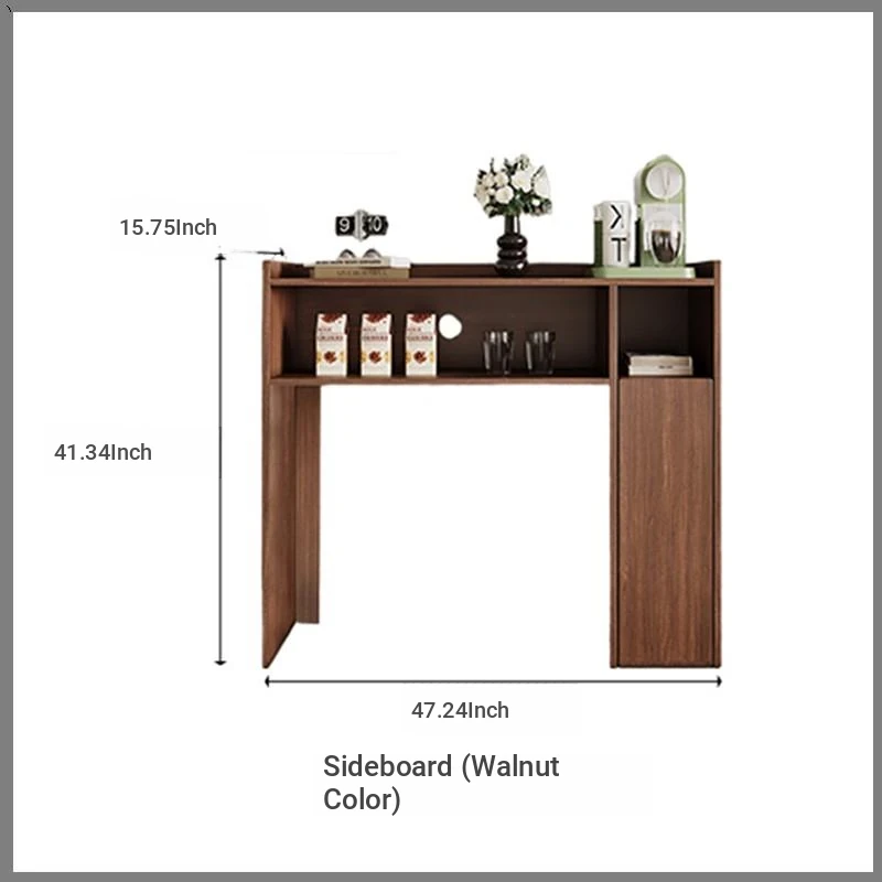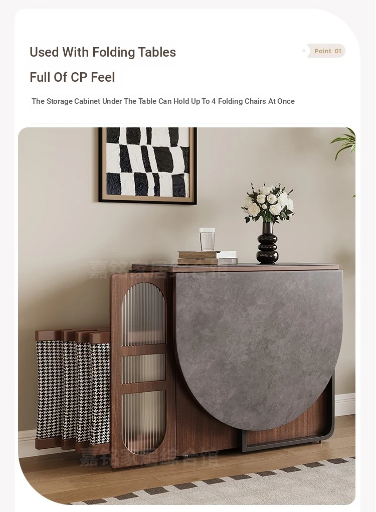 Rock plate Foldable table + high sideboard cabinet (solid wood) +6 walnut color metal chair square table top