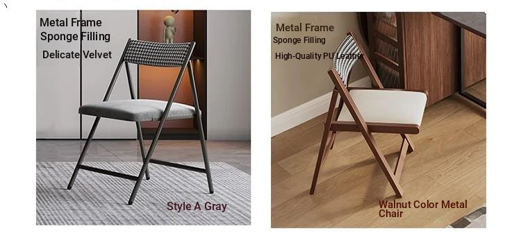 Rock plate Foldable table (solid wood) +6 walnut color metal chair square desktop