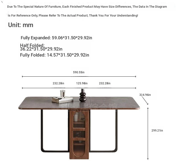 Rock plate Foldable table + high sideboard (solid wood) oval table top