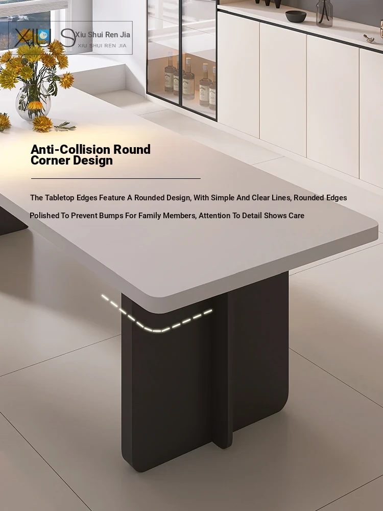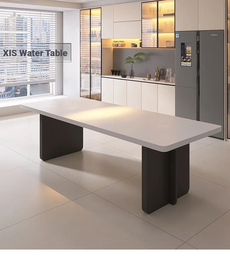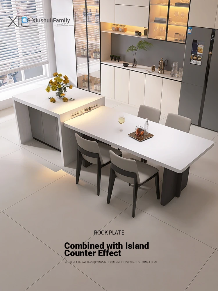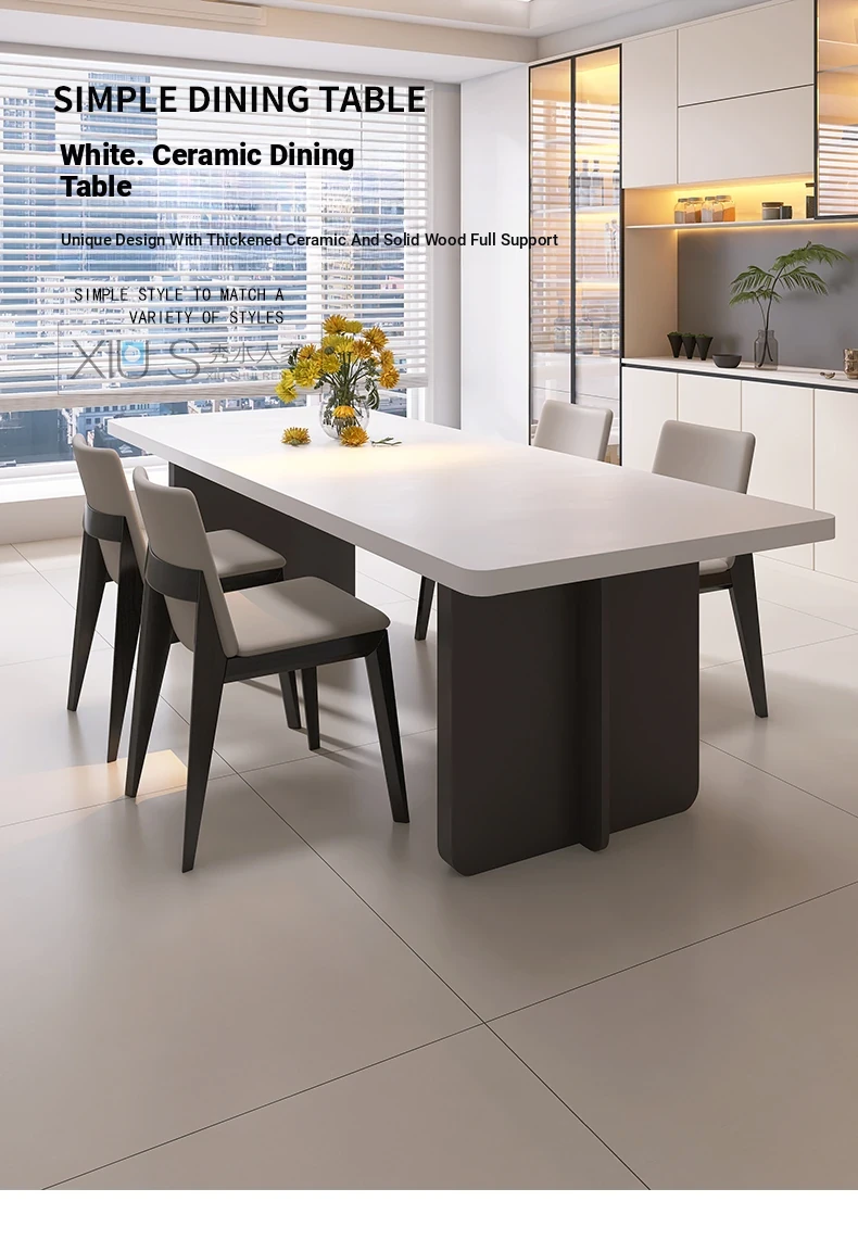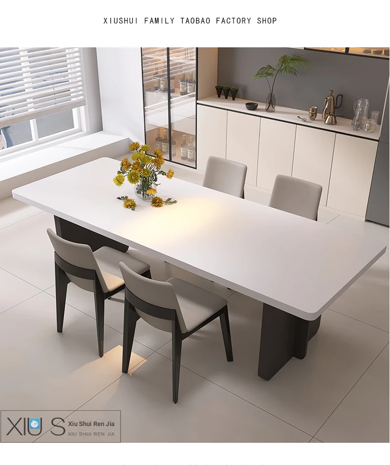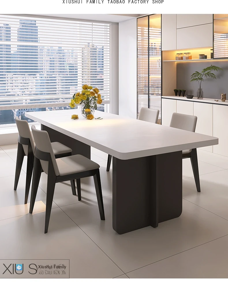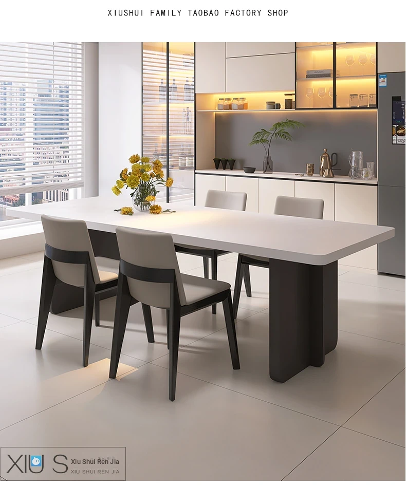 Modern Italian Minimalist Dining Table and Chair Set – Pure White Rectangular Dining Table with Hidden Induction Cooker, Thick Design for Home Use – New Arrival