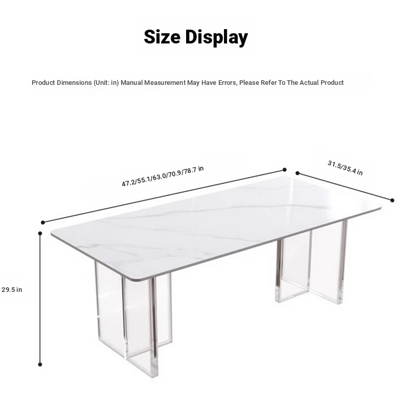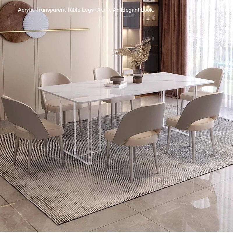 Modern Minimalist Acrylic Rock Plate Dining Table and Chair Set - Transparent Floating Design for Small Spaces, Rectangular Home Use