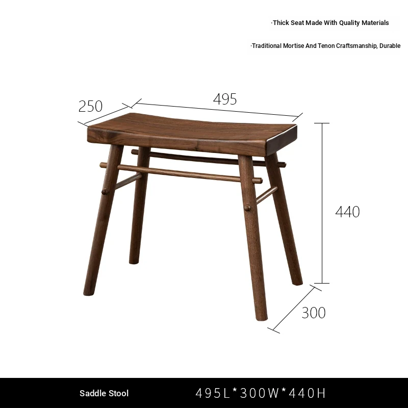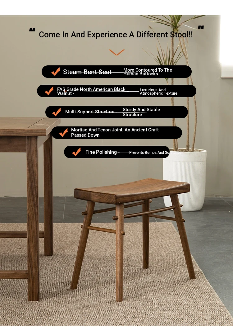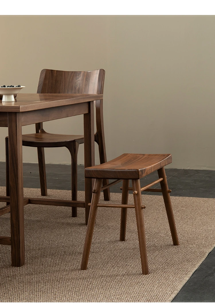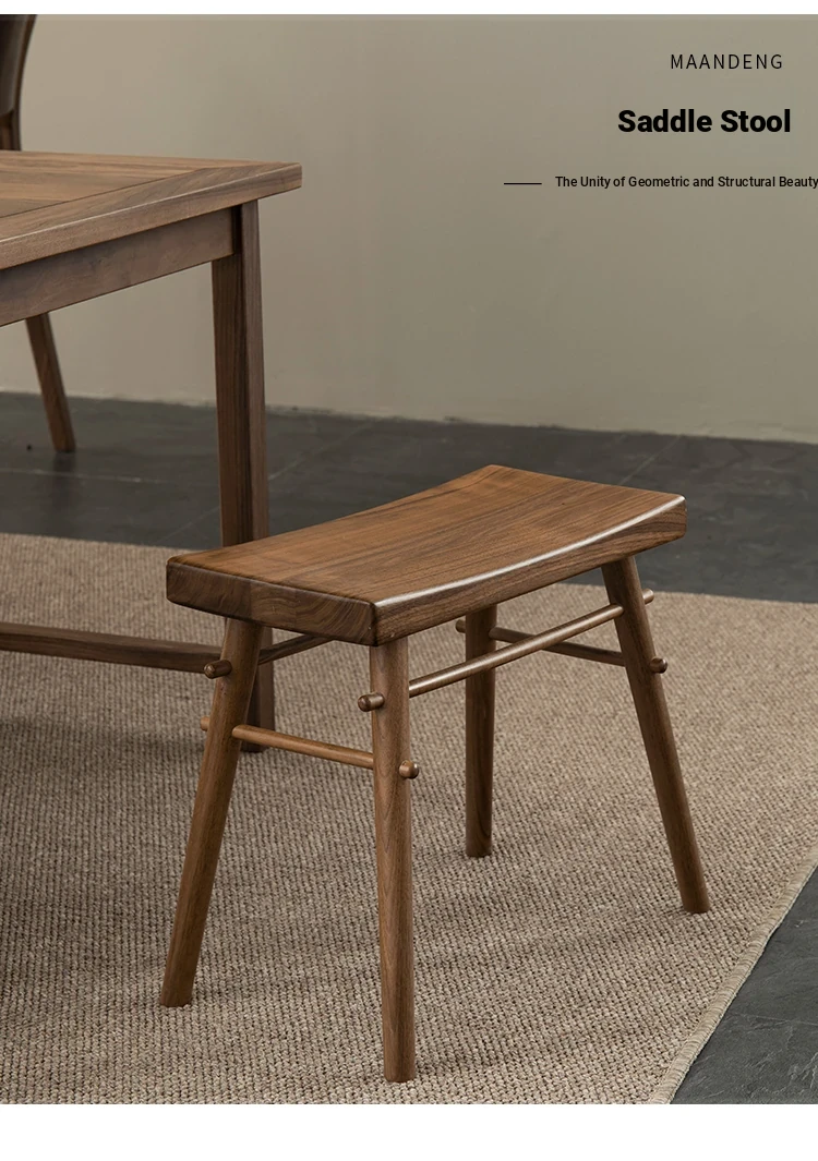 Modern Minimalist North American Black Walnut Makeup Stool & Dining Chair - Solid Wood Saddle Stool for Home, Perfect for Living Room and Dining Areas