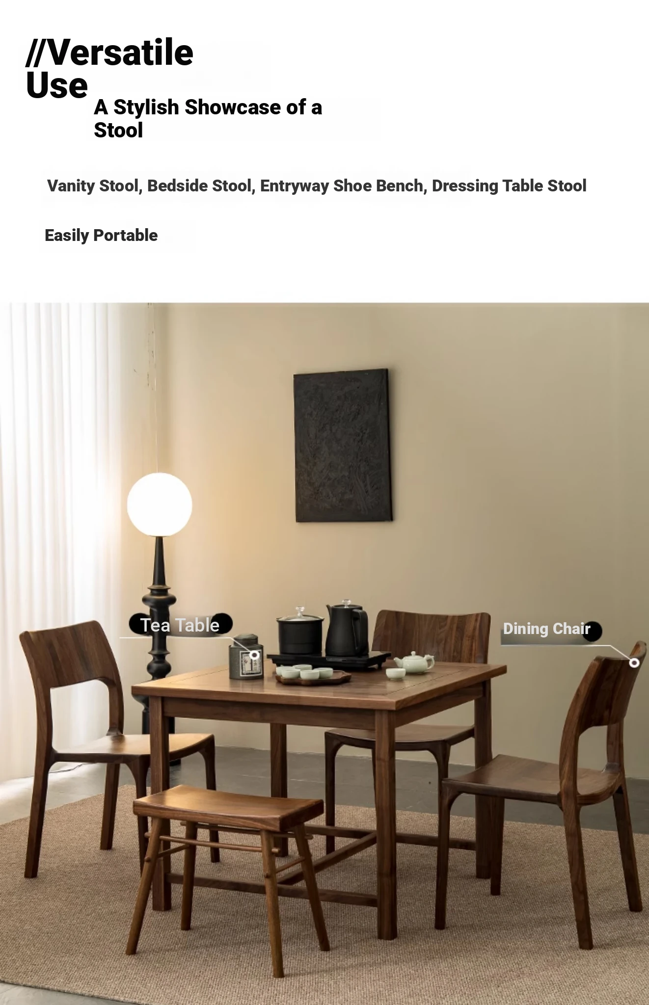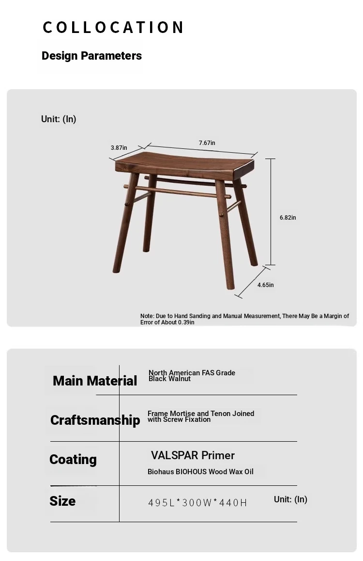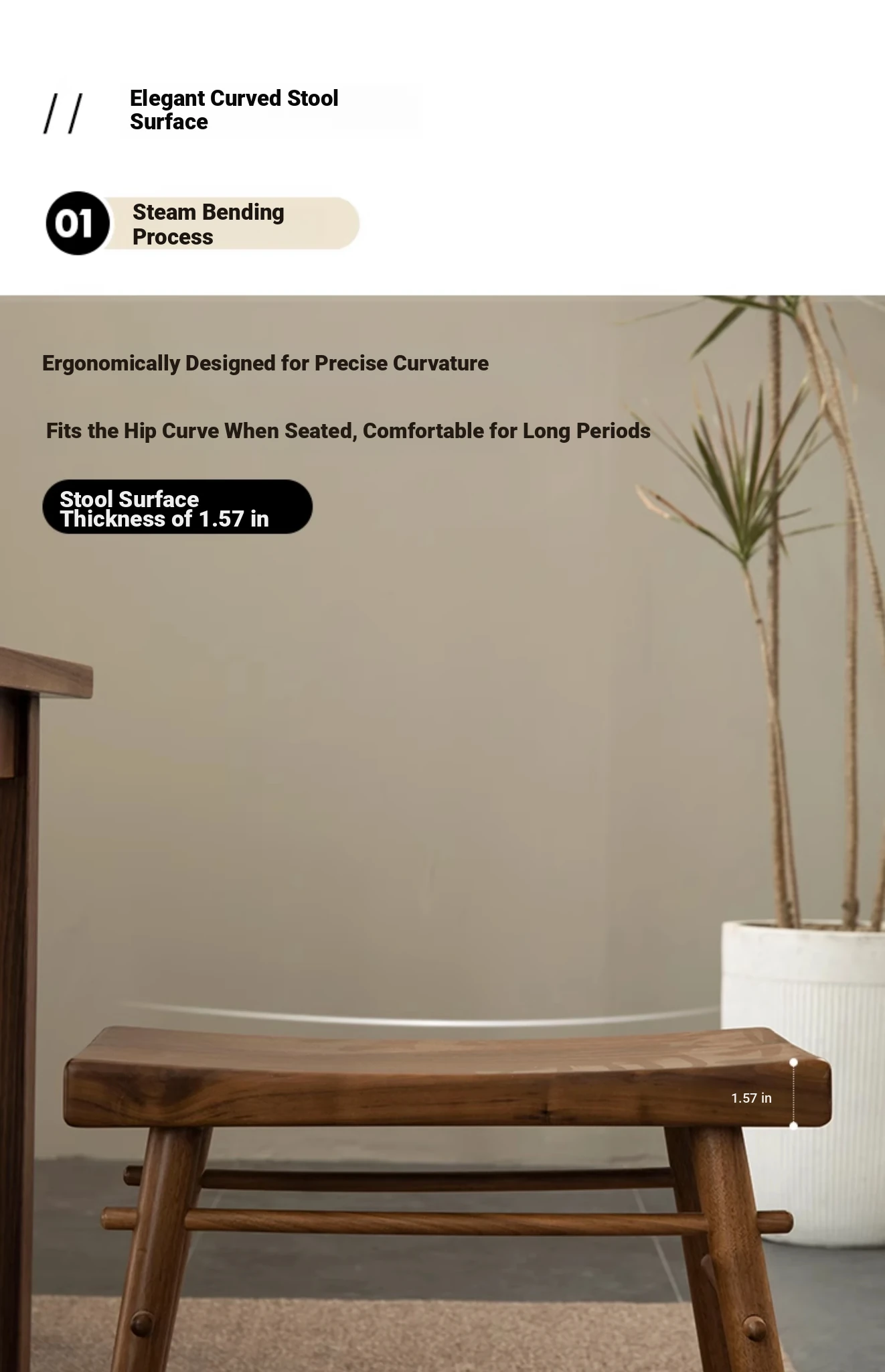 Modern Minimalist North American Black Walnut Makeup Stool & Dining Chair - Solid Wood Saddle Stool for Home, Perfect for Living Room and Dining Areas